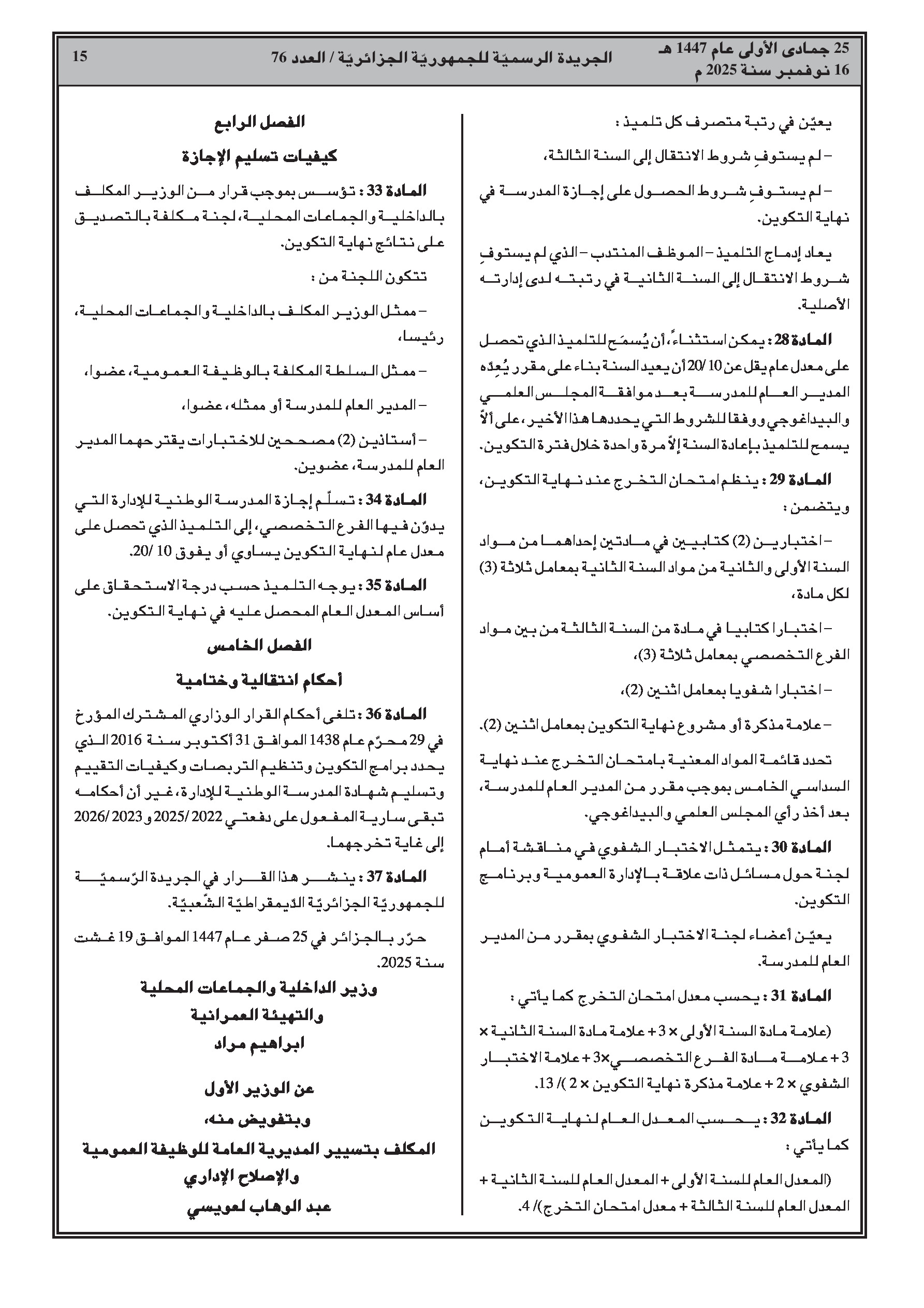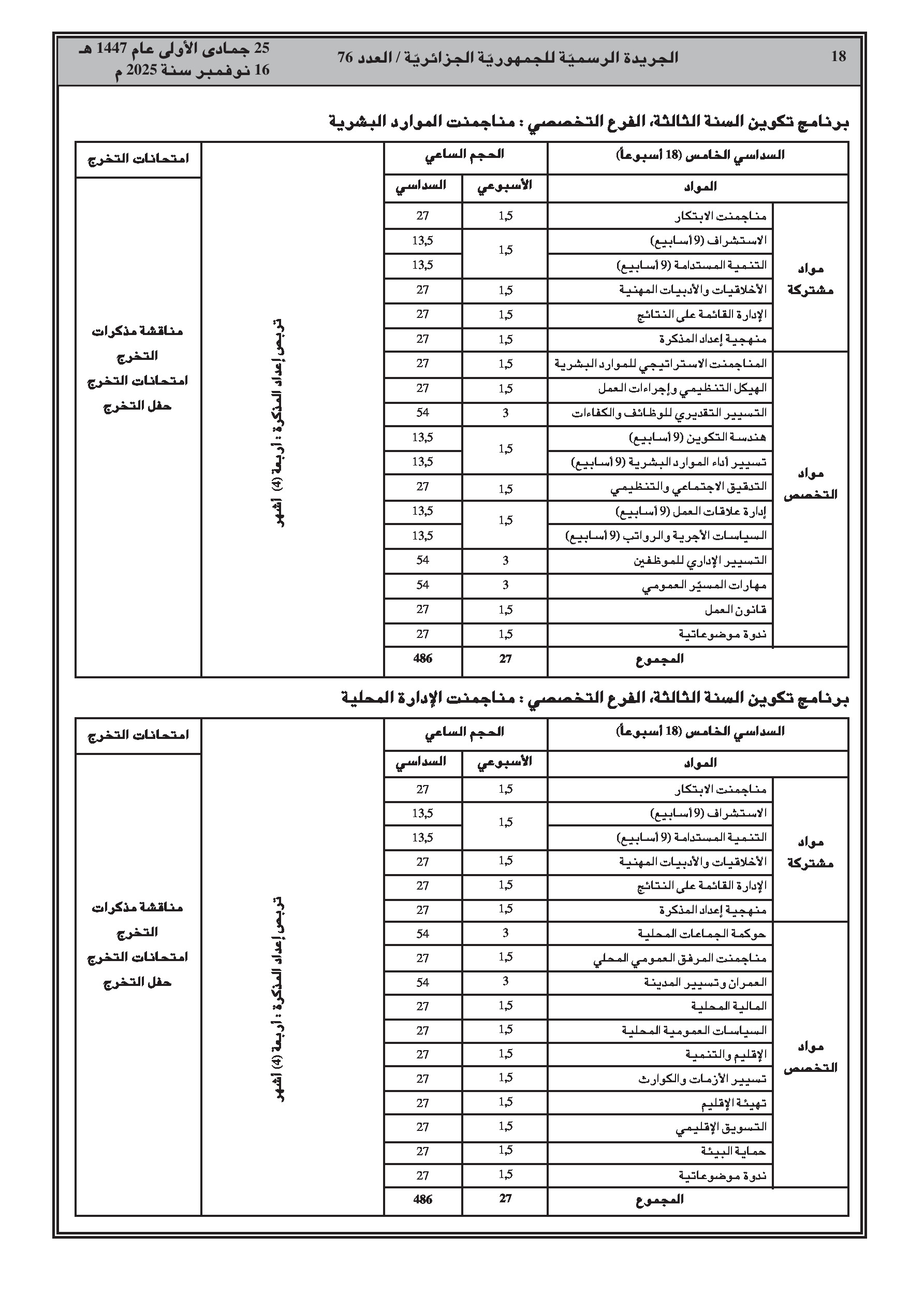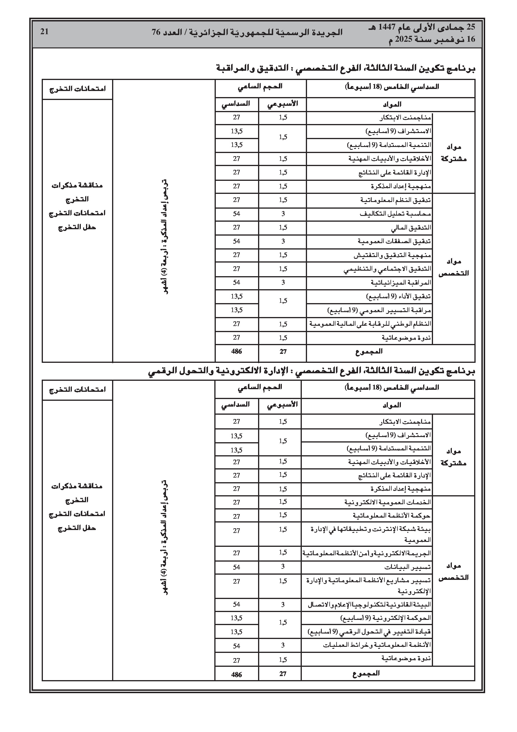 إصدار برنامج تكوين جديد للمدرسة الوطنية للإدارة يمتد لثلاث سنوات، بالتزامن مع نشر سلسلة واسعة من قرارات إنهاء المهام والتعيينات في مختلف القطاعات الوزارية.