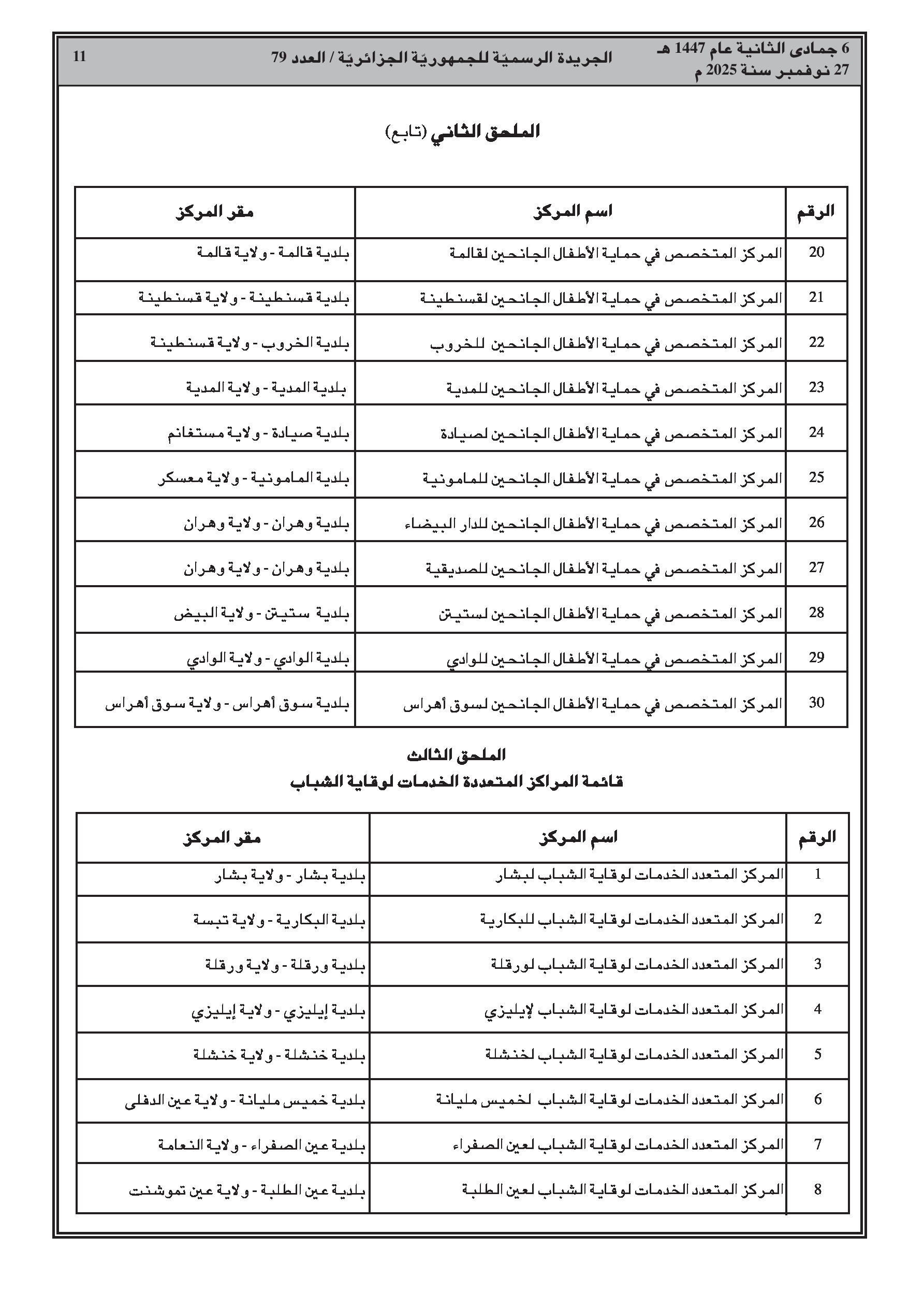 - تحديد كيفيات إنشاء وتنظيم المراكز المتخصصة في حماية الأطفال في خطر والجانحين.