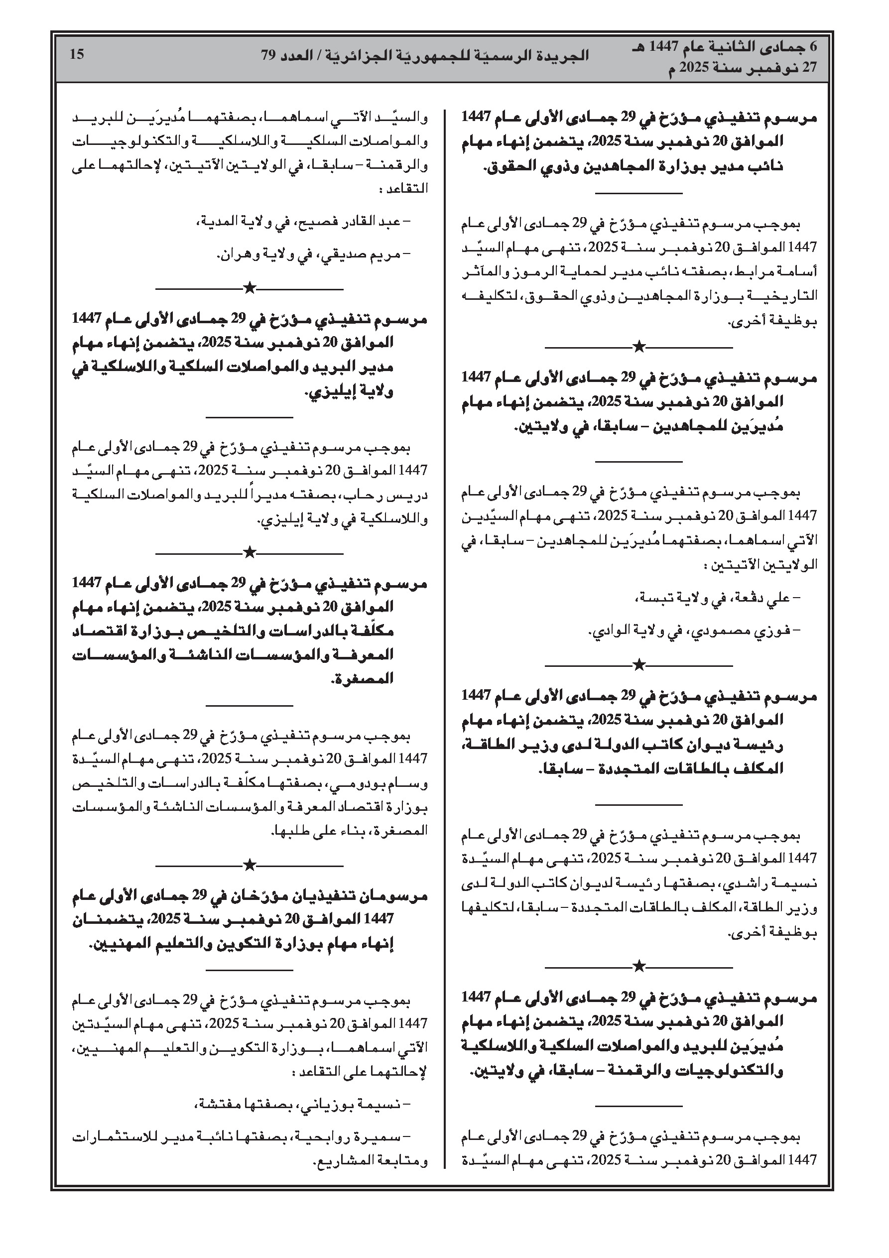 - تعيينات لمدراء ولائيين في قطاع البريد والمواصلات السلكية واللاسلكية.