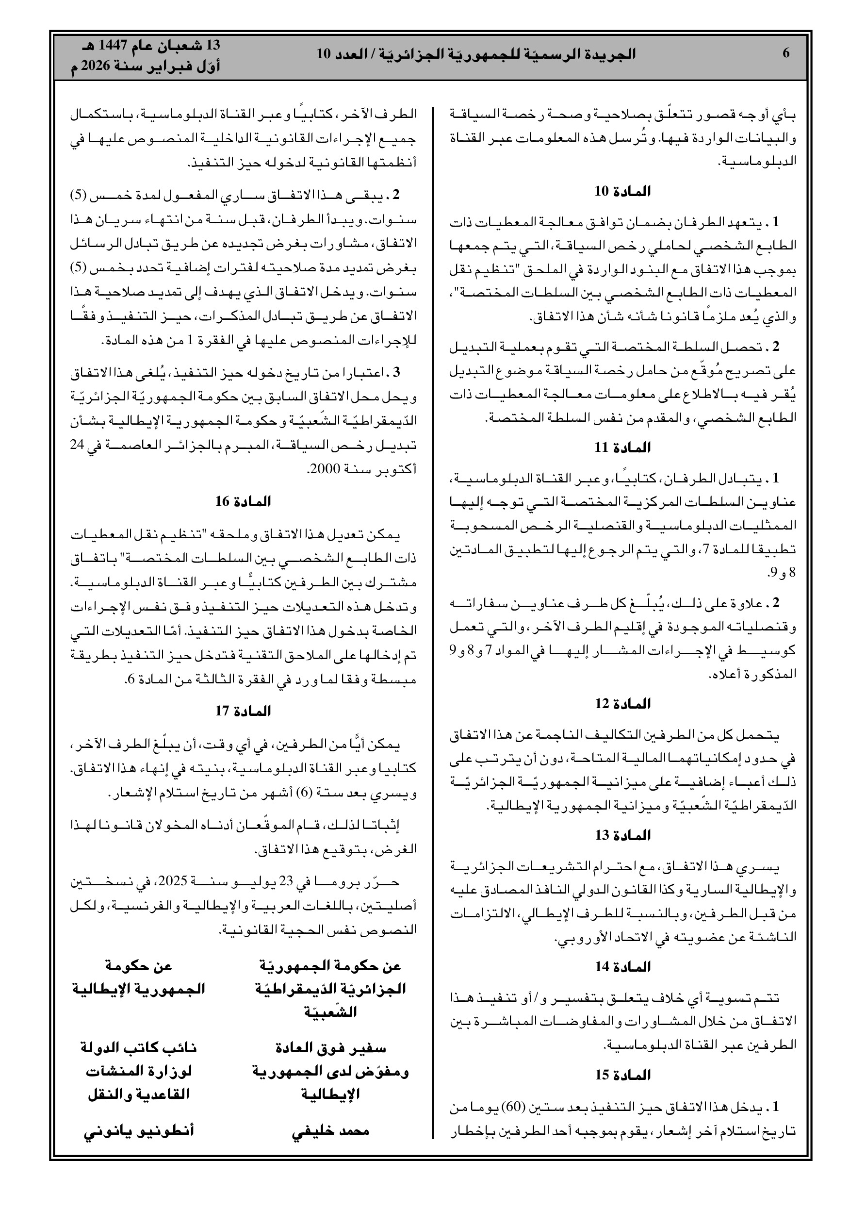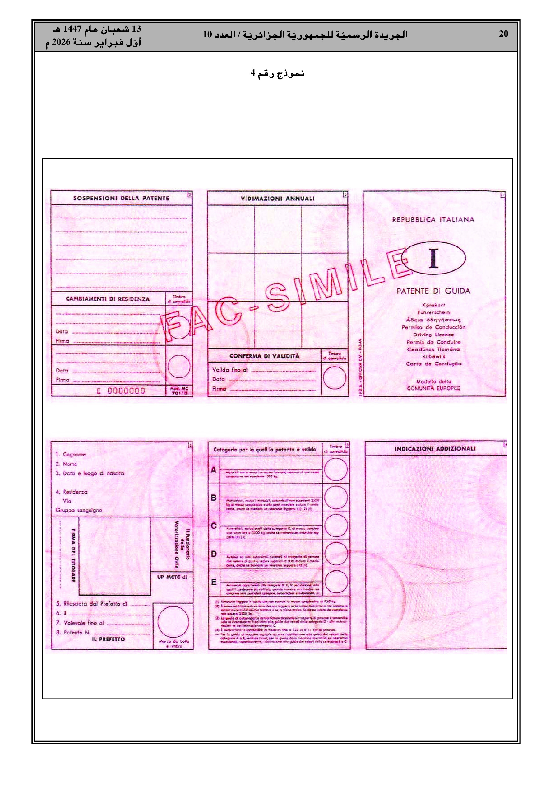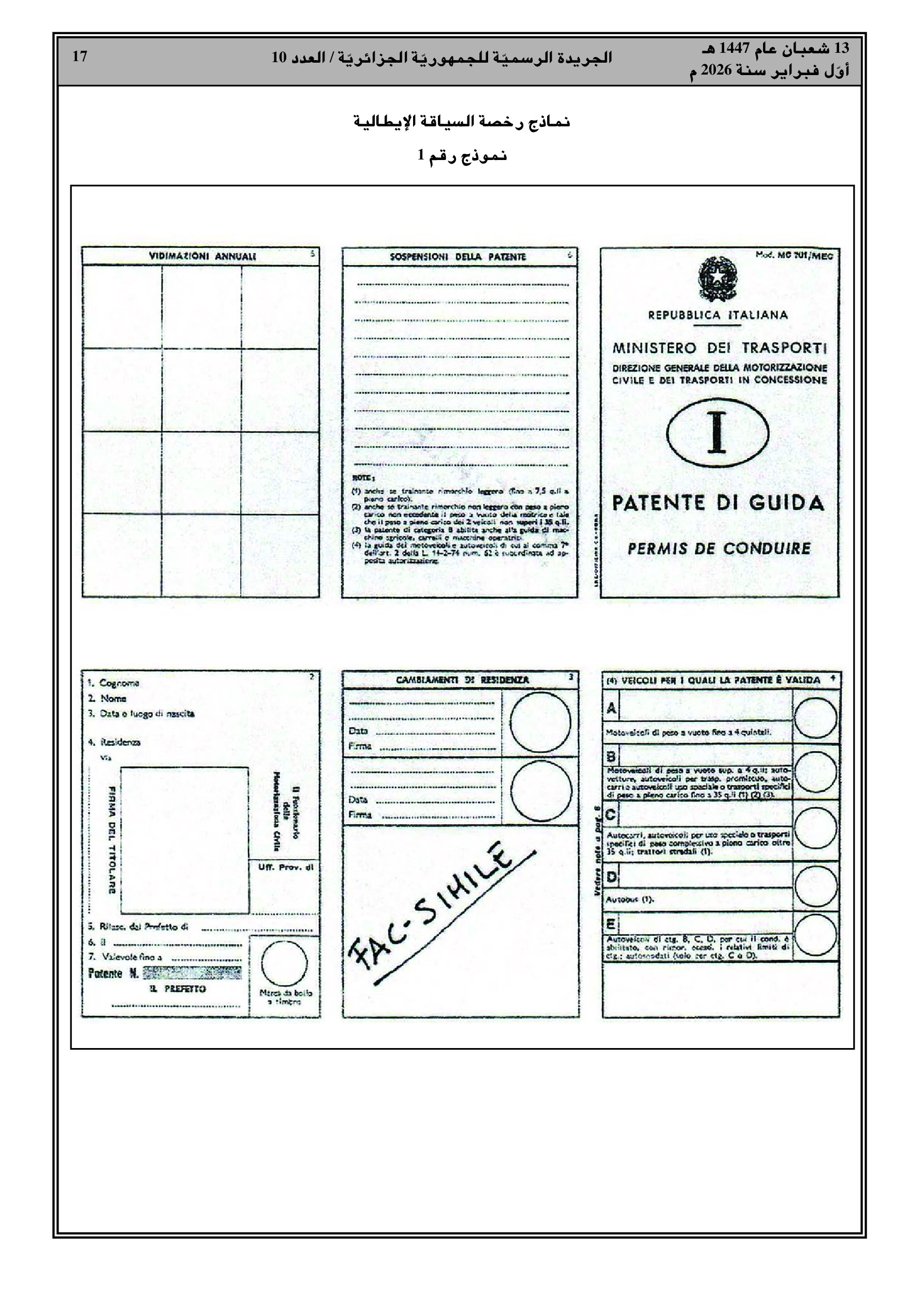 مرسوم رئاسي يصادق على الاتفاقية بين الجزائر وإيطاليا حول الاعتراف المتبادل برخص السياقة واستبدالها.