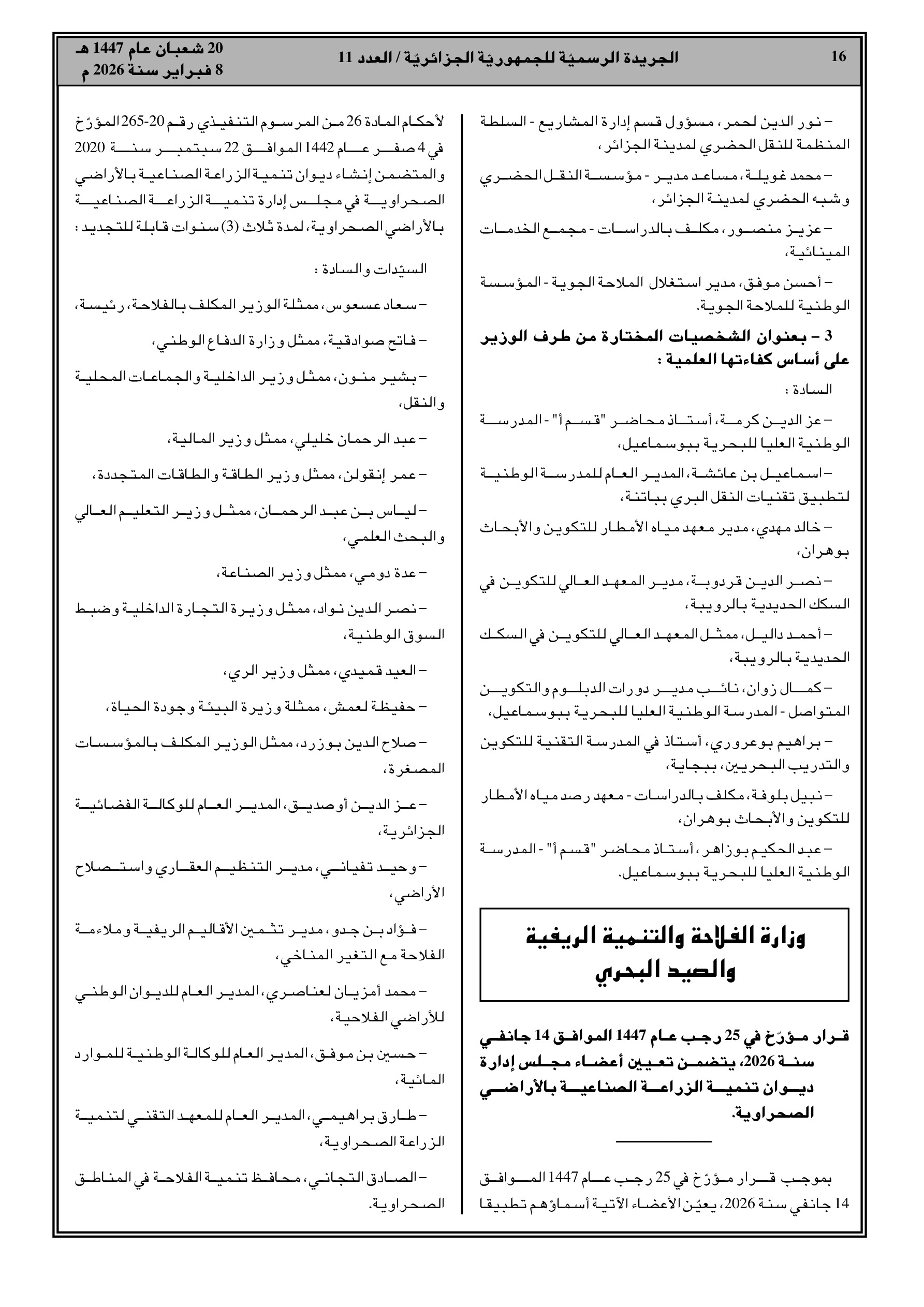 تعيينات في لجان بقطاعات النقل، الفلاحة الصحراوية، والشركات الناشئة.