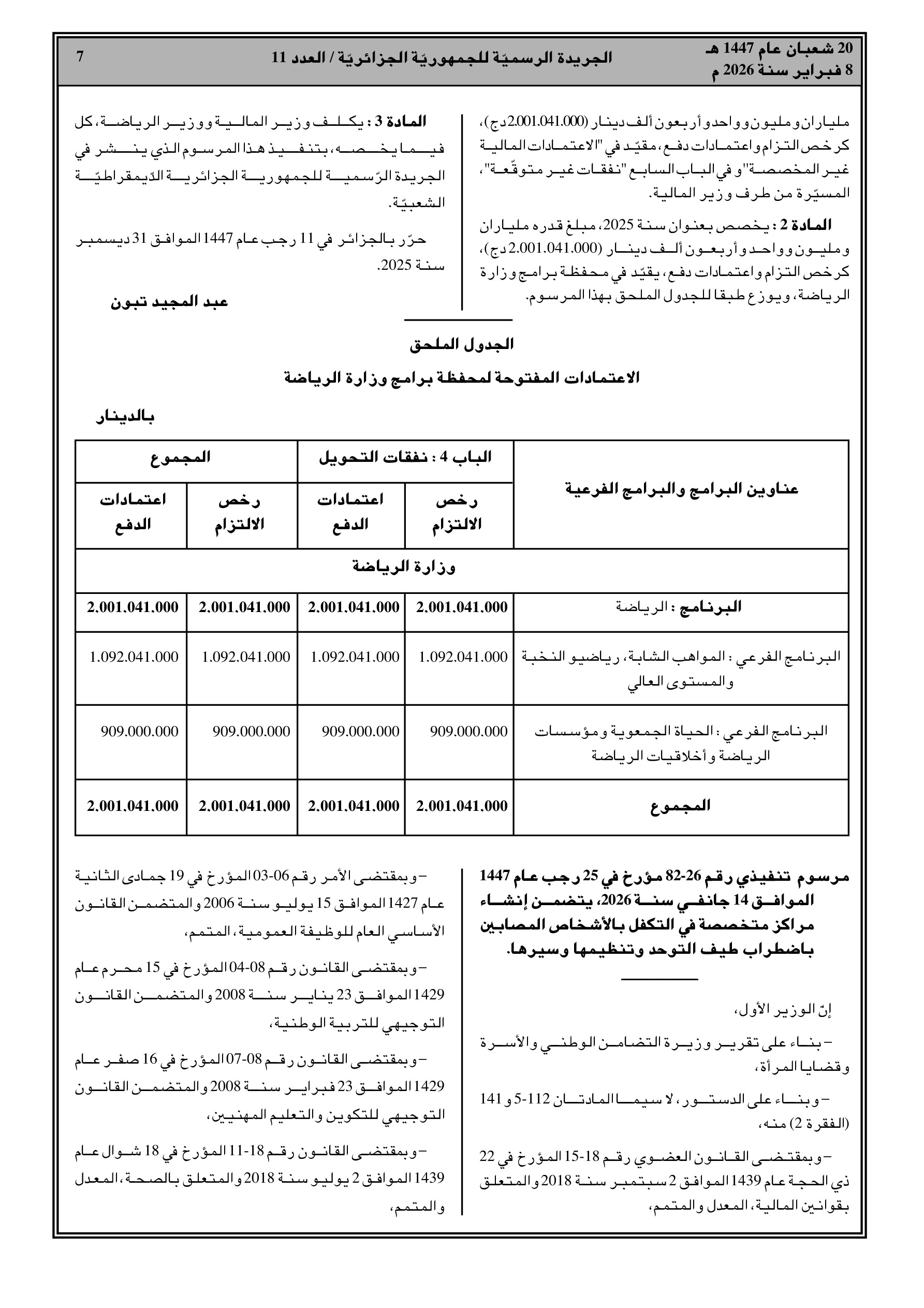 تحويل 5.18 مليار د.ج لوزارة التعليم العالي (الحياة الطلابية) و2 مليار د.ج لوزارة الرياضة (المواهب الشابة).