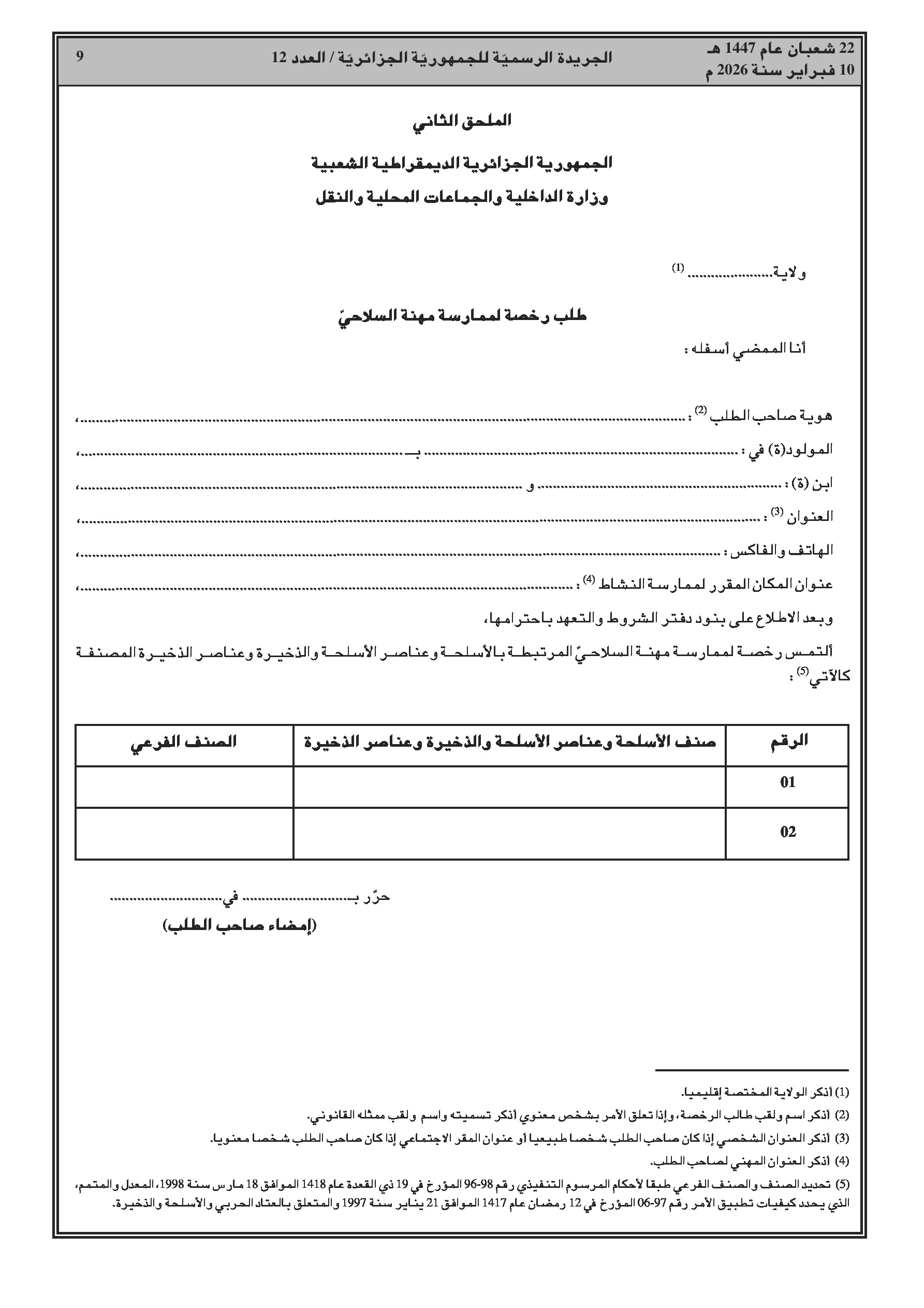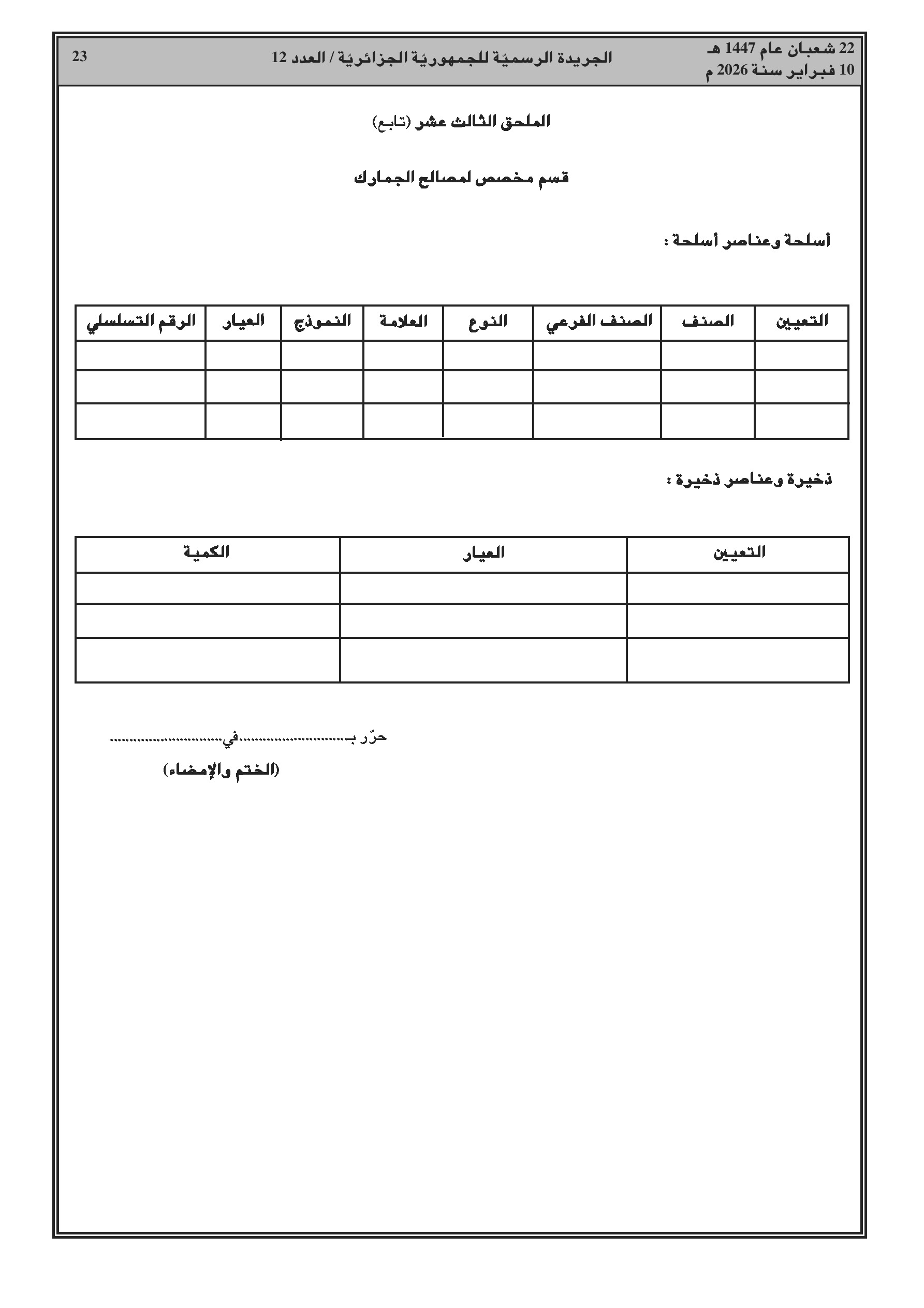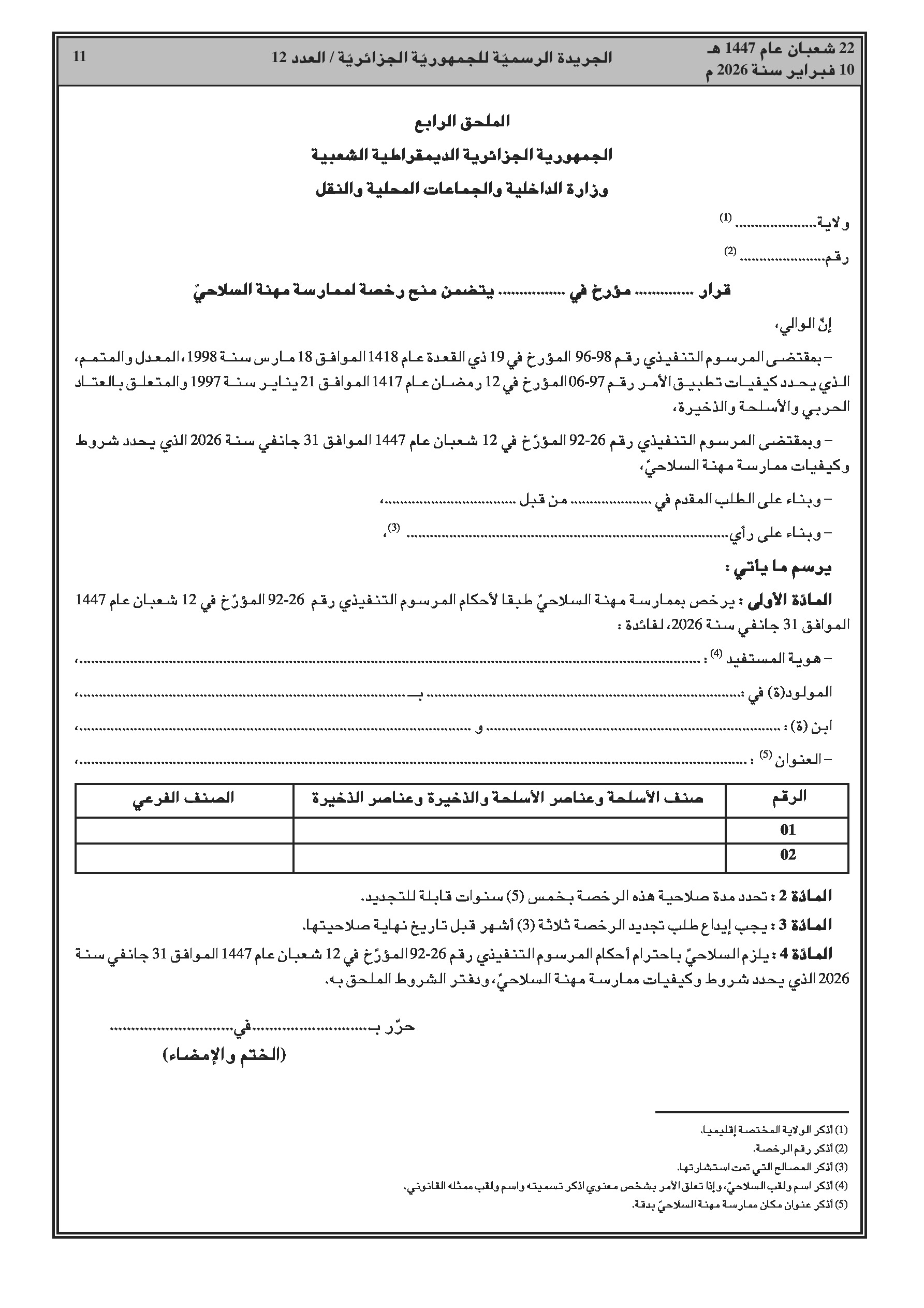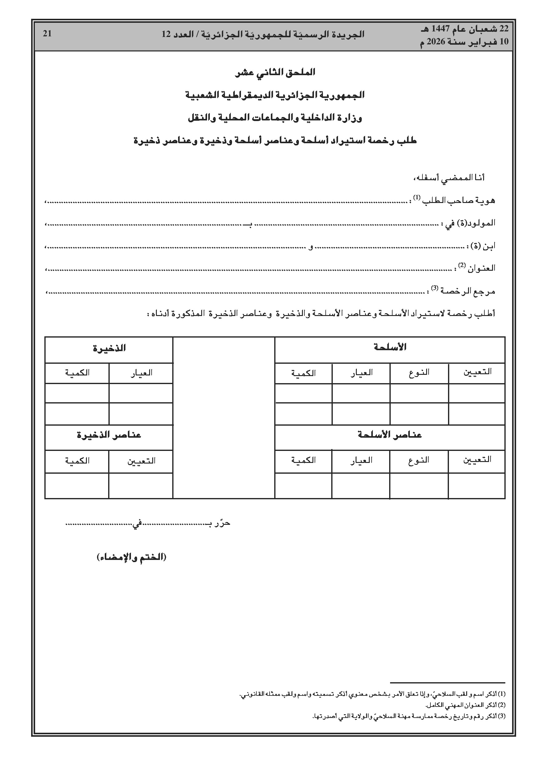 مرسوم تنفيذي يحدد القواعد الصارمة لبيع، شراء، استيراد، وإصلاح الأسلحة والذخيرة، وشروط الأمن المطلوبة.