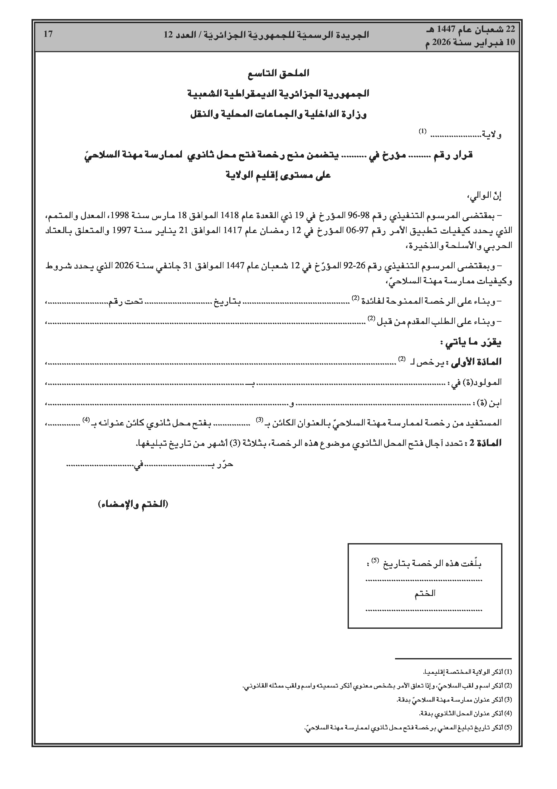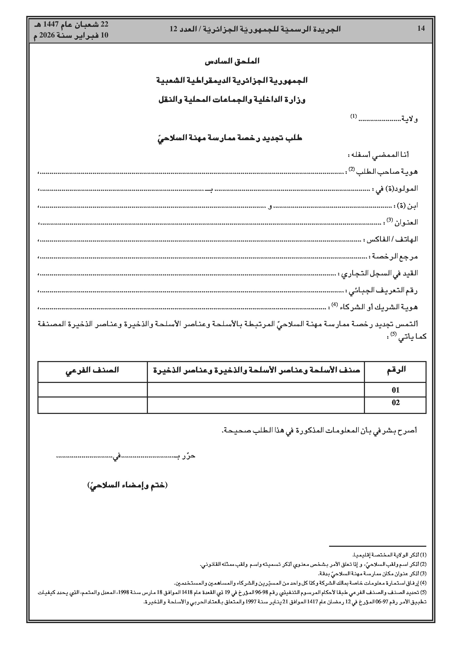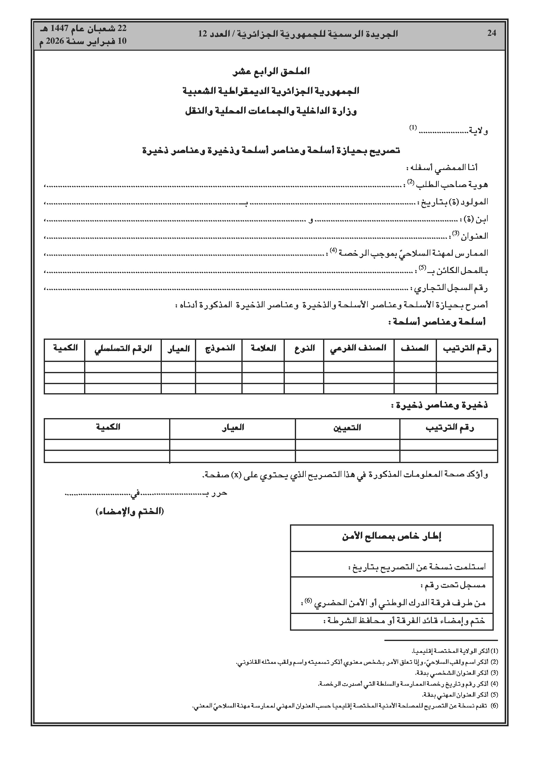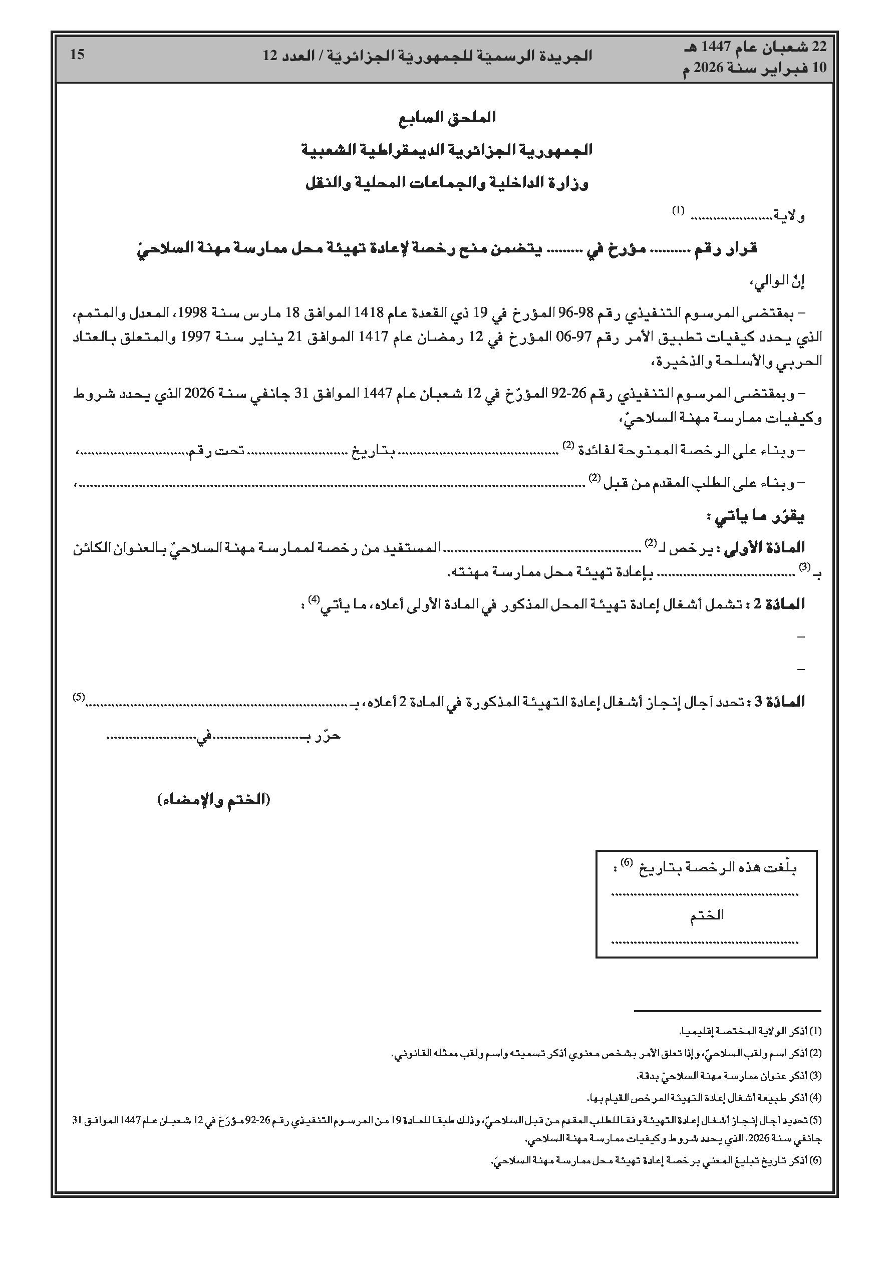 مرسوم تنفيذي يحدد القواعد الصارمة لبيع، شراء، استيراد، وإصلاح الأسلحة والذخيرة، وشروط الأمن المطلوبة.