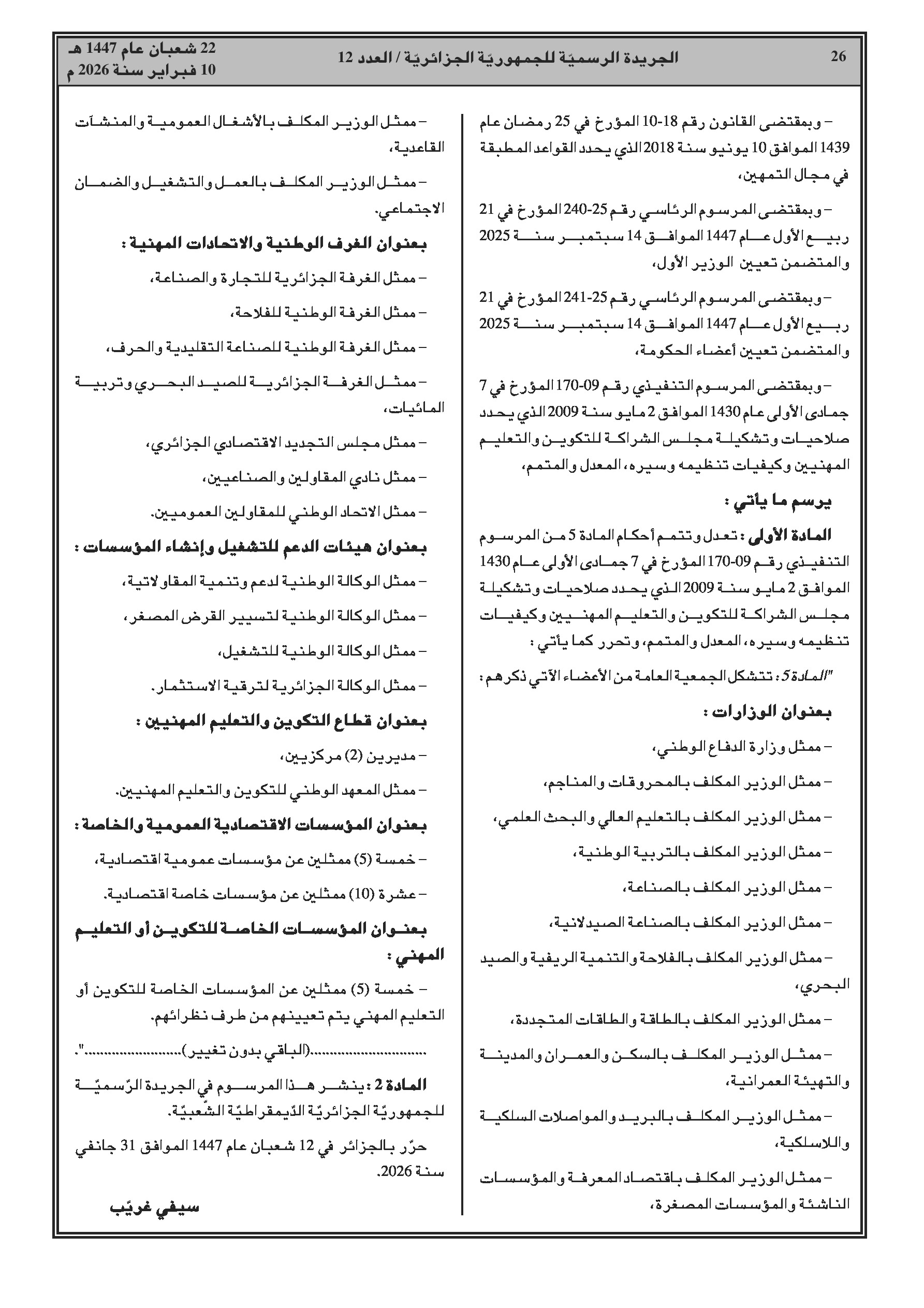 تعديل تشكيلة مجلس الشراكة للتكوين المهني لتشمل ممثلي المؤسسات الاقتصادية والوزارات المختلفة.