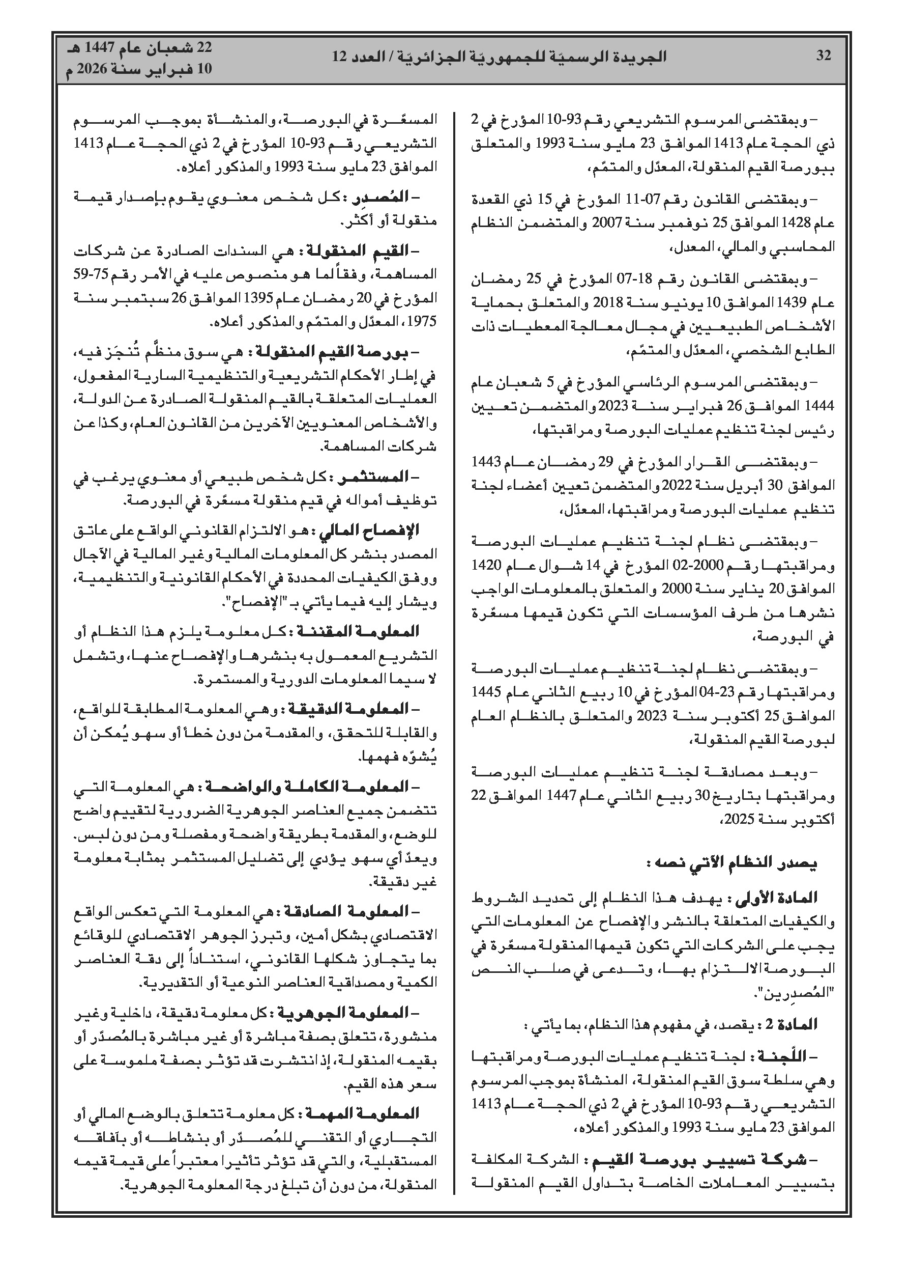 اعتماد نظام جديد للجنة تنظيم عمليات البورصة يتعلق بإفصاح الشركات المدرجة عن المعلومات.