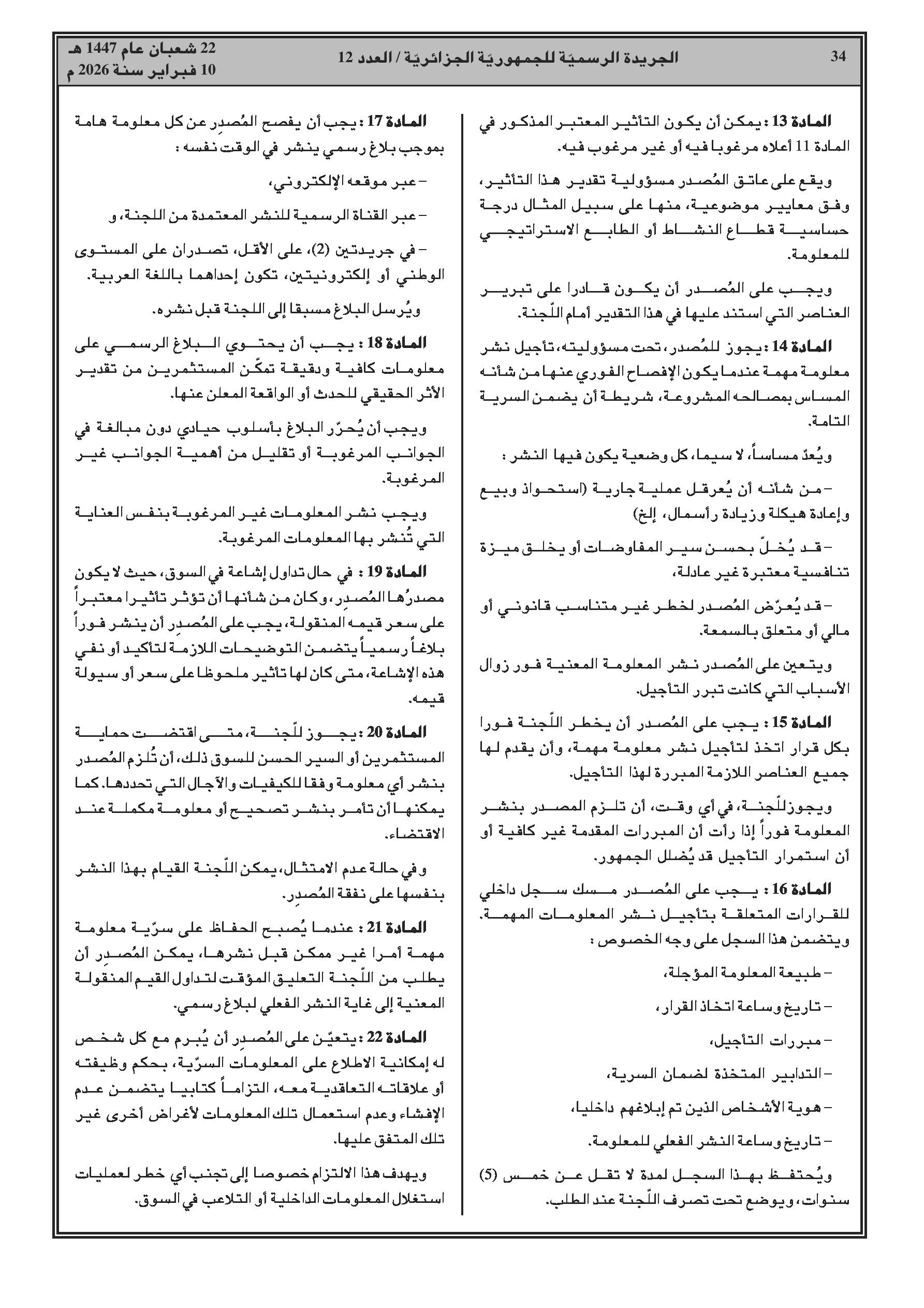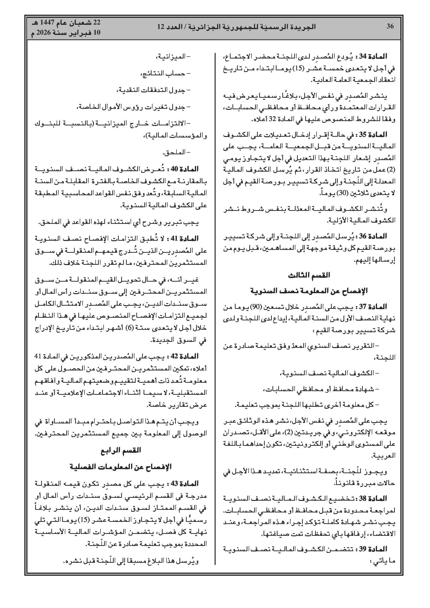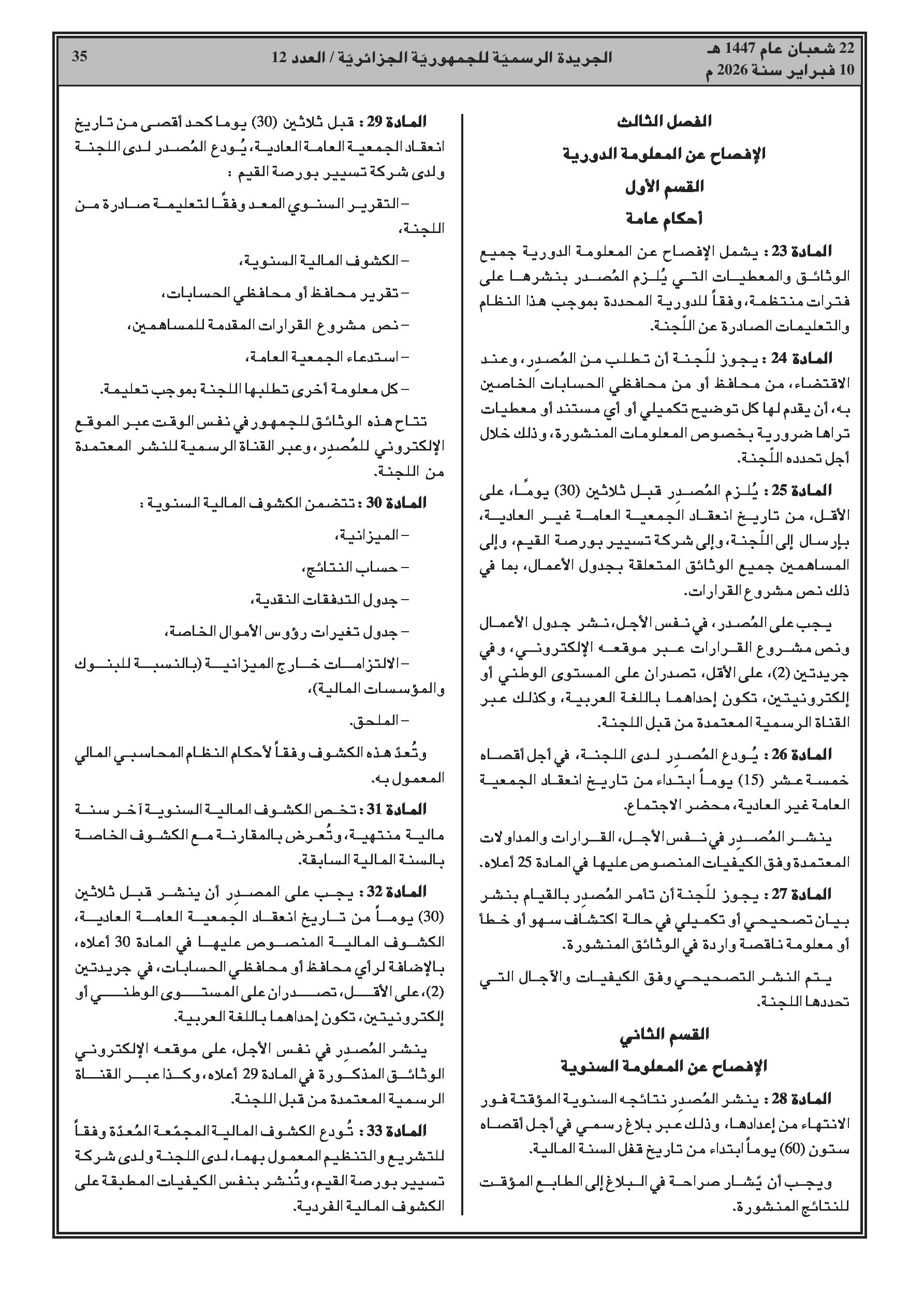 تحديد قواعد النشر الدوري (سنوي، نصف سنوي، فصلي) للمعلومات المالية.