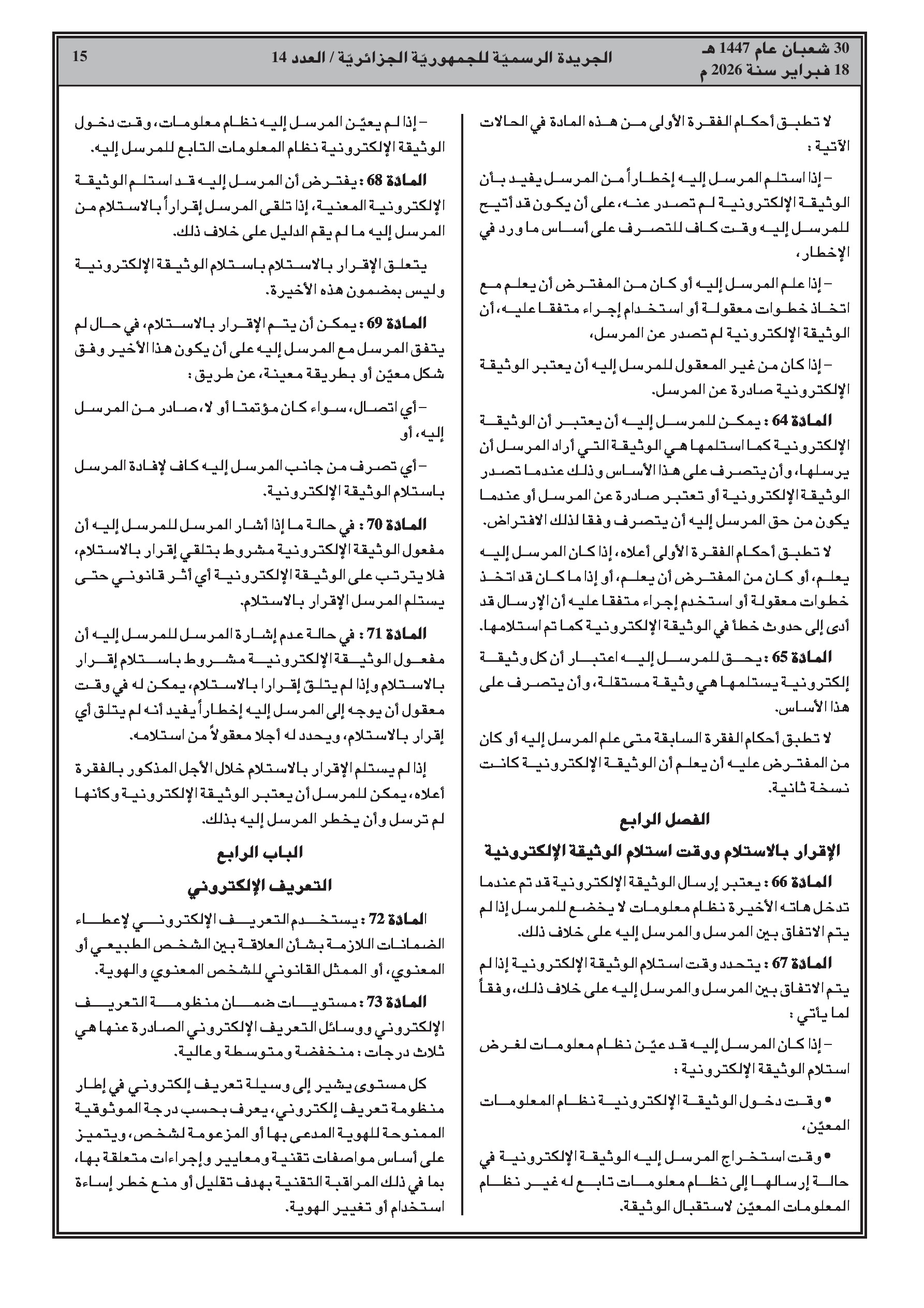 قانون رقم 26-02 يضع إطاراً قانونياً شاملاً للتوقيع الإلكتروني، الختم الإلكتروني، وخدمات الإرسال الموثوقة.