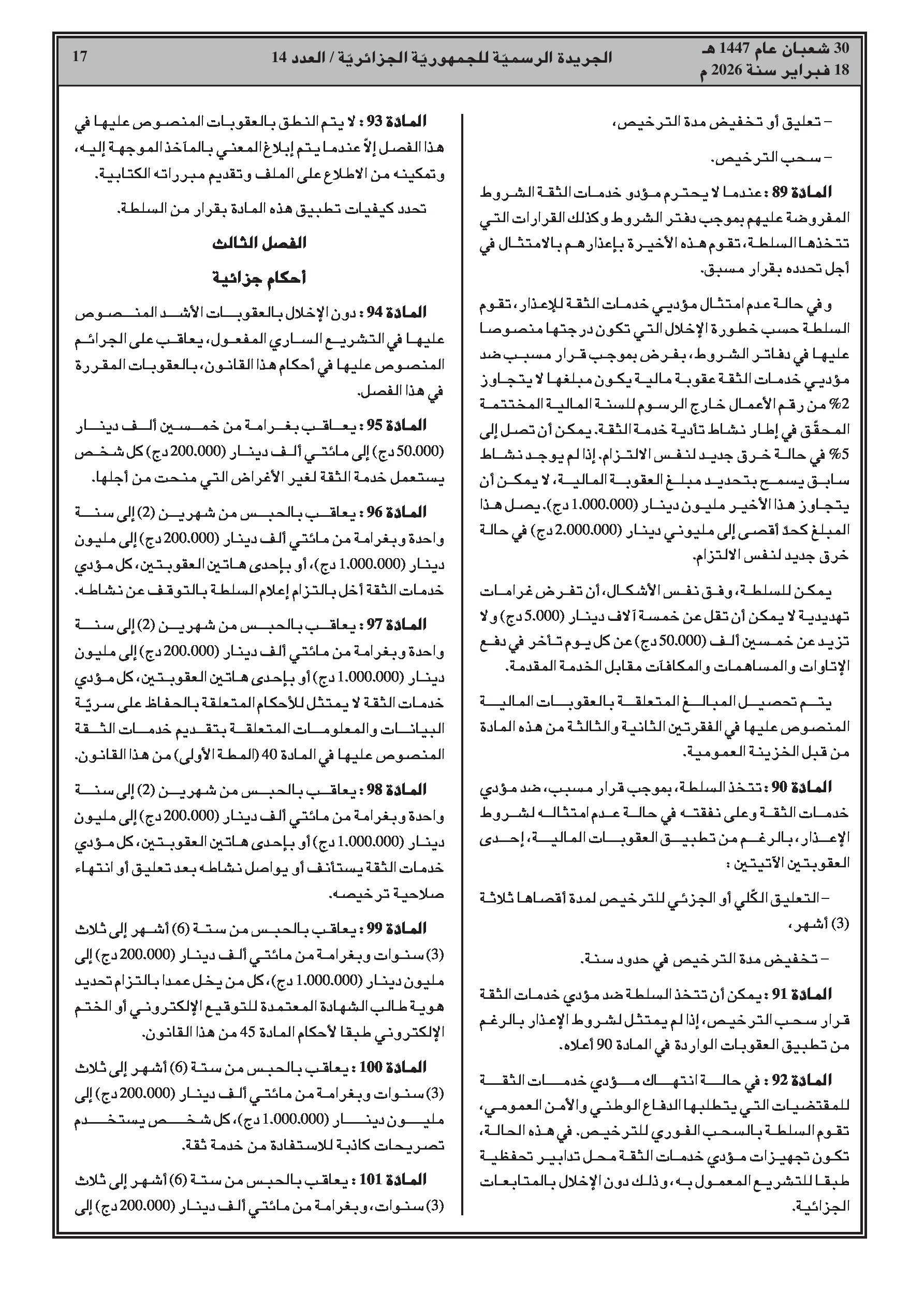 تصفح وابحث في الجريدة الرسمية الجزائرية على القوانين والمراسيم بكل سهولة وسرعة.