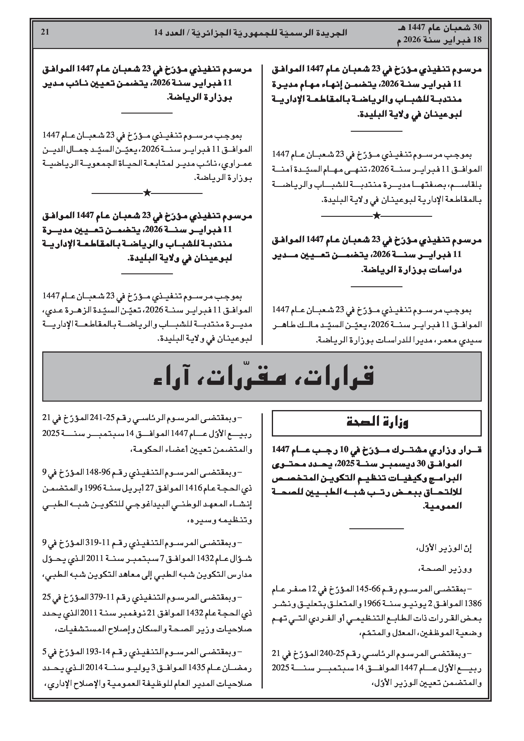 5. قرارات فردية وتعيينات