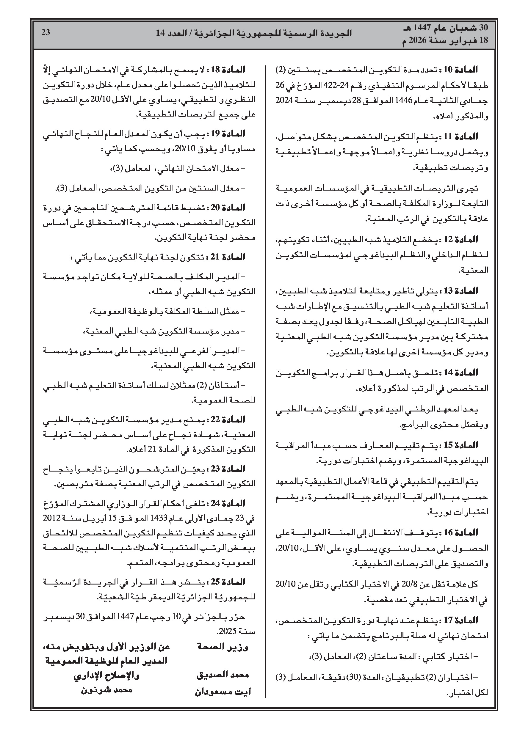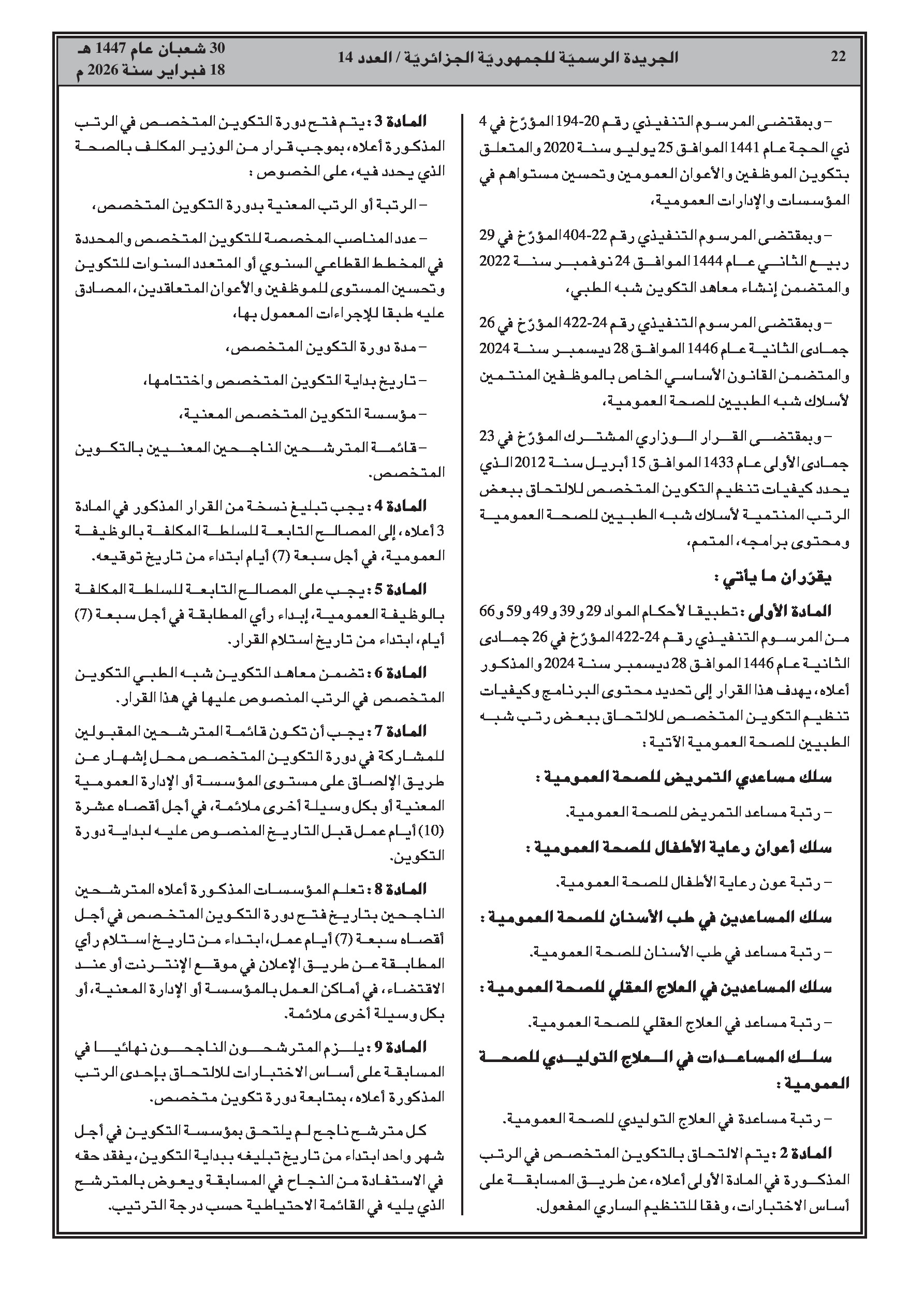 قرار وزاري يحدد برنامج وكيفيات التكوين للالتحاق ببعض رتب شبه الطبي.
