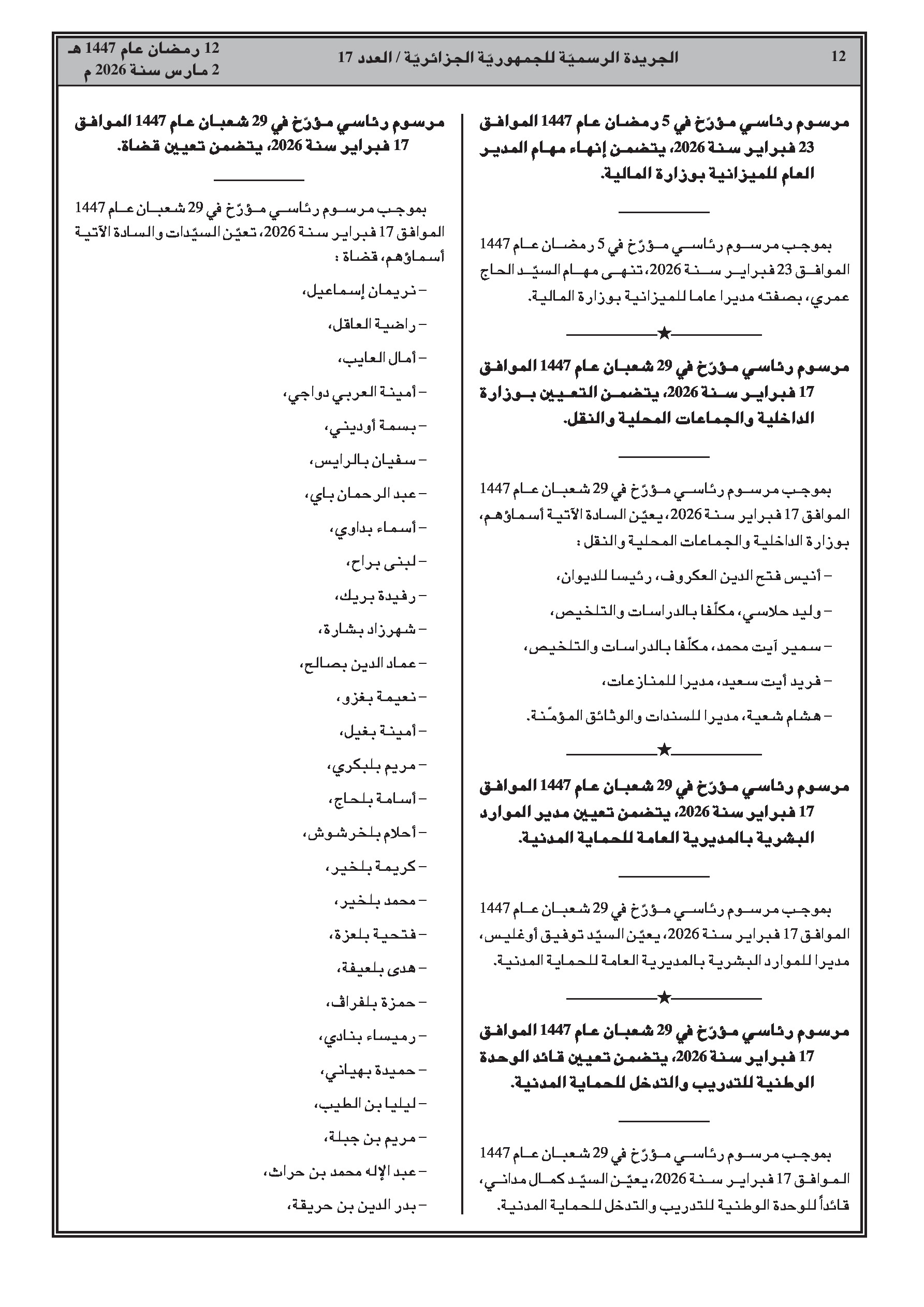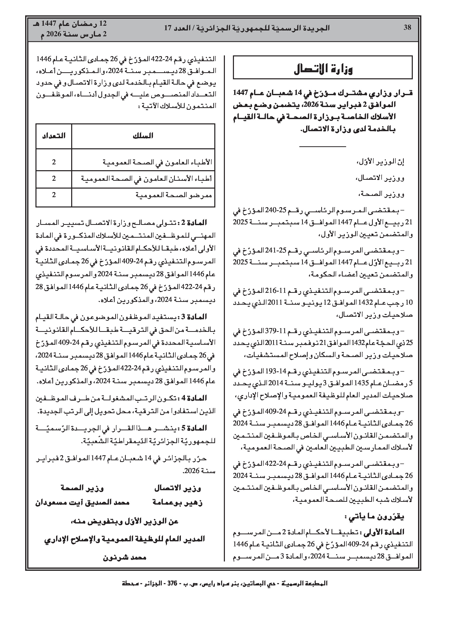 العدد 17 الأمانة العامة للحكومة الجزائرية
