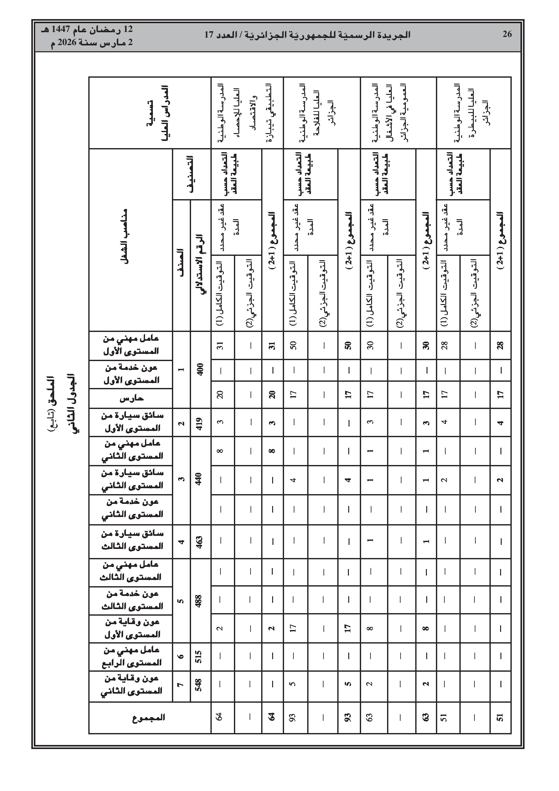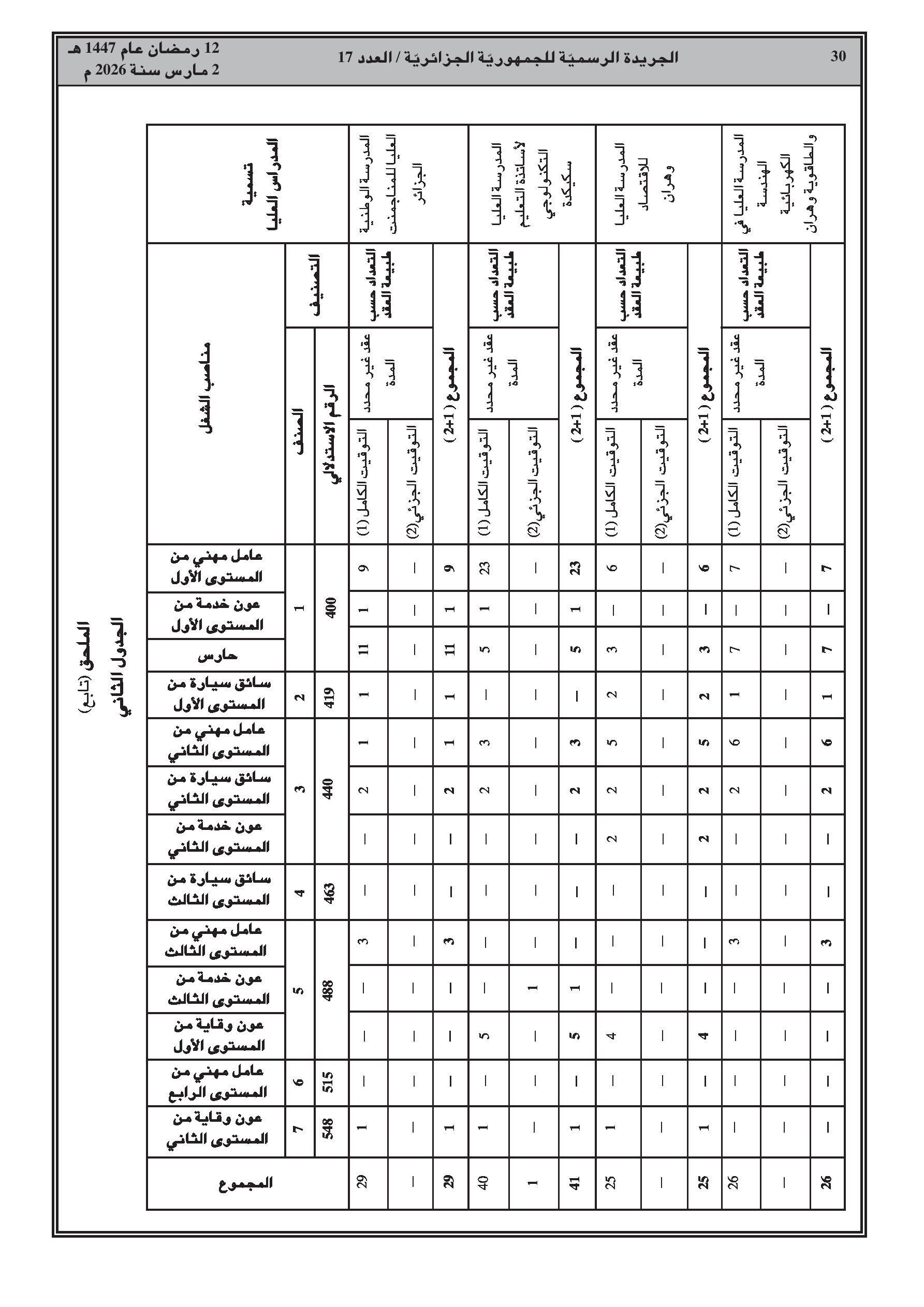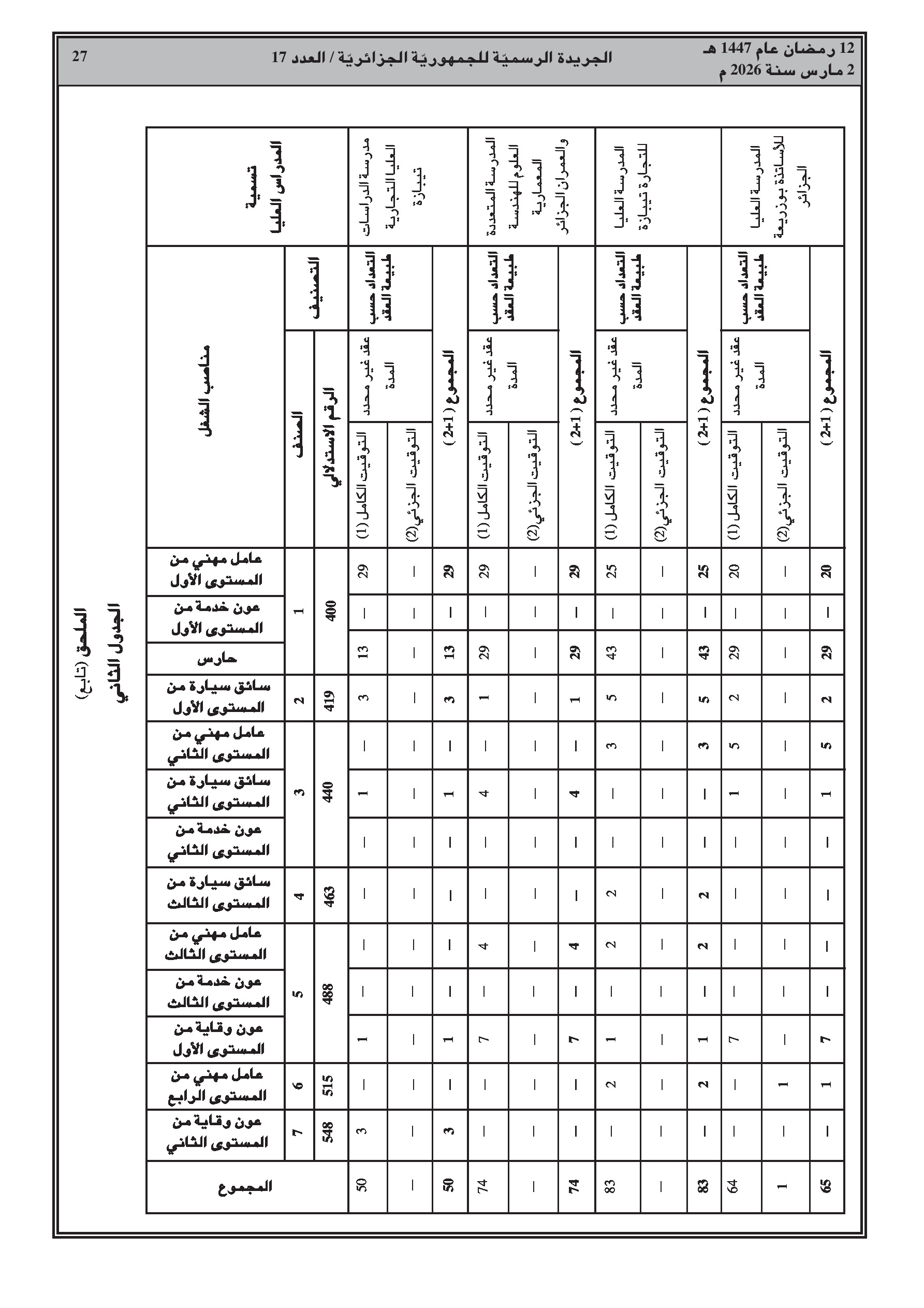 تعديل قائمة المناصب للأعوان المتعاقدين (صيانة وخدمات) في المدارس الوطنية العليا.