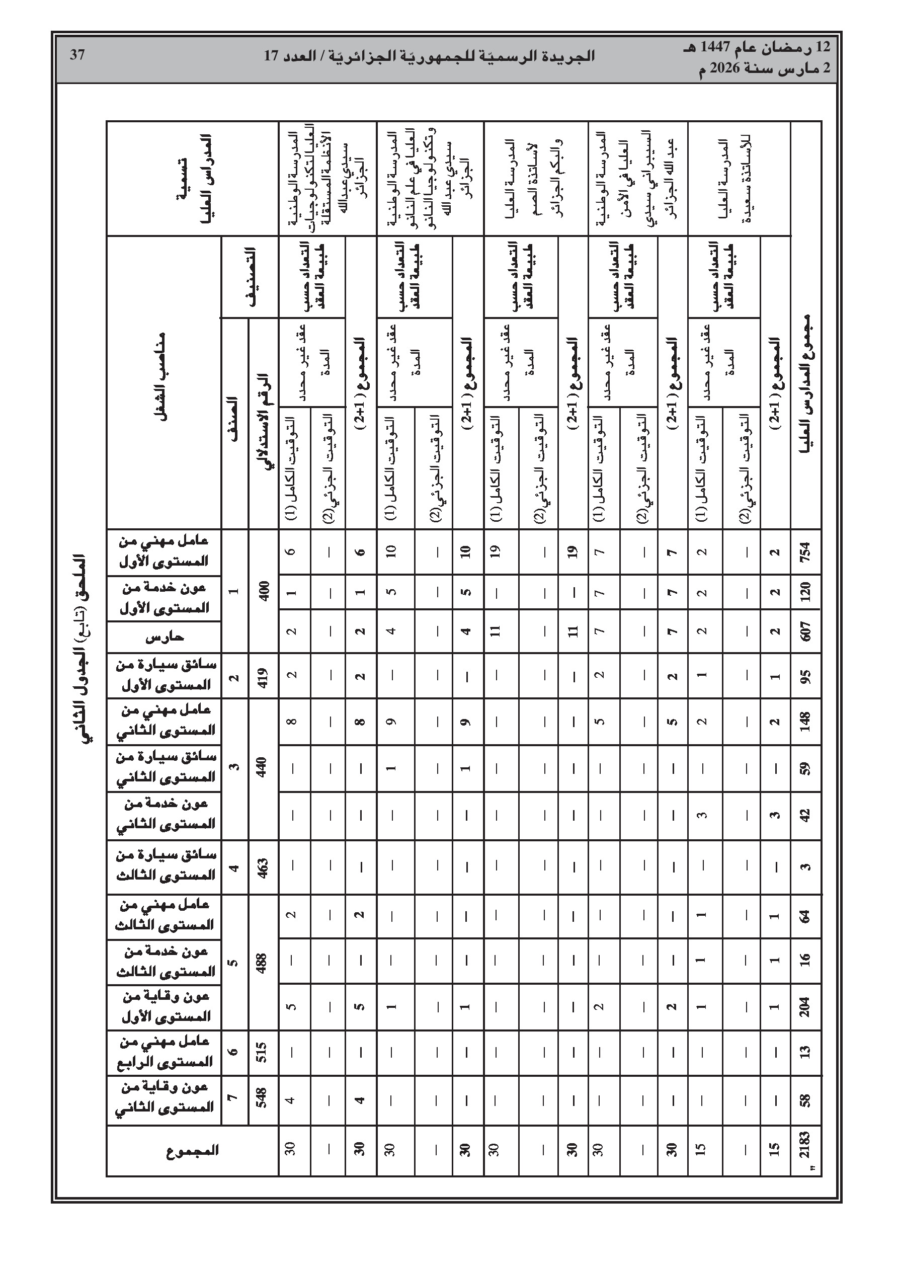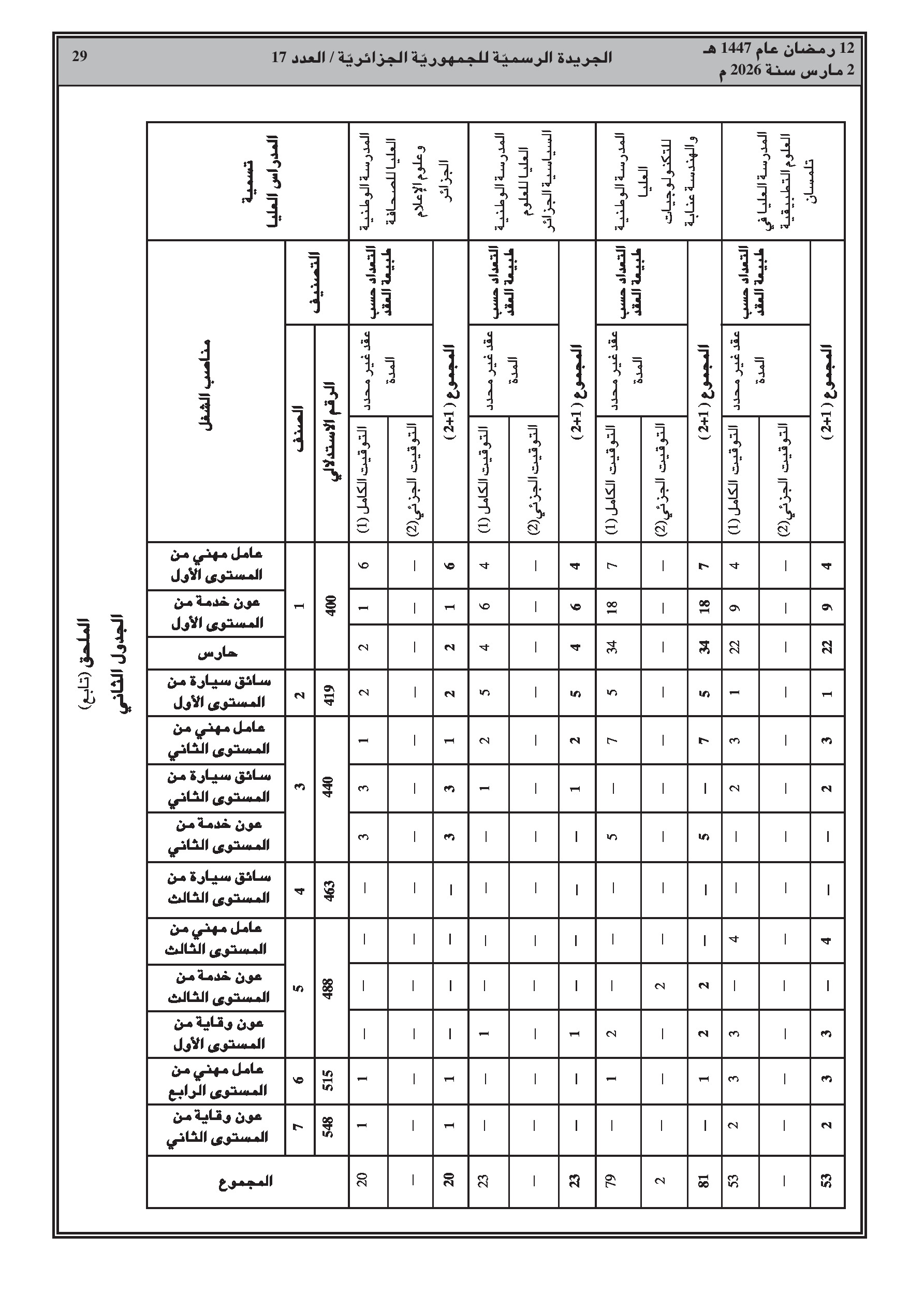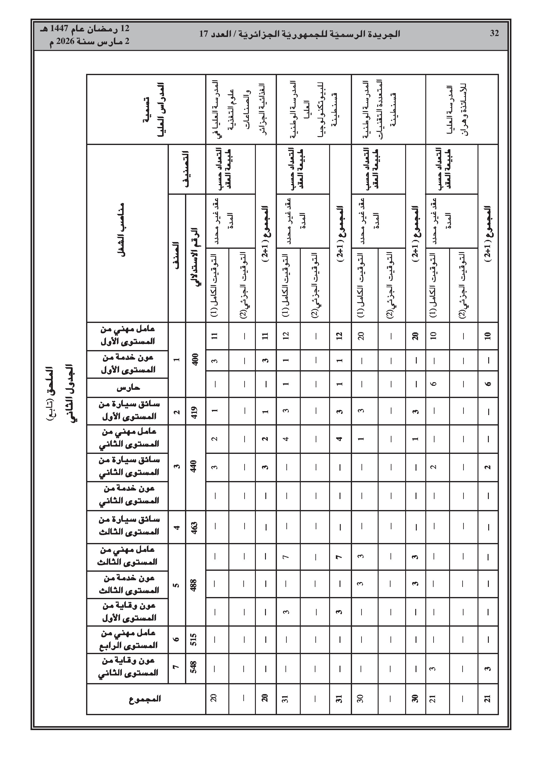 تعديل قائمة المناصب للأعوان المتعاقدين (صيانة وخدمات) في المدارس الوطنية العليا.