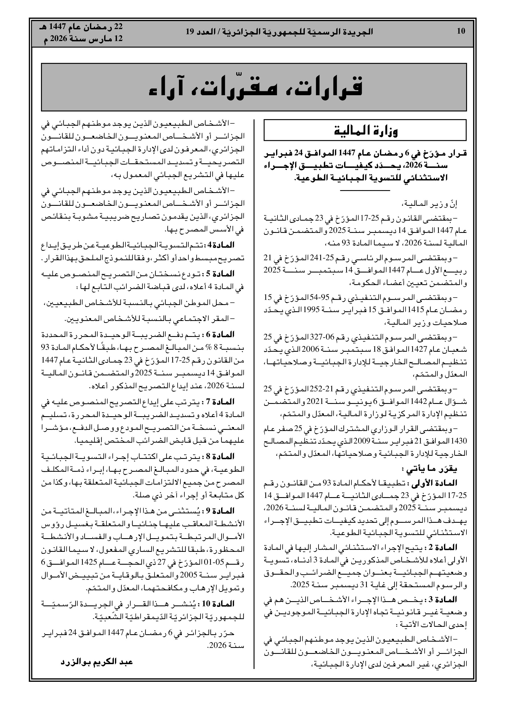 التنظيم الإداري الجديد للجزائر العاصمة وتدابير استثنائية للتسوية الضريبية