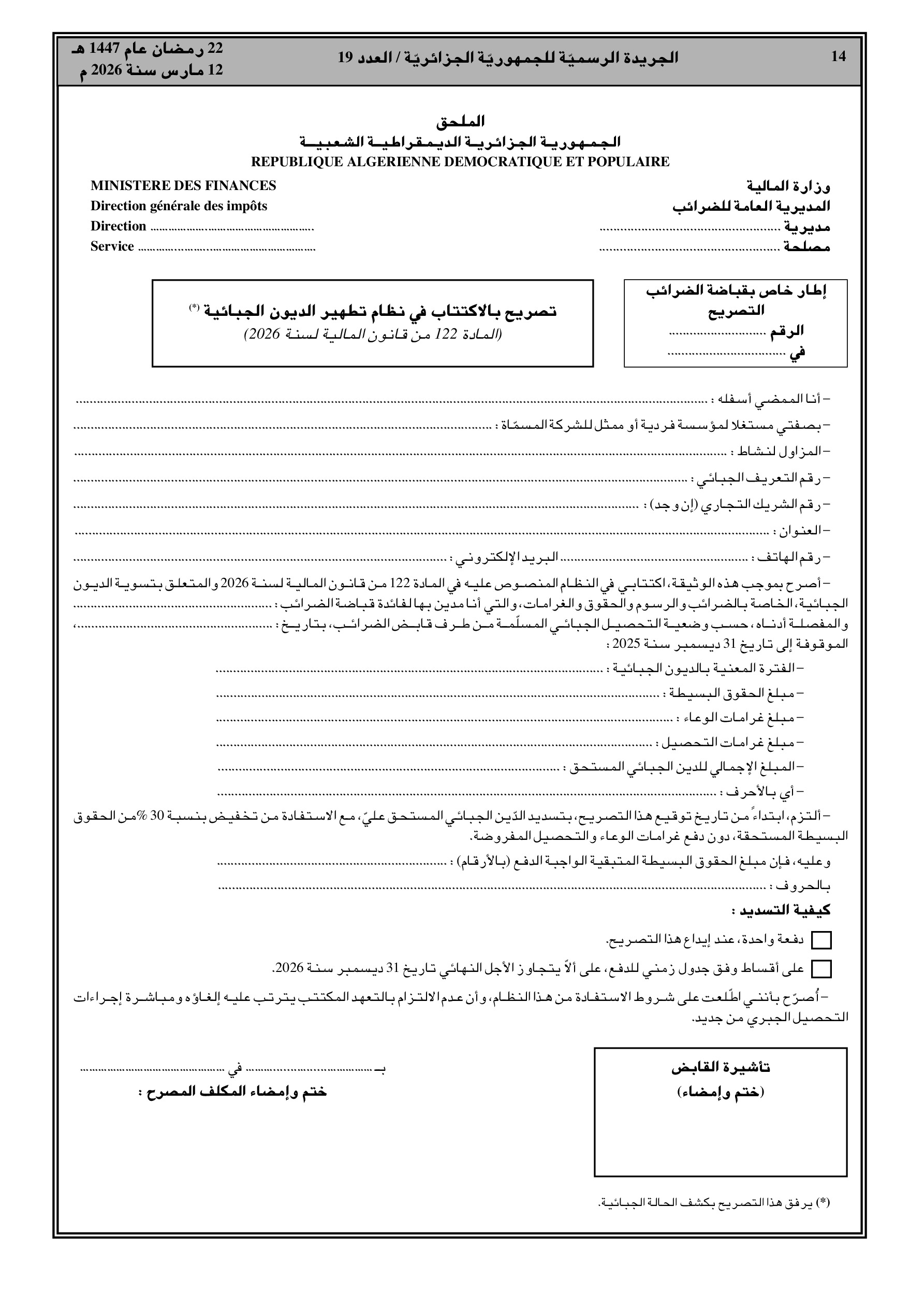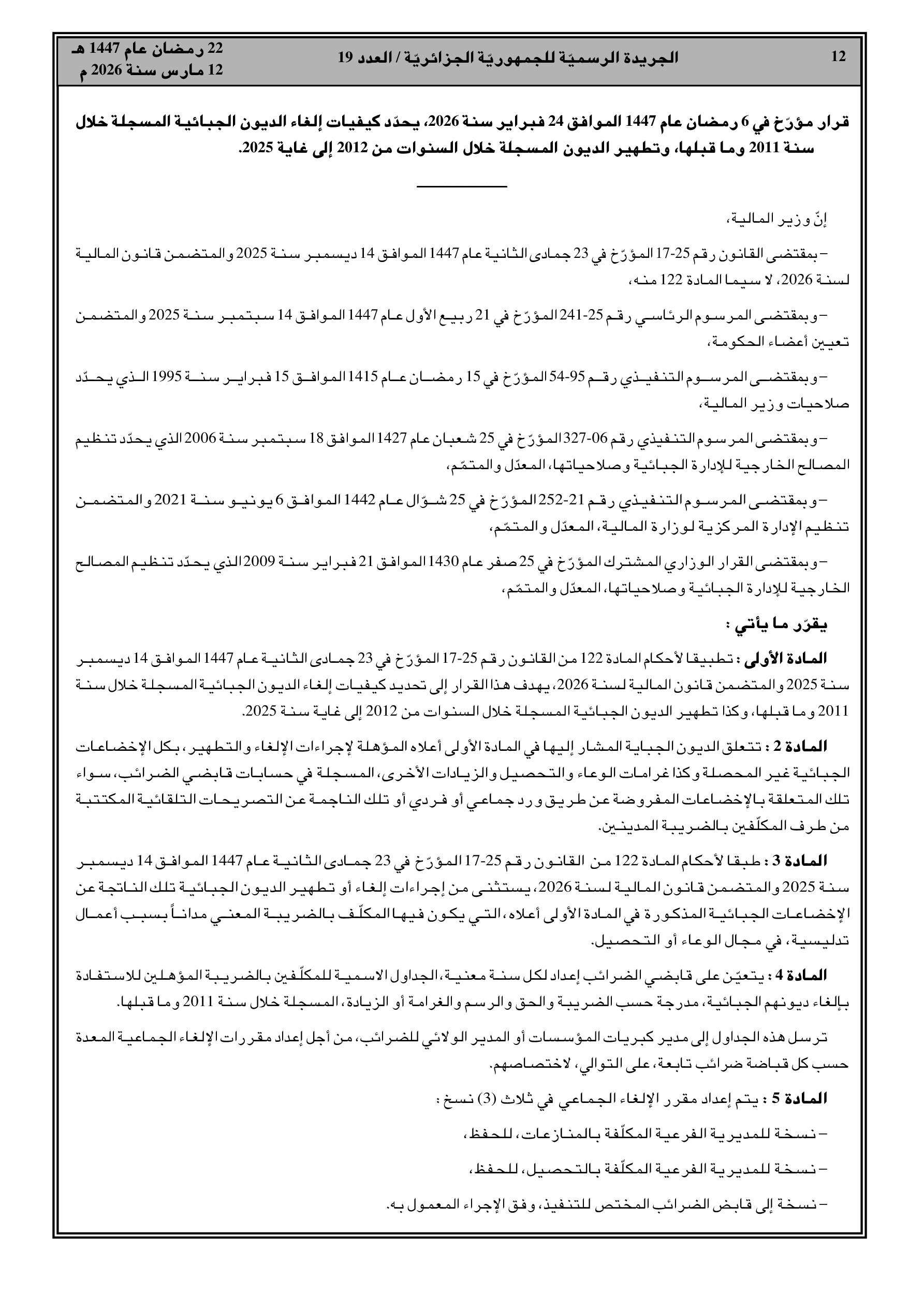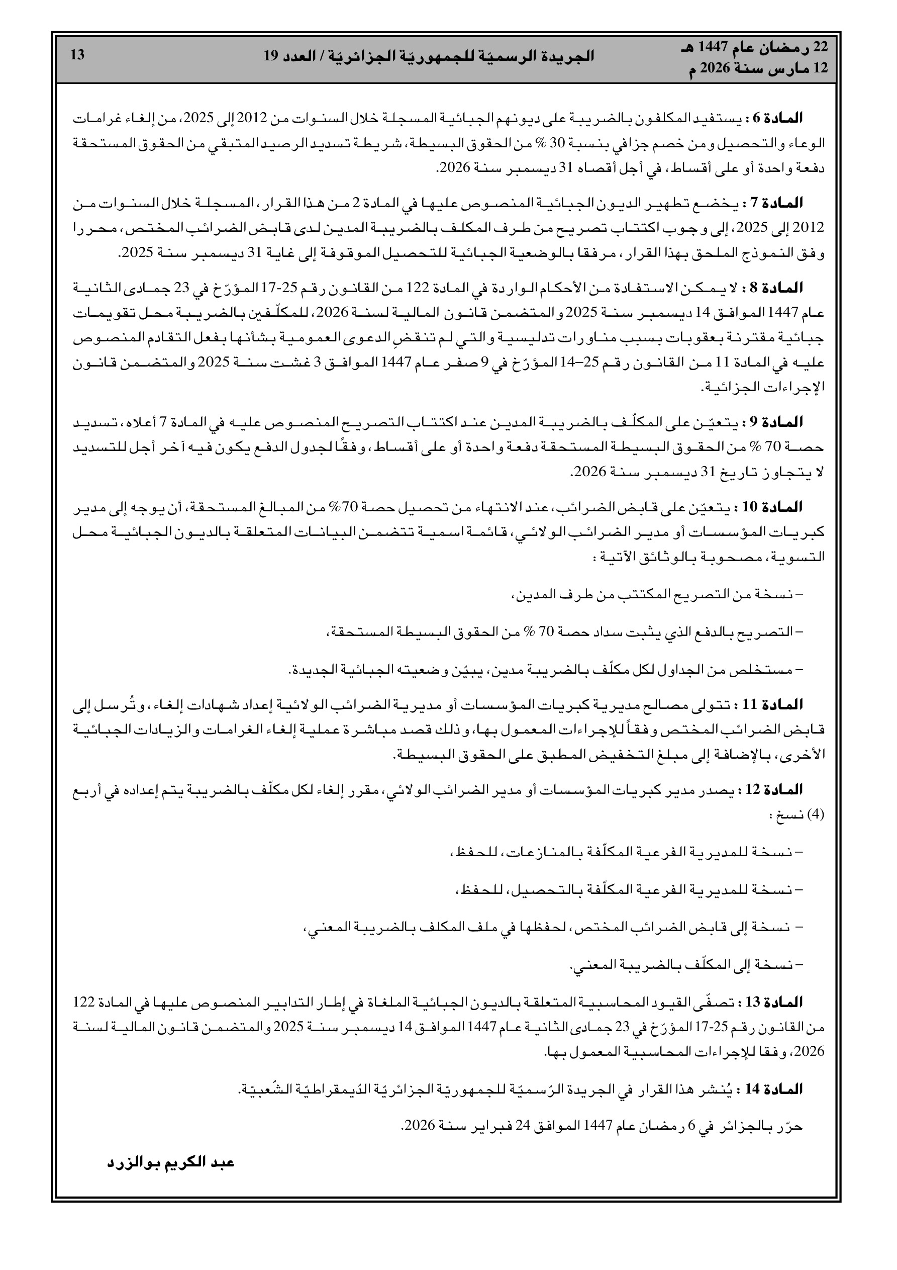 1. تدابير استثنائية للتسوية وإسقاط الديون الضريبية