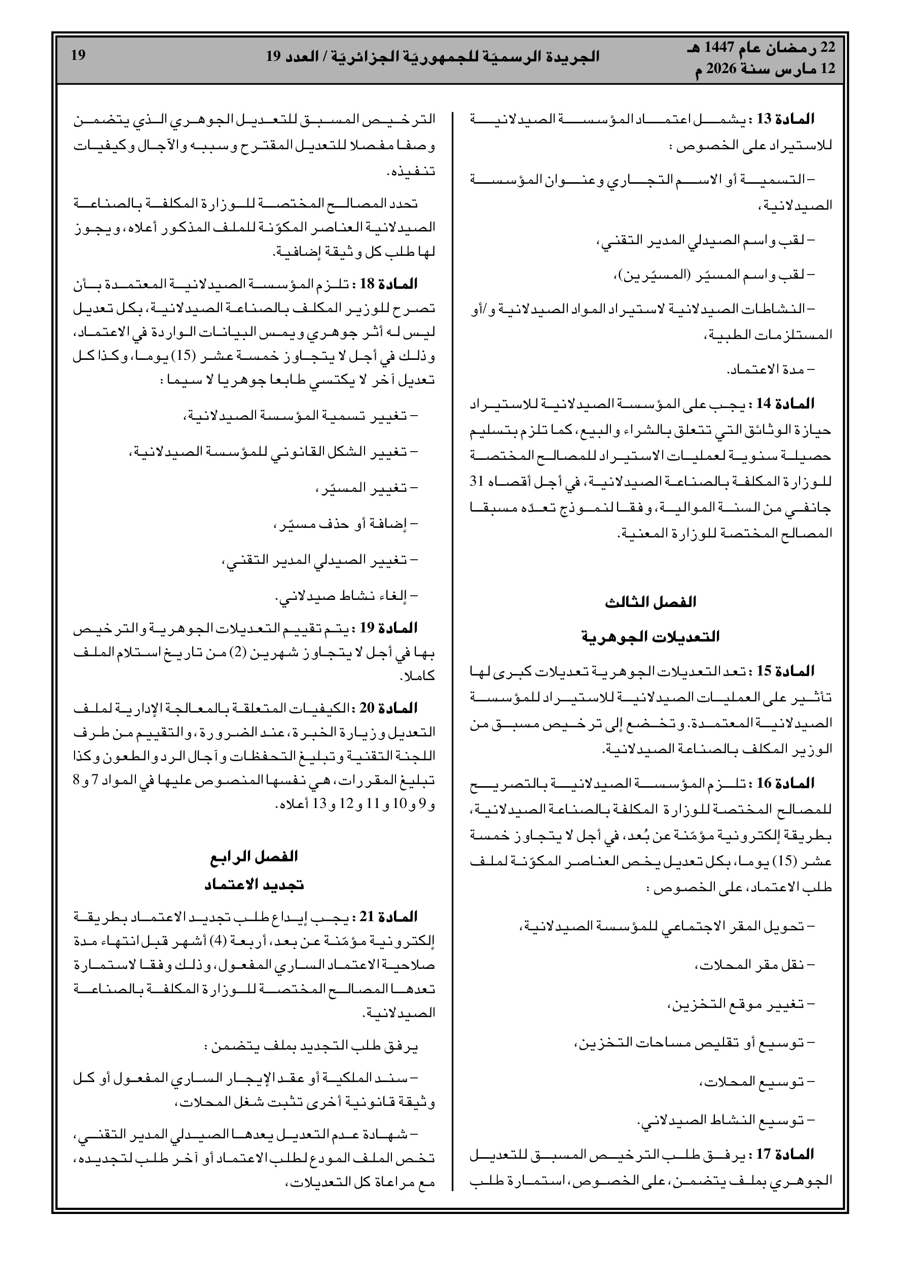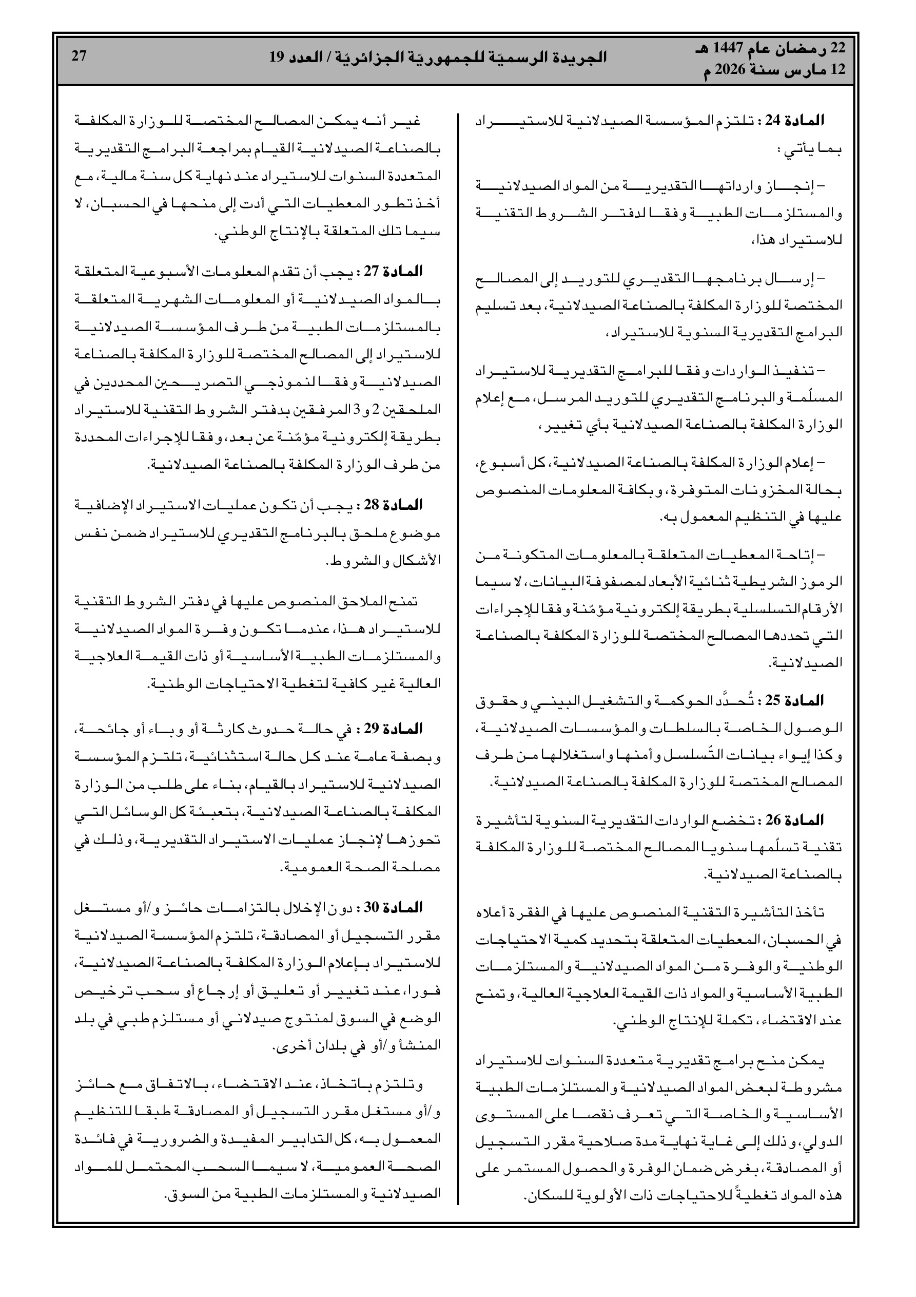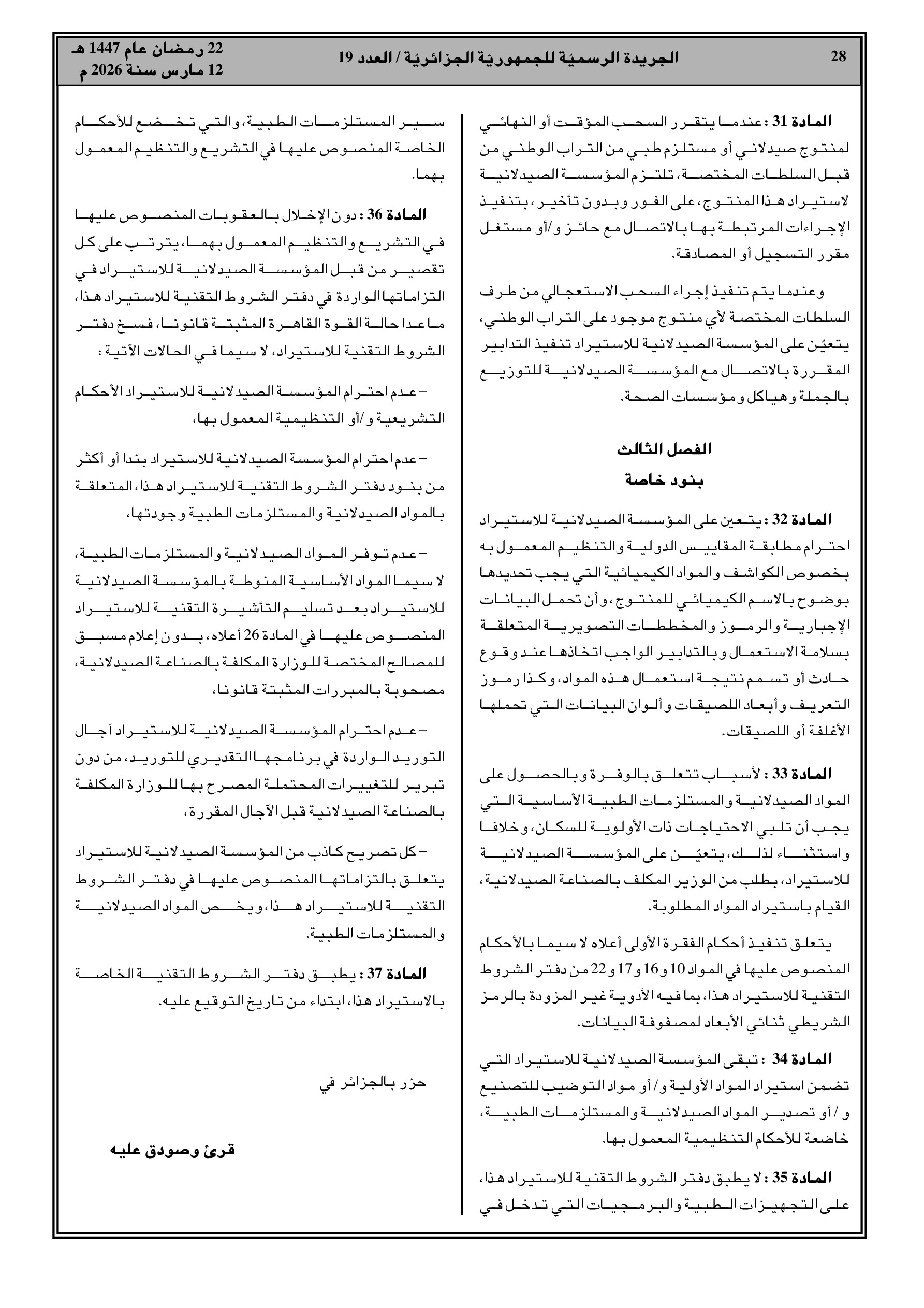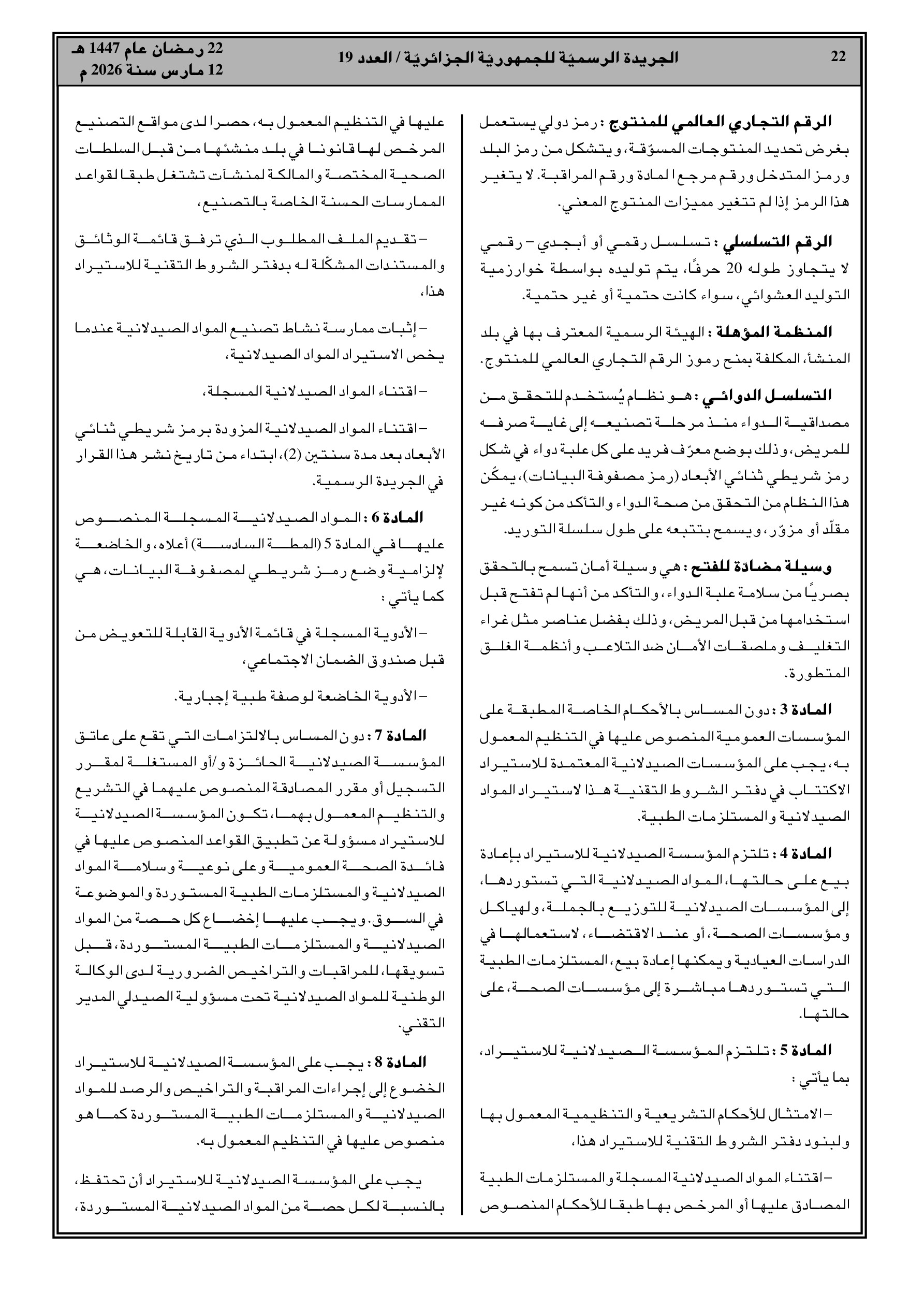 تحديد الشروط التقنية الجديدة وملفات الاعتماد لمؤسسات استيراد واستغلال المواد الصيدلانية والمستلزمات الطبية.