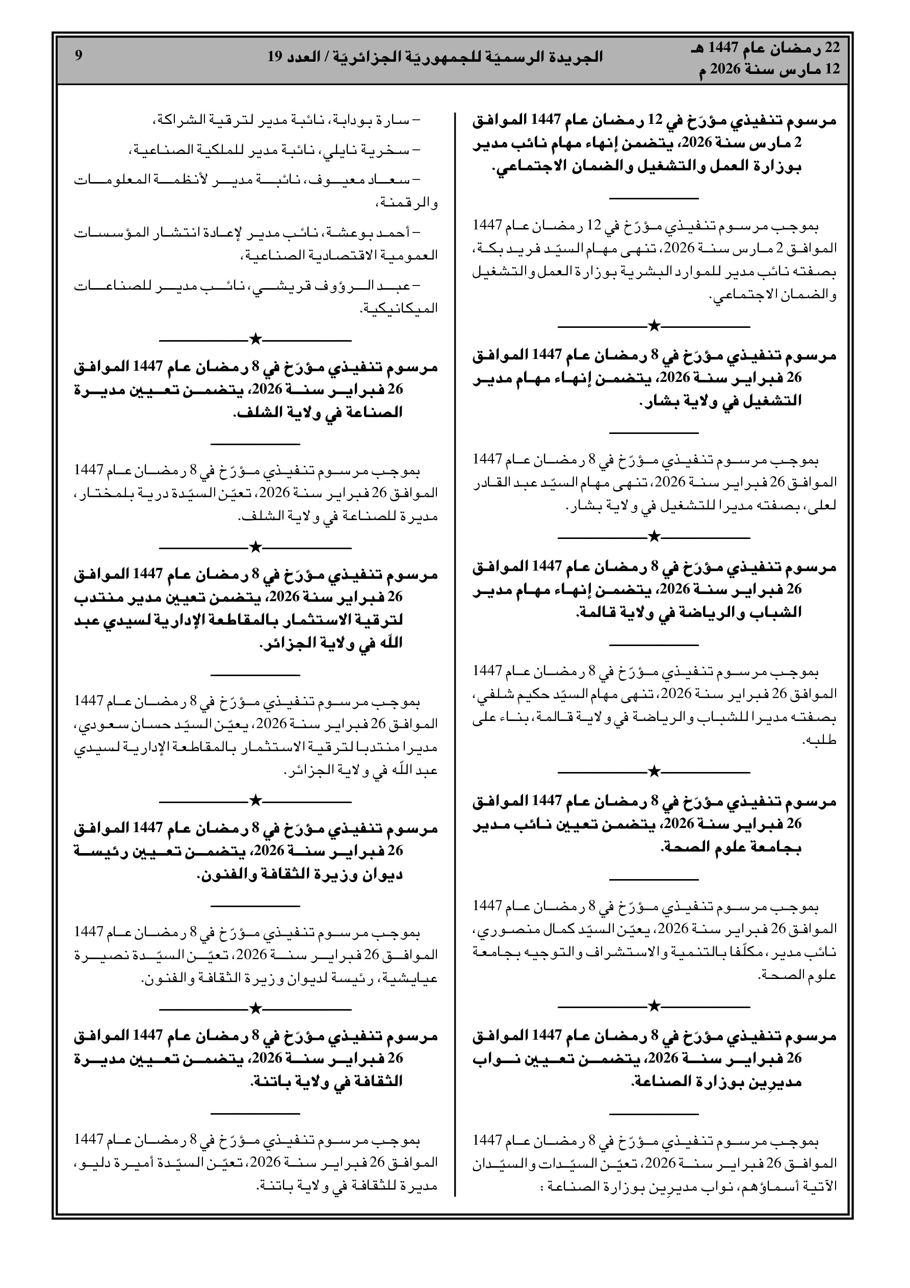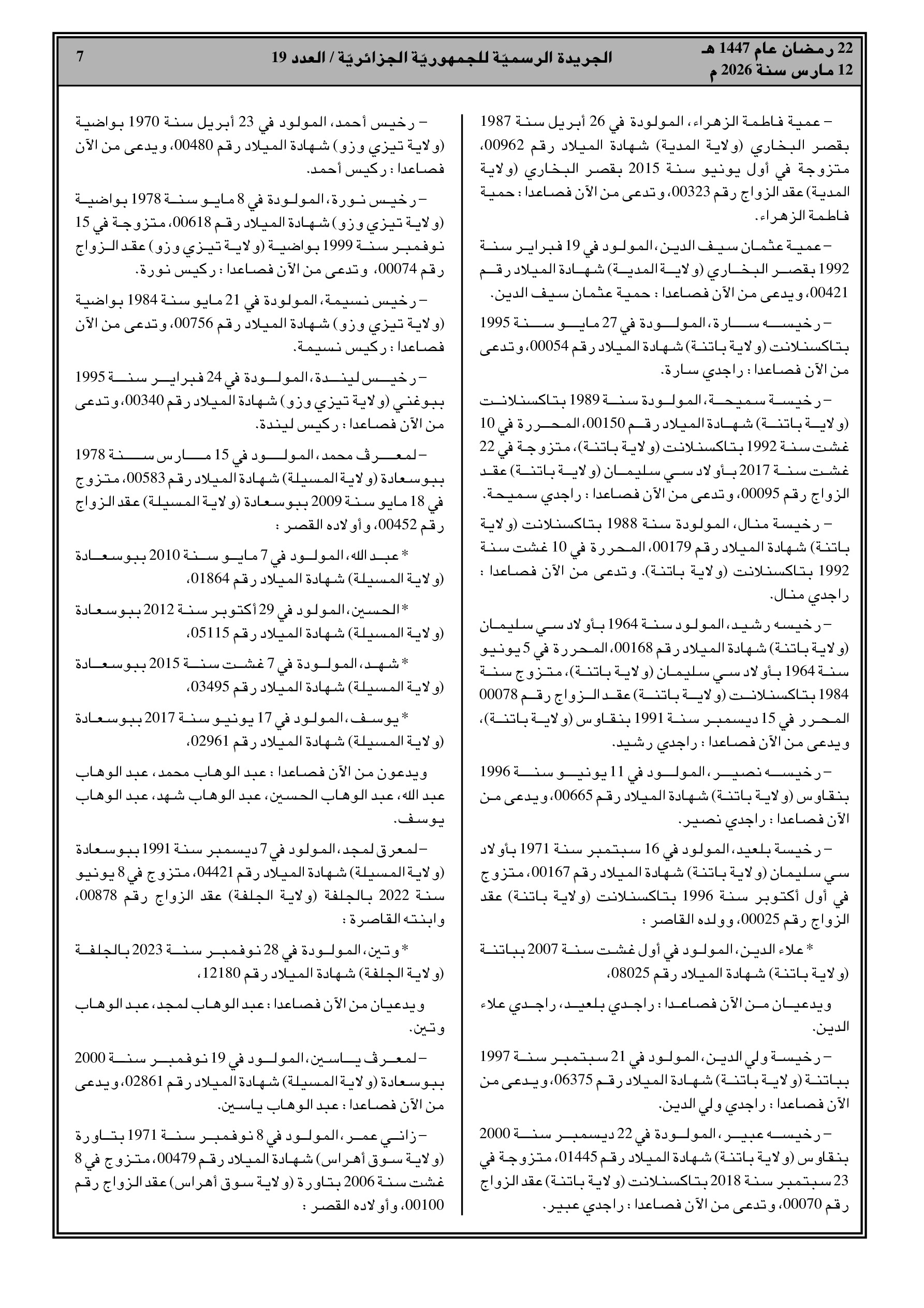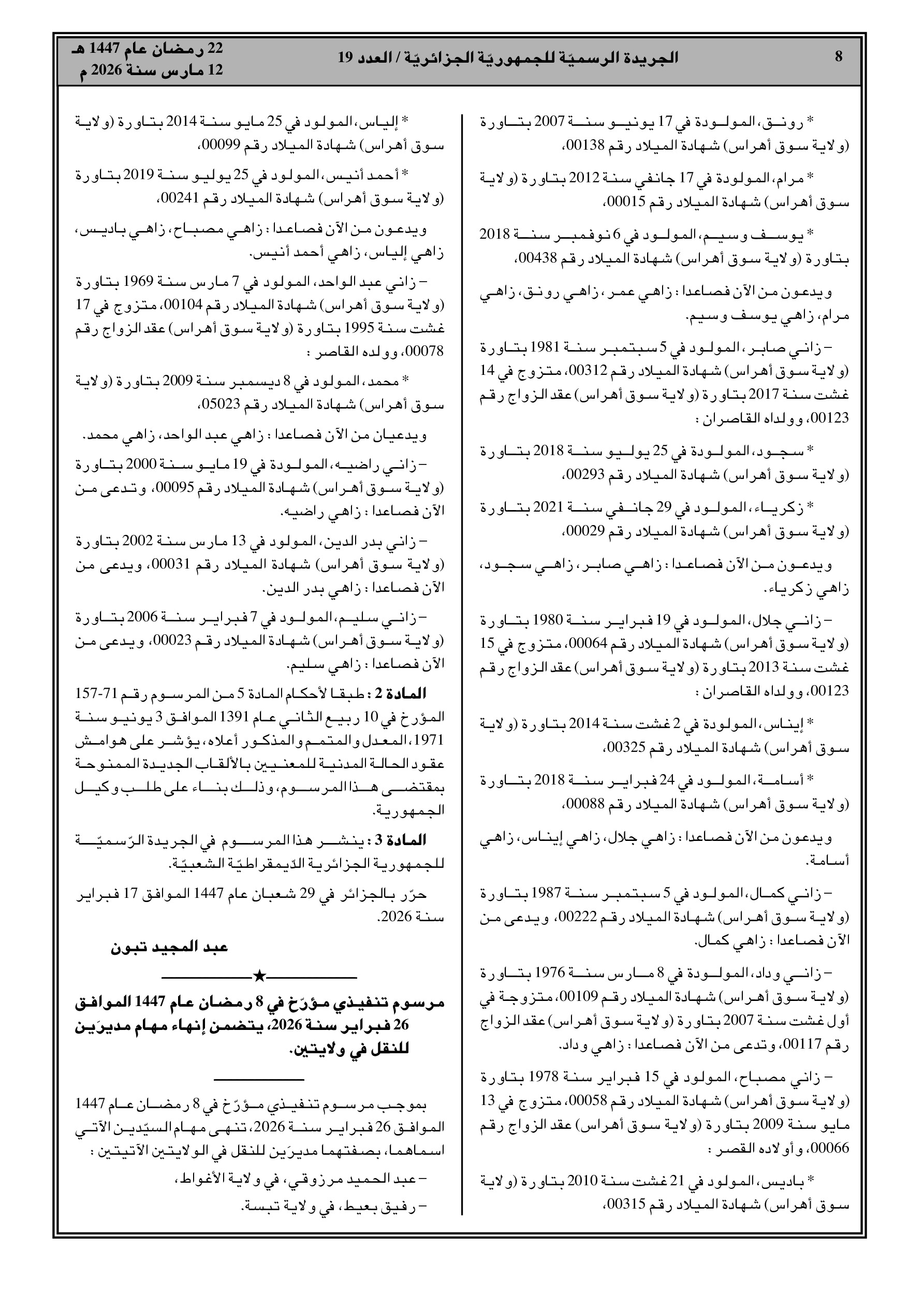 سلسلة من المراسيم الرئاسية والتنفيذية المتعلقة بتغيير الألقاب العائلية وتعيينات في عدة قطاعات وزارية.