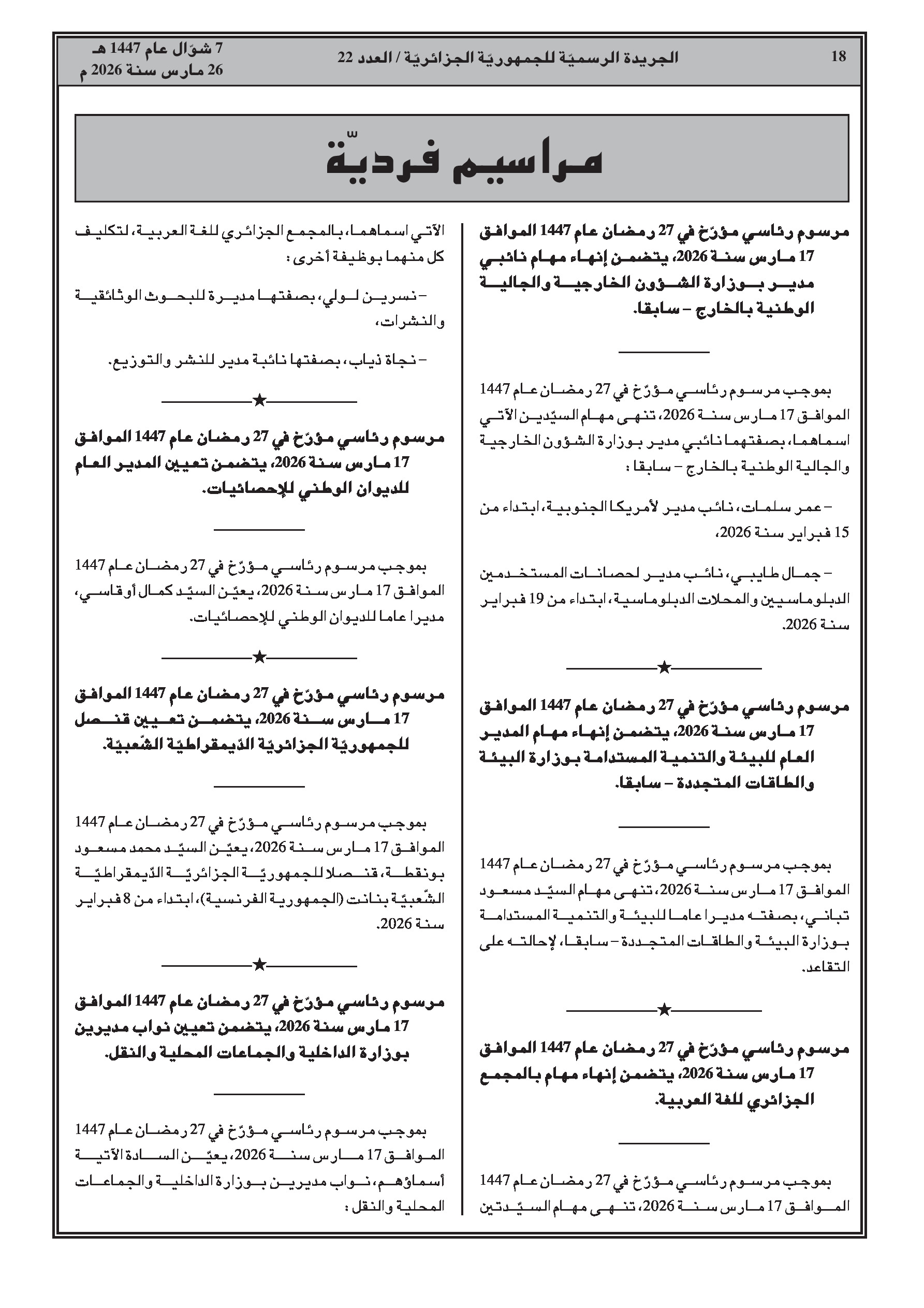 - تعيين مدير عام للديوان الوطني للإحصائيات وقنصل في نانت.