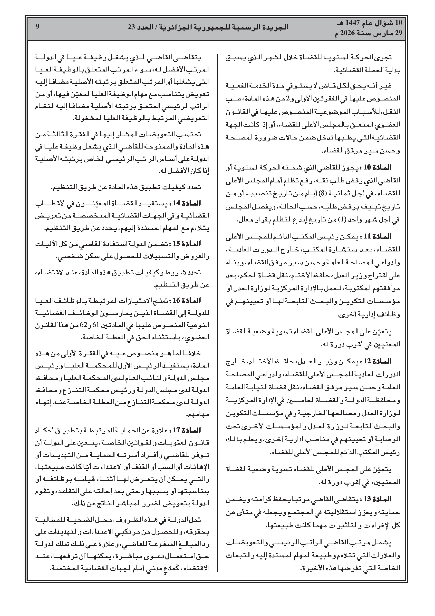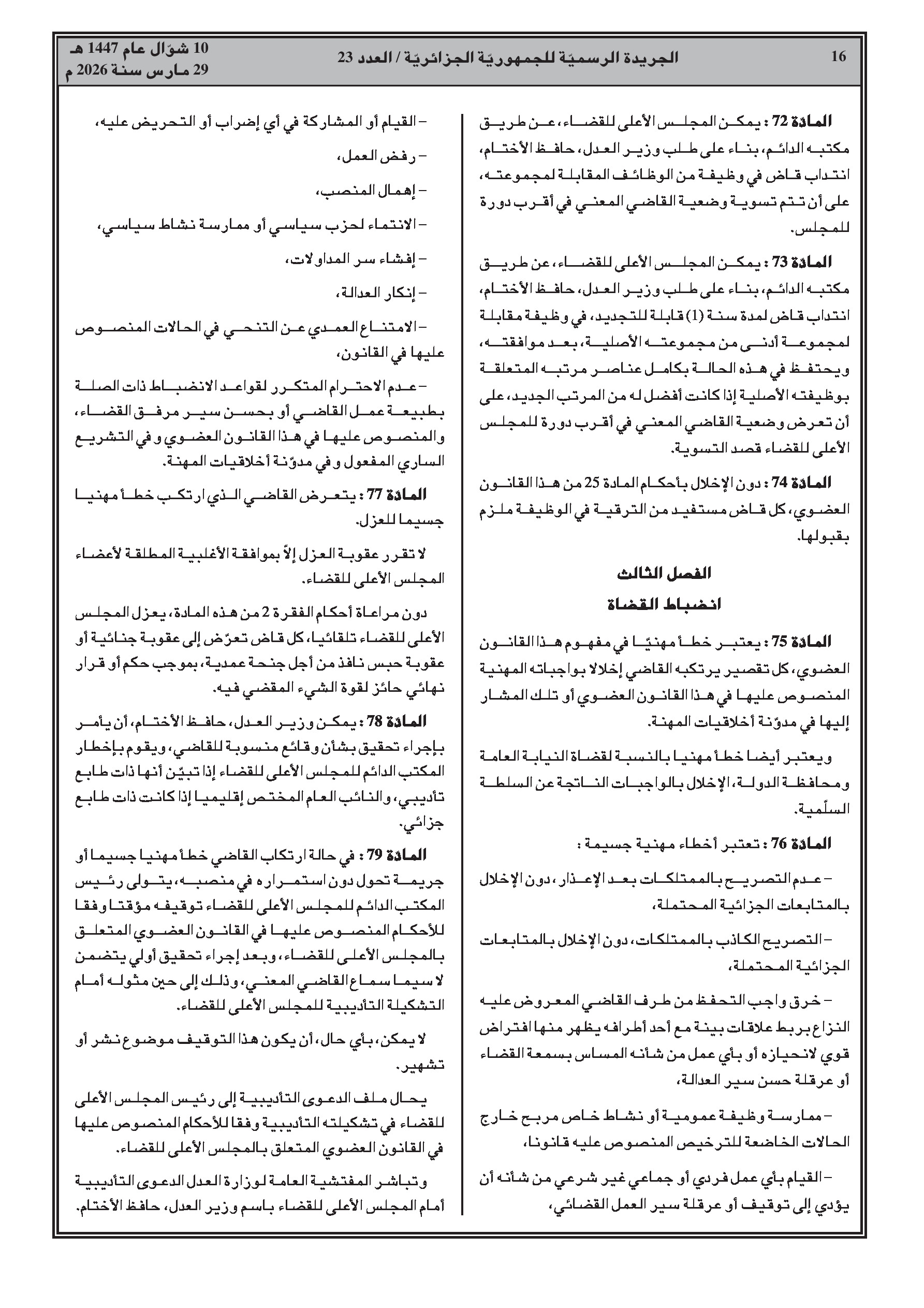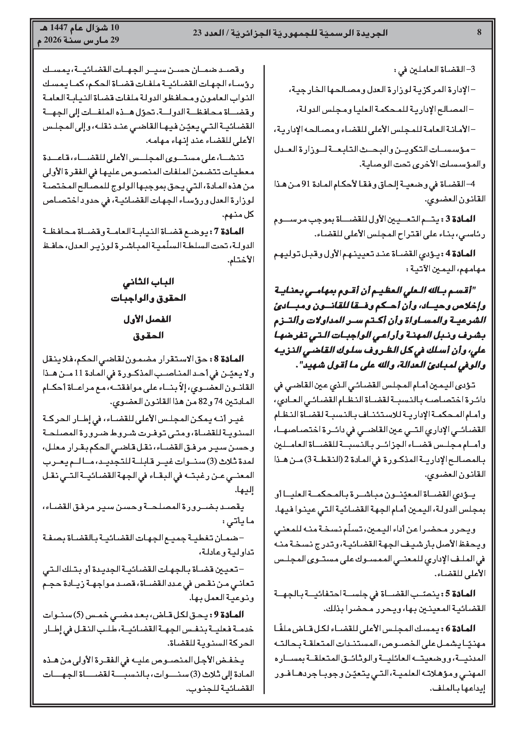 صدور القانون العضوي المتضمن القانون الأساسي للقضاء بعد مصادقة المحكمة الدستورية.