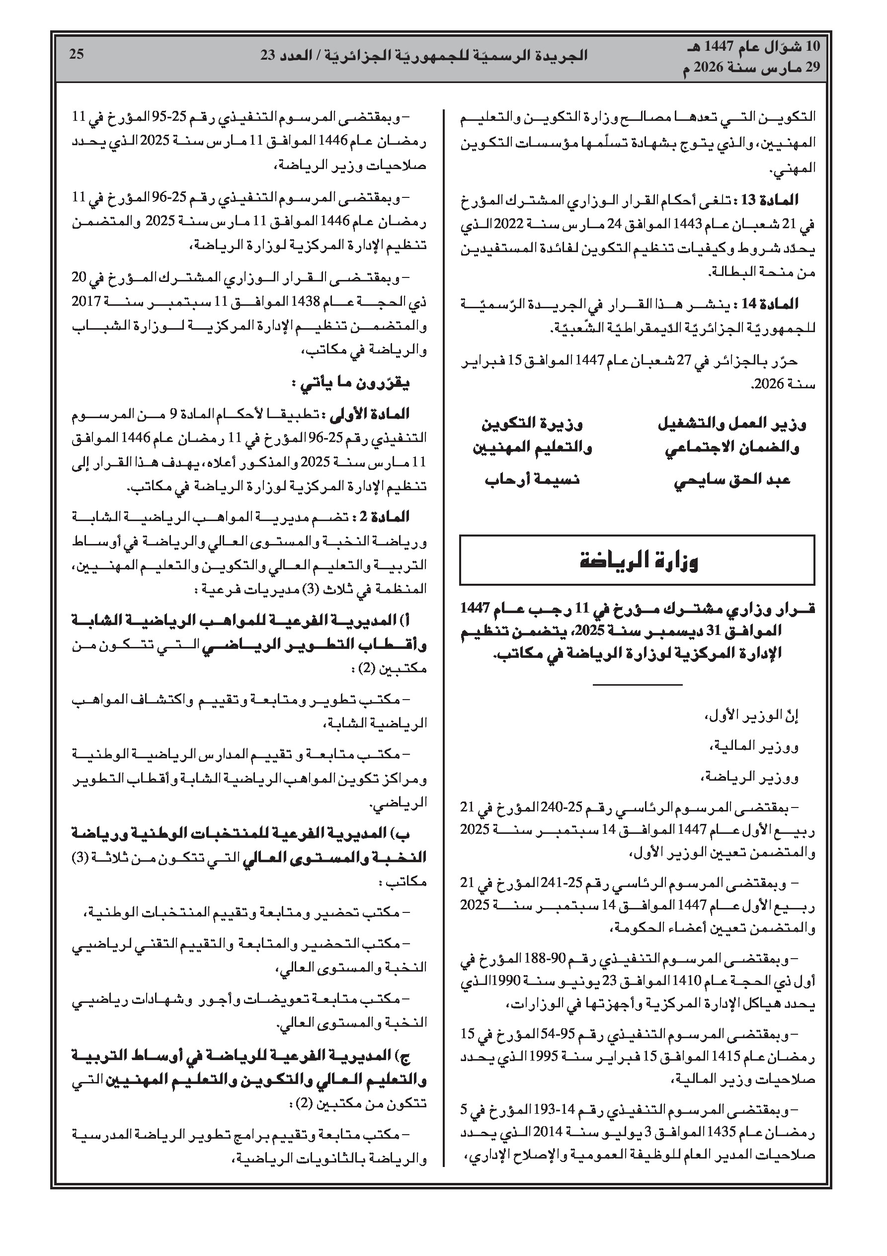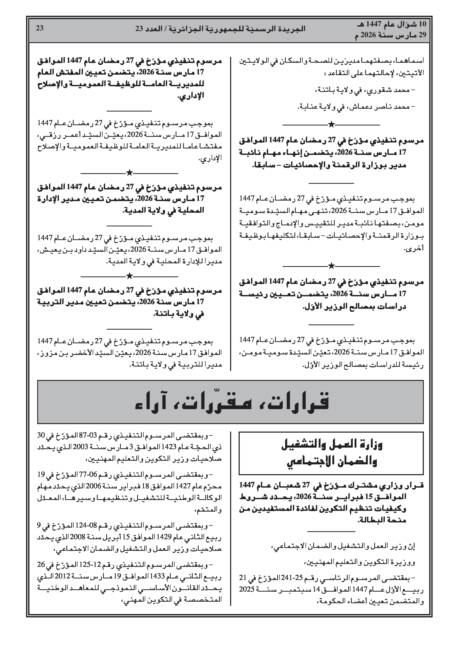 العدد 23 الأمانة العامة للحكومة الجزائرية