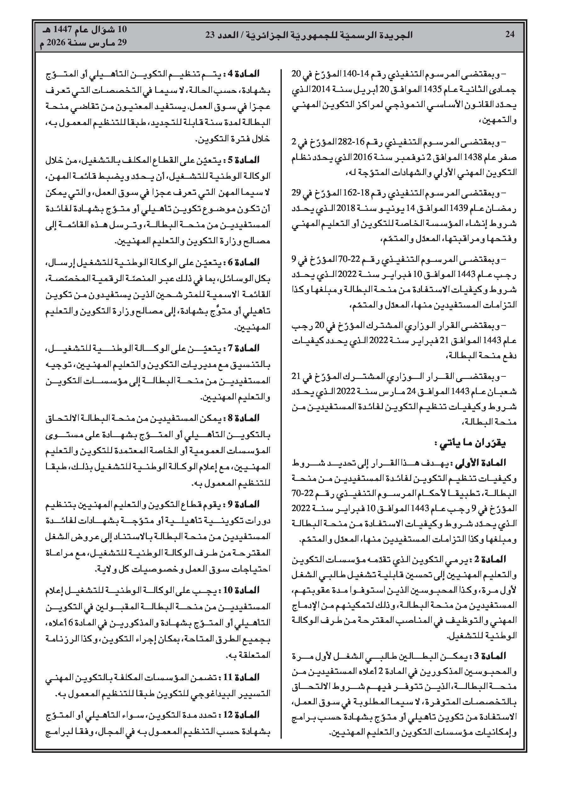 شروط وكيفيات جديدة لتنظيم التكوين التأهيلي لفائدة طالبي العمل لأول مرة والمستفيدين من منحة البطالة.