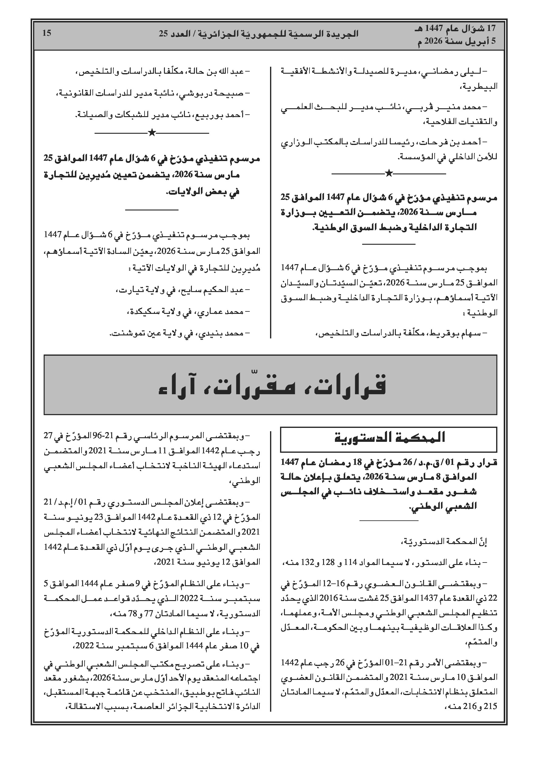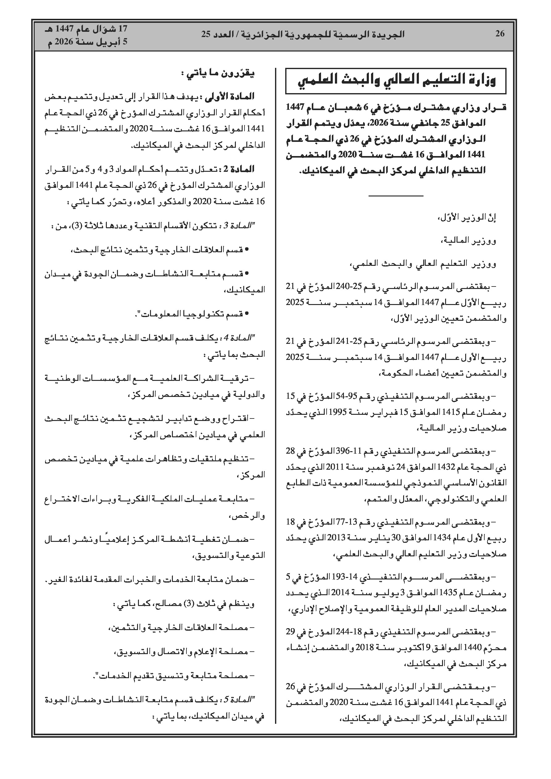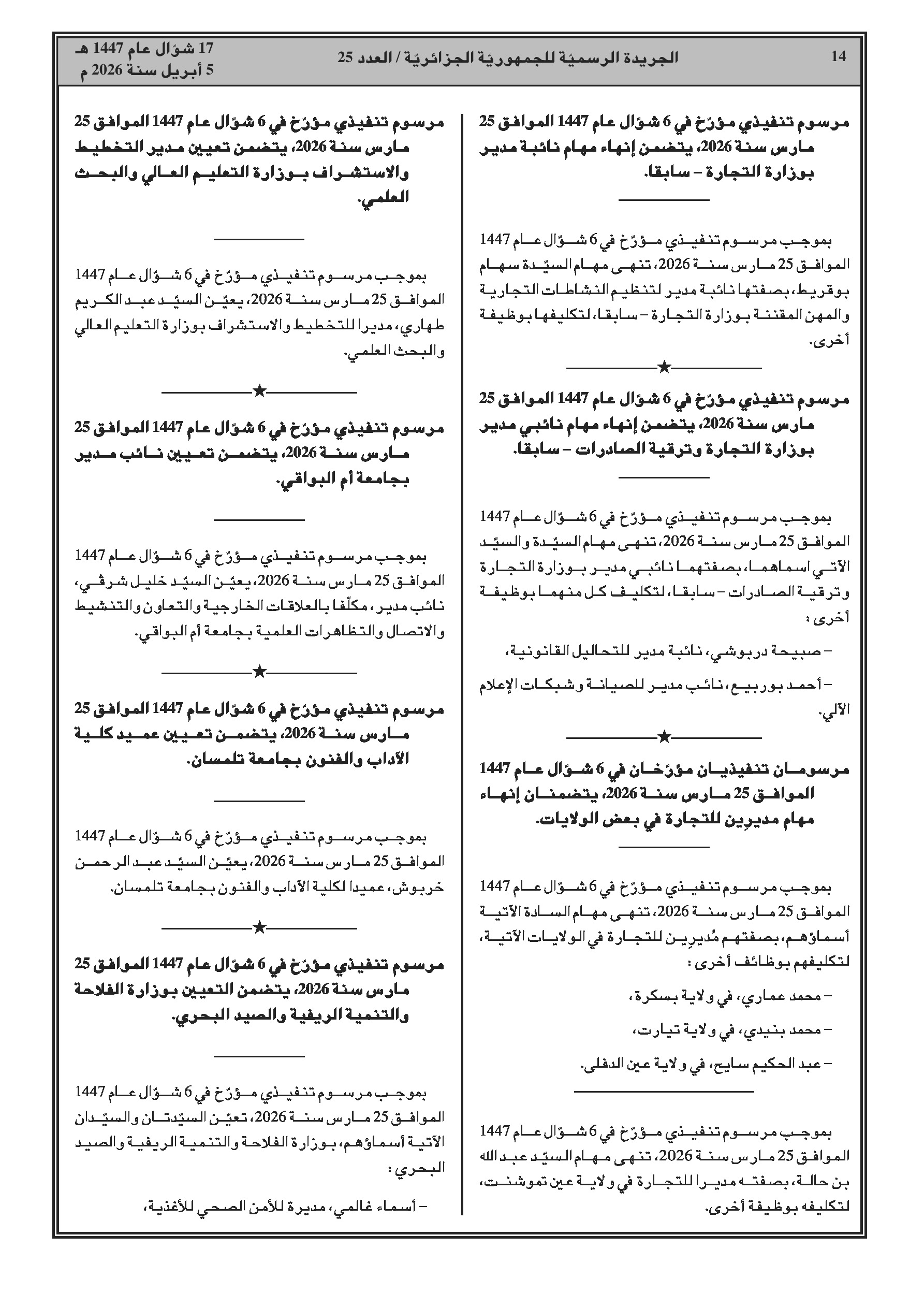 العدد 25 الأمانة العامة للحكومة الجزائرية