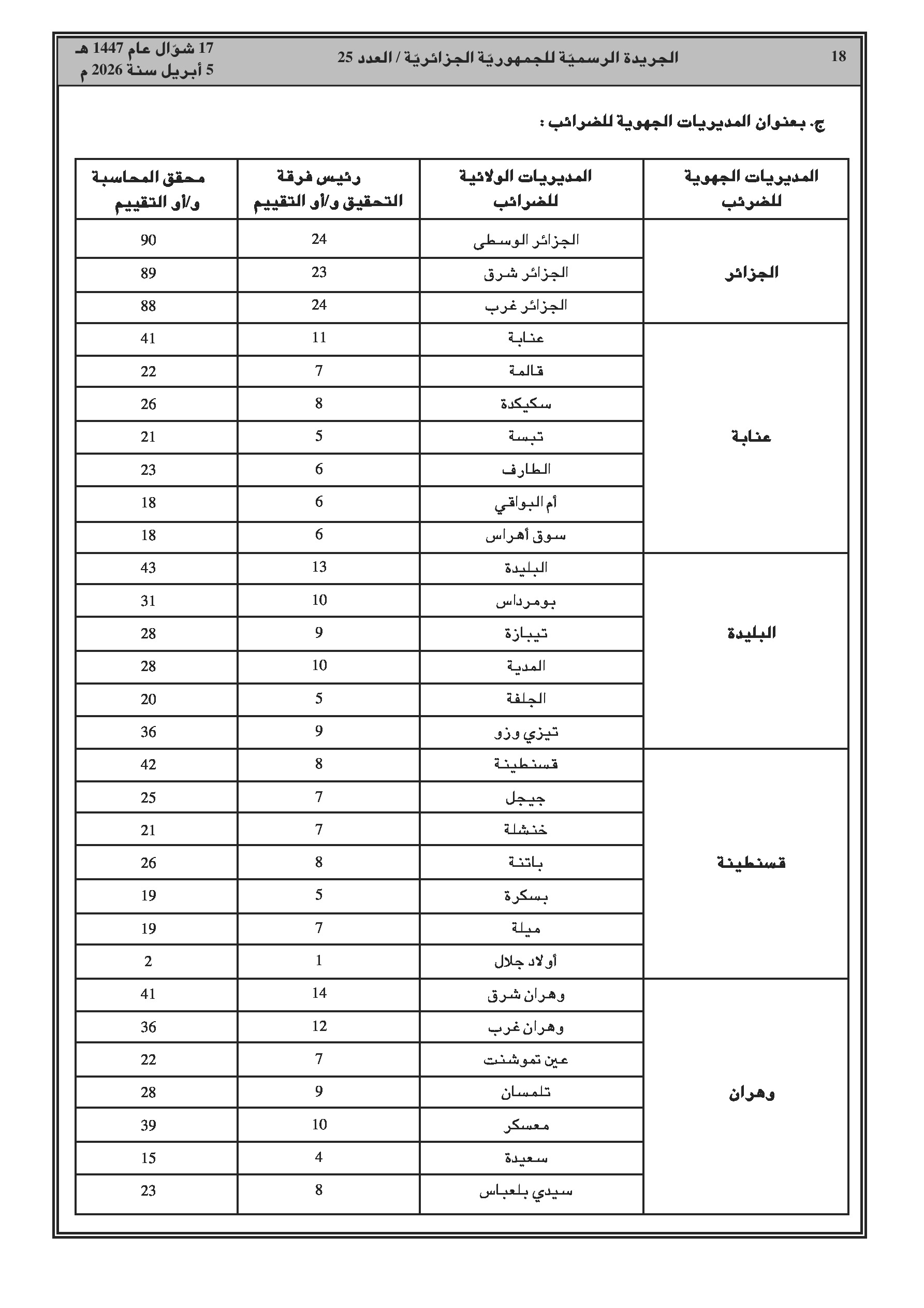 - استحداث وضبط مهام مديريات فرعية جديدة تعنى بالرقمنة، التقييم المالي، والسياسات الجبائية.