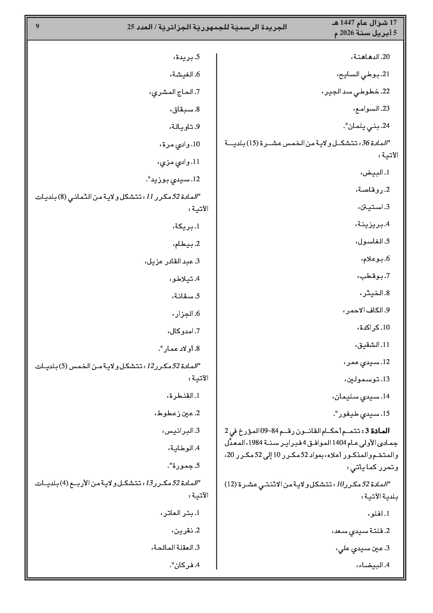 - رفع عدد الولايات إلى 69 ولاية و1541 بلدية.