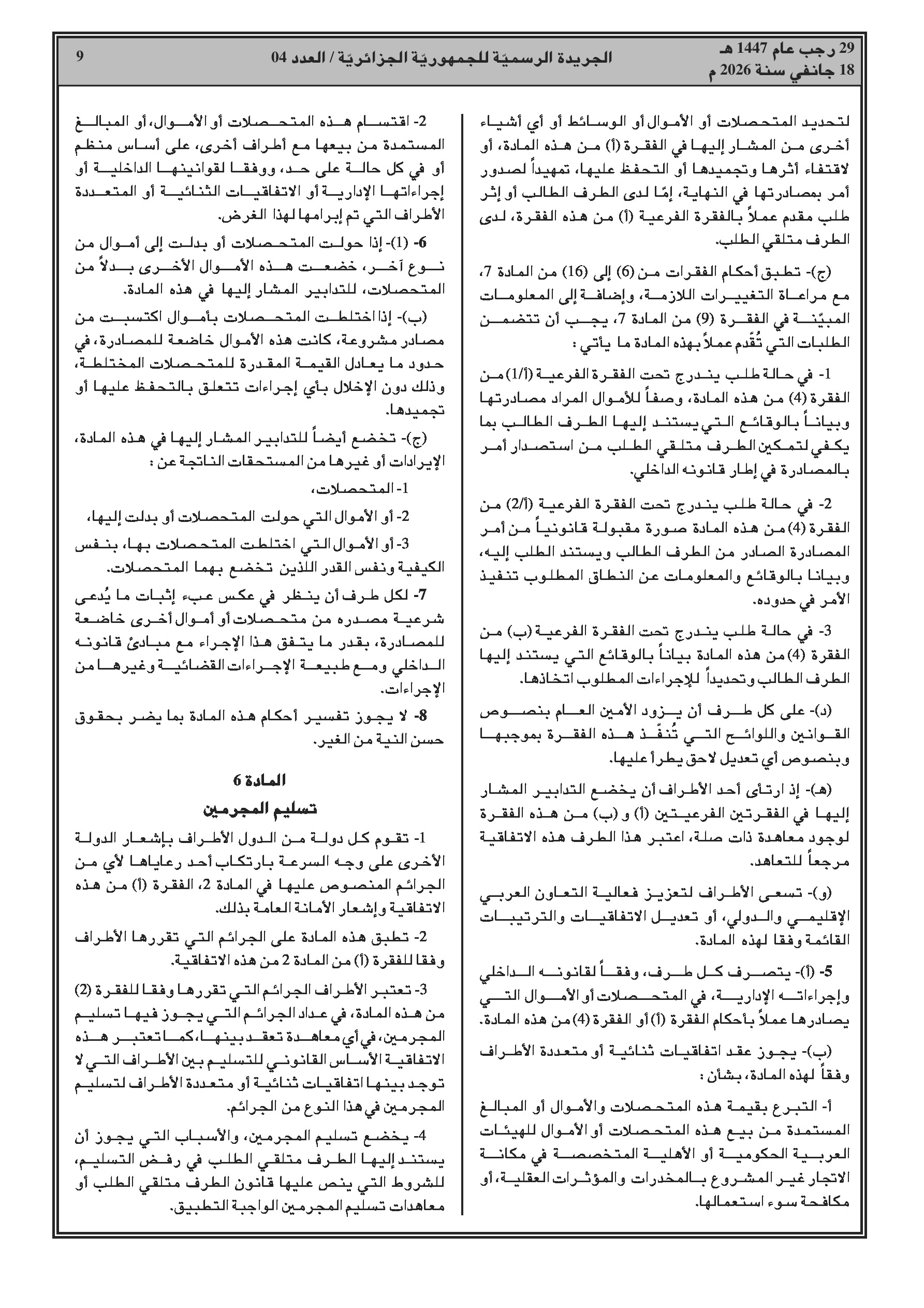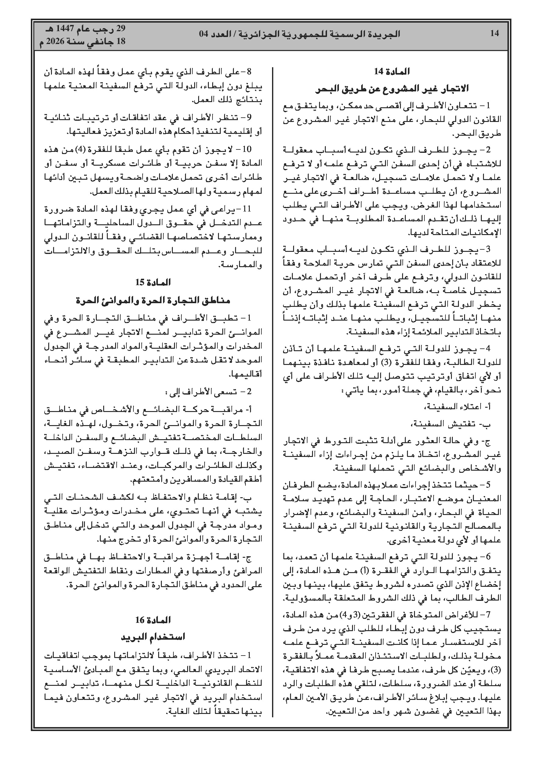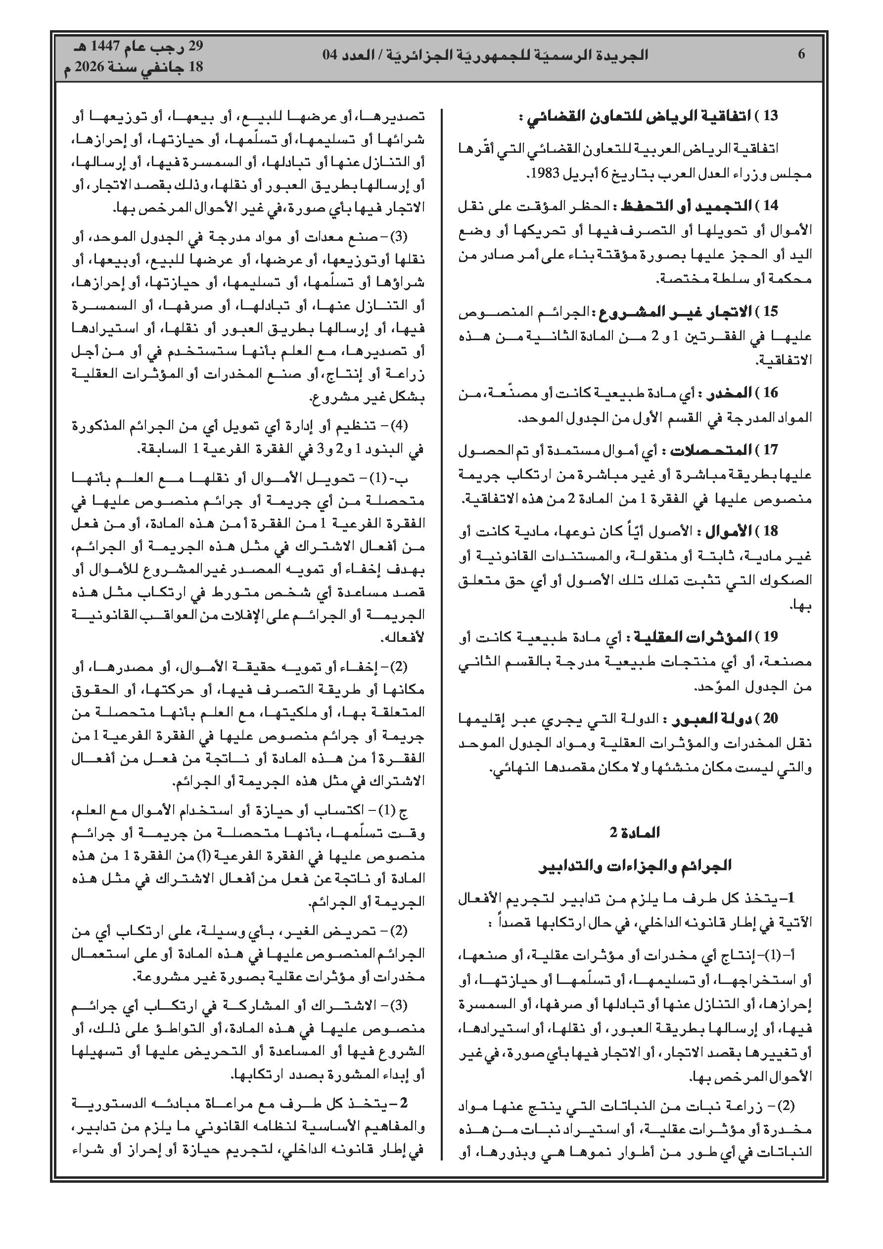 انضمام الجزائر للاتفاقية العربية لمكافحة الاتجار غير المشروع بالمخدرات والمؤثرات العقلية.