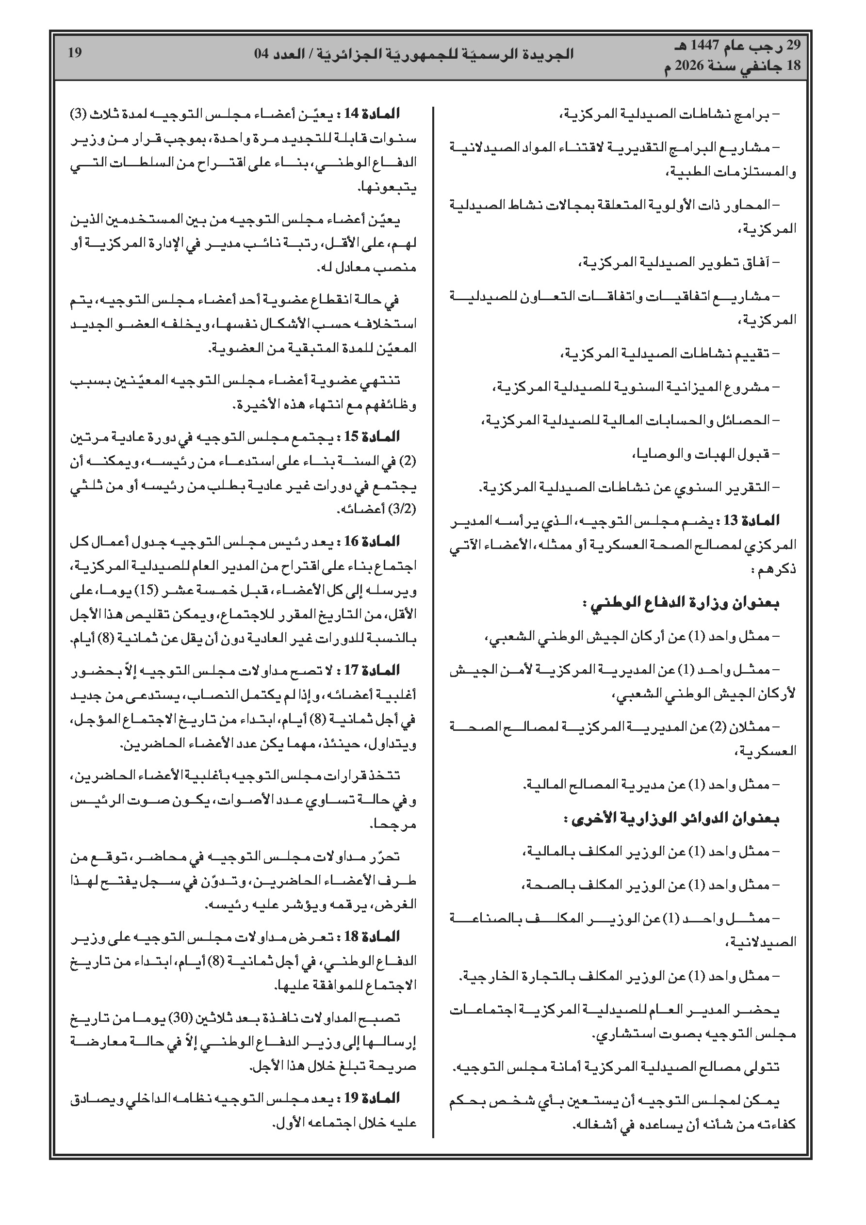 تأسيس مؤسسة عمومية تحت وصاية وزارة الدفاع لتموين الهياكل العسكرية بالأدوية.