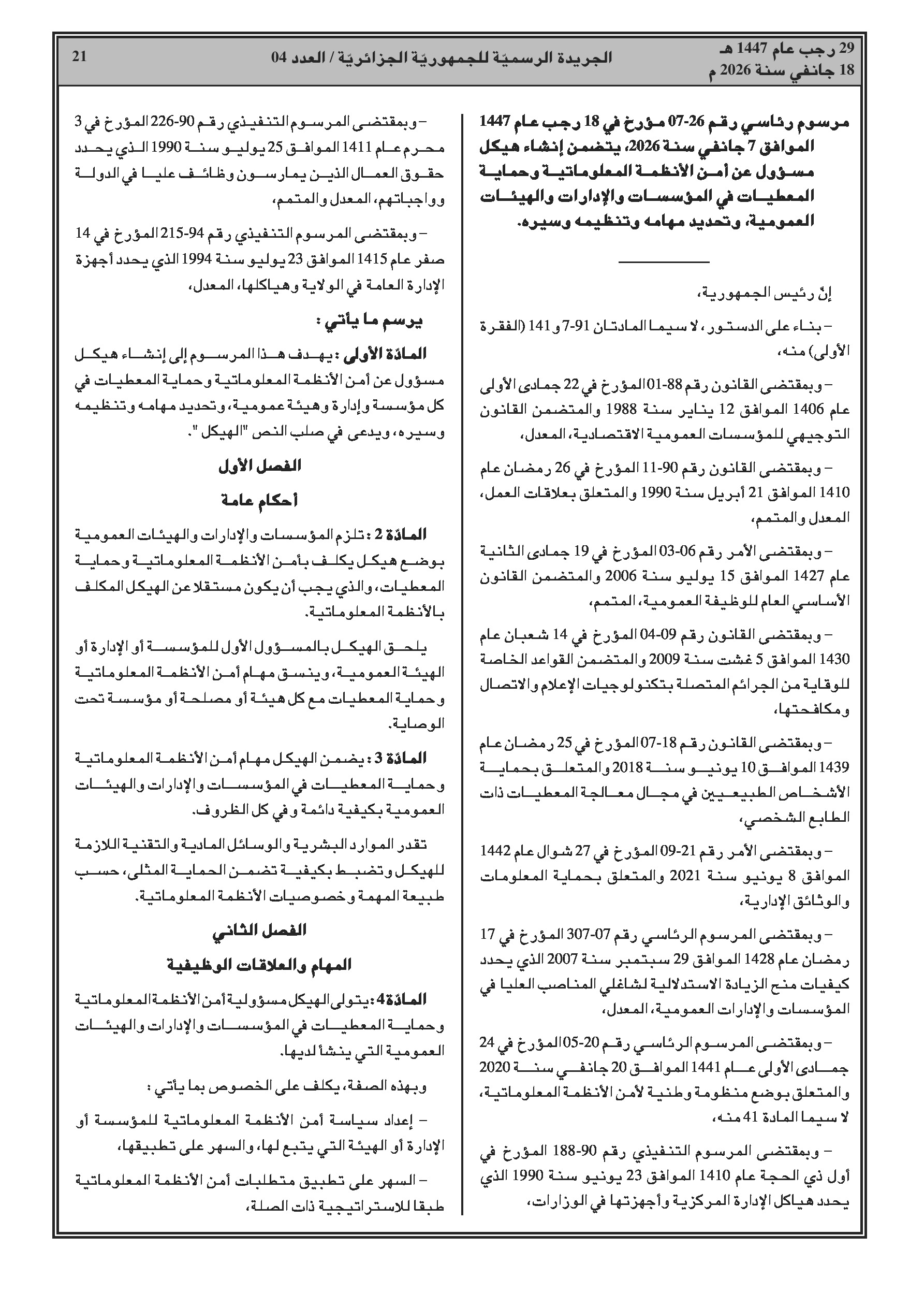 4. هياكل الأمن السيبراني في المؤسسات العمومية