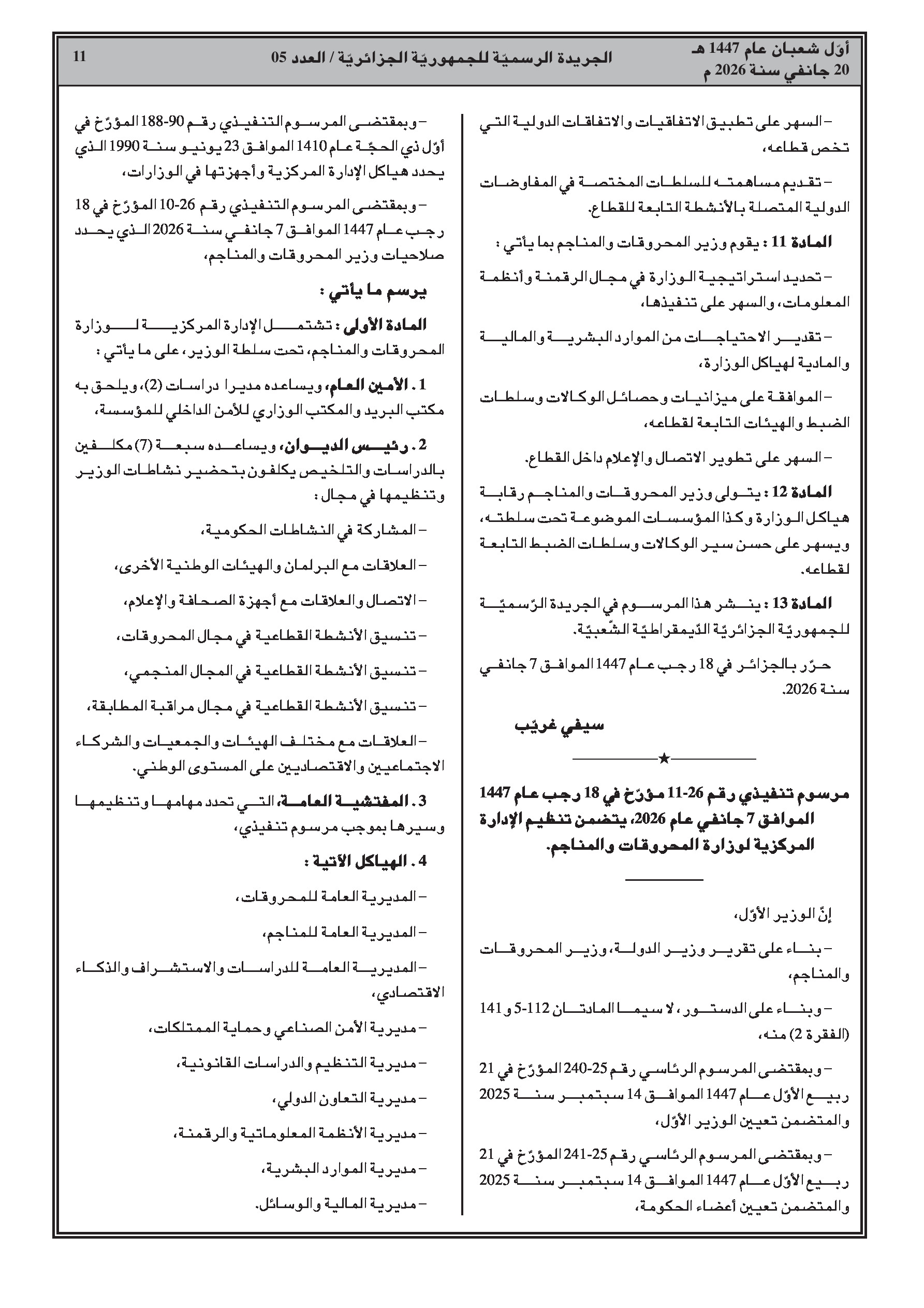مراسيم تنفيذية تحدد مهام الوزير والهيكل التنظيمي للوزارة.