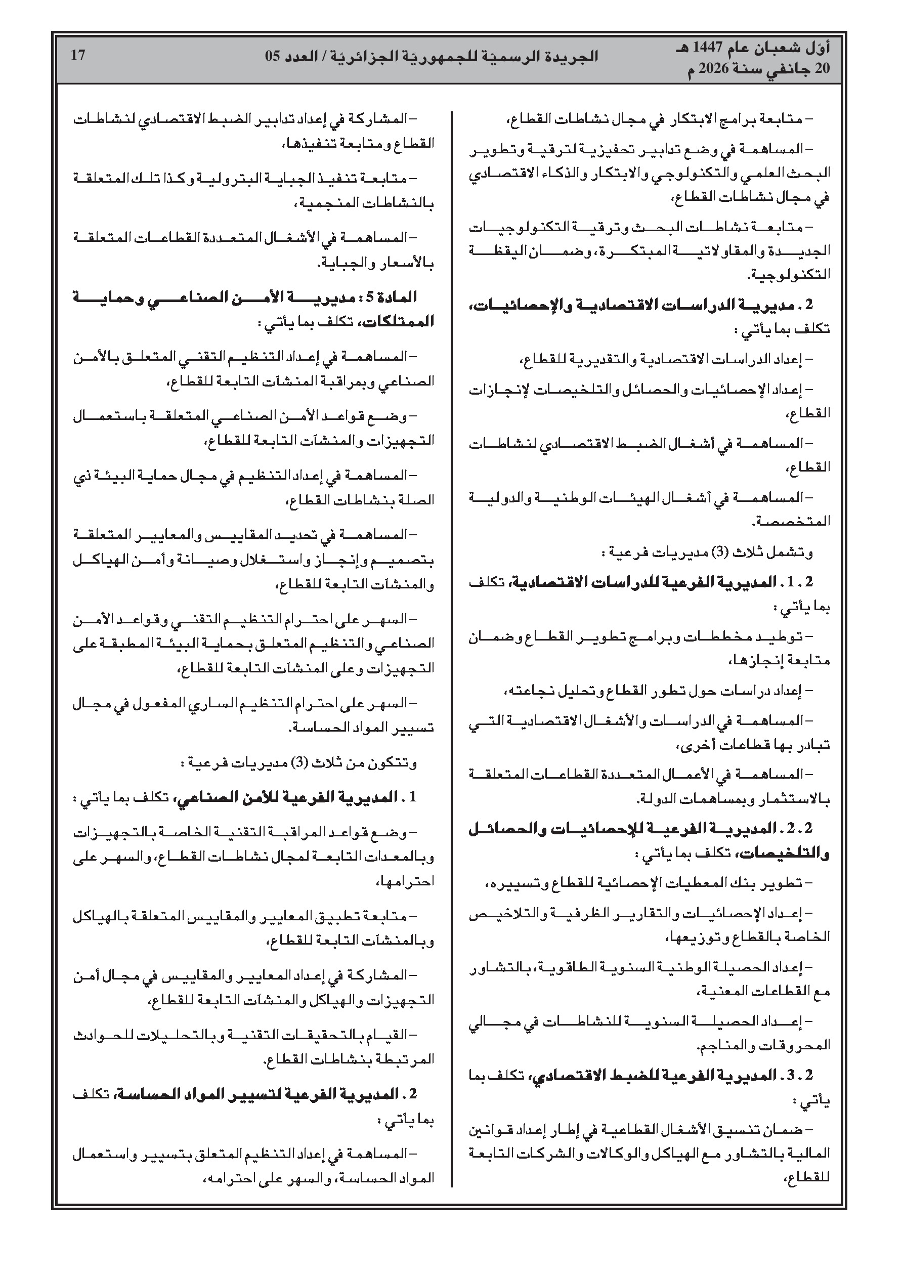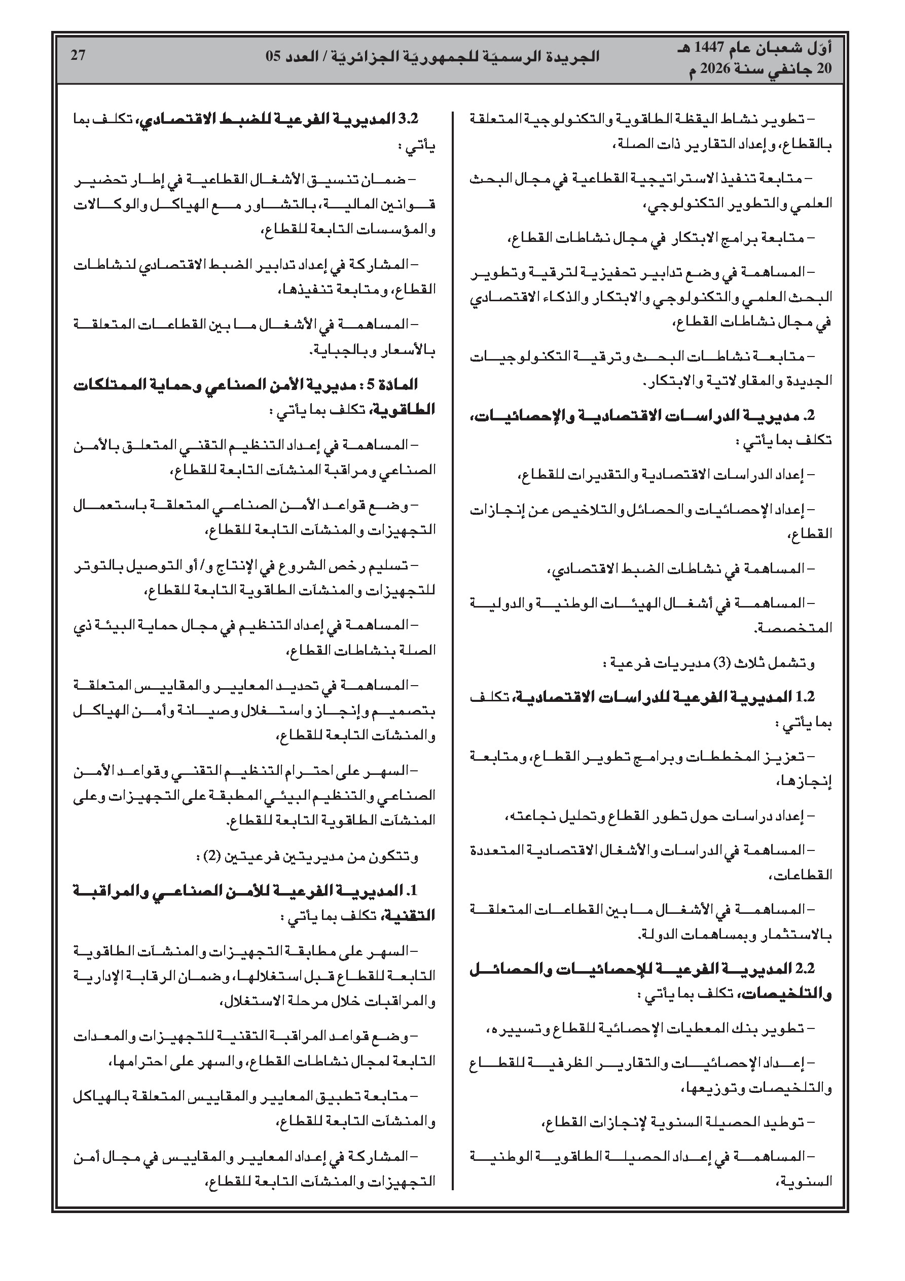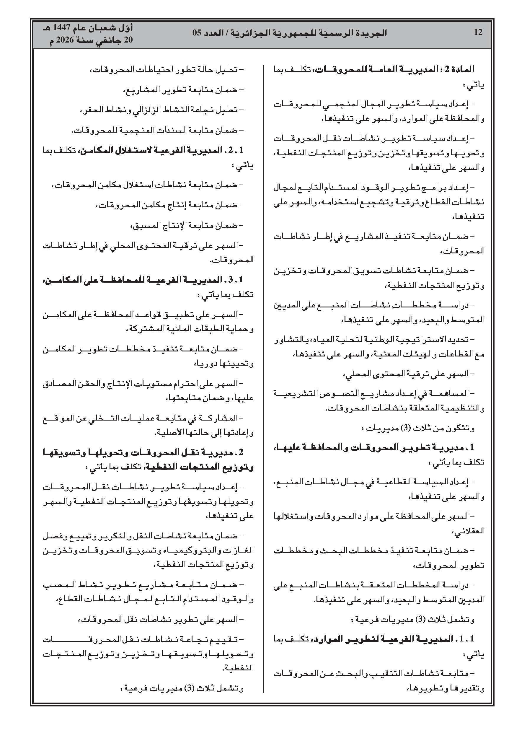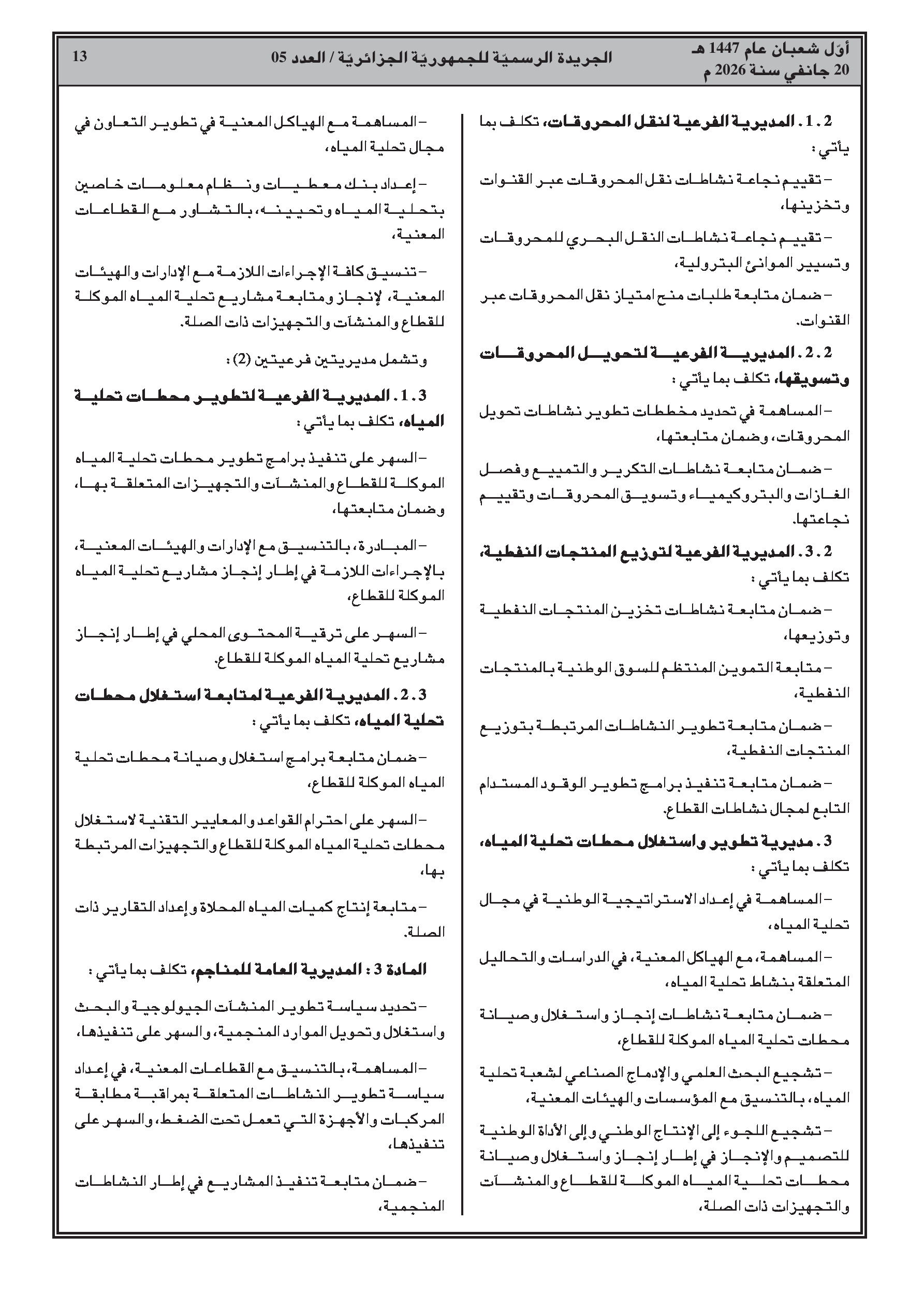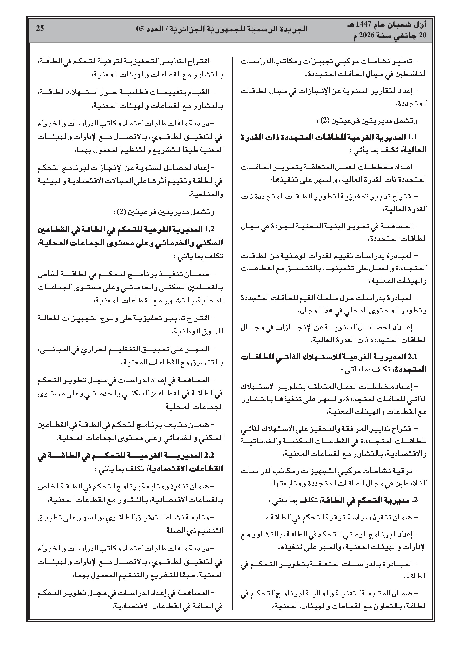 مراسيم تنفيذية تحدد مهام الوزير والهيكل التنظيمي للوزارة مع التركيز على الانتقال الطاقوي.