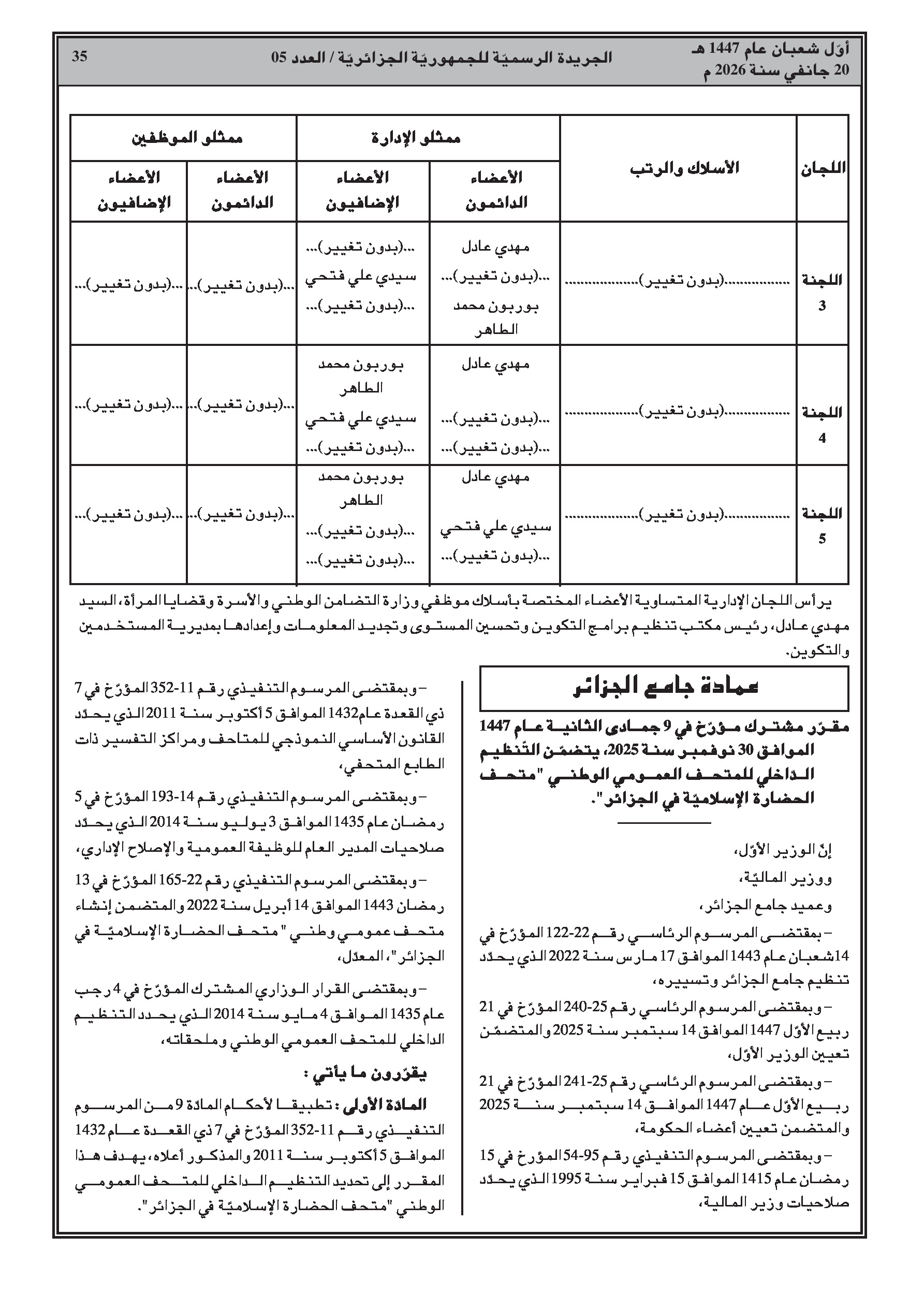 قرار يحدد التنظيم الداخلي للمتحف التابع لجامع الجزائر.