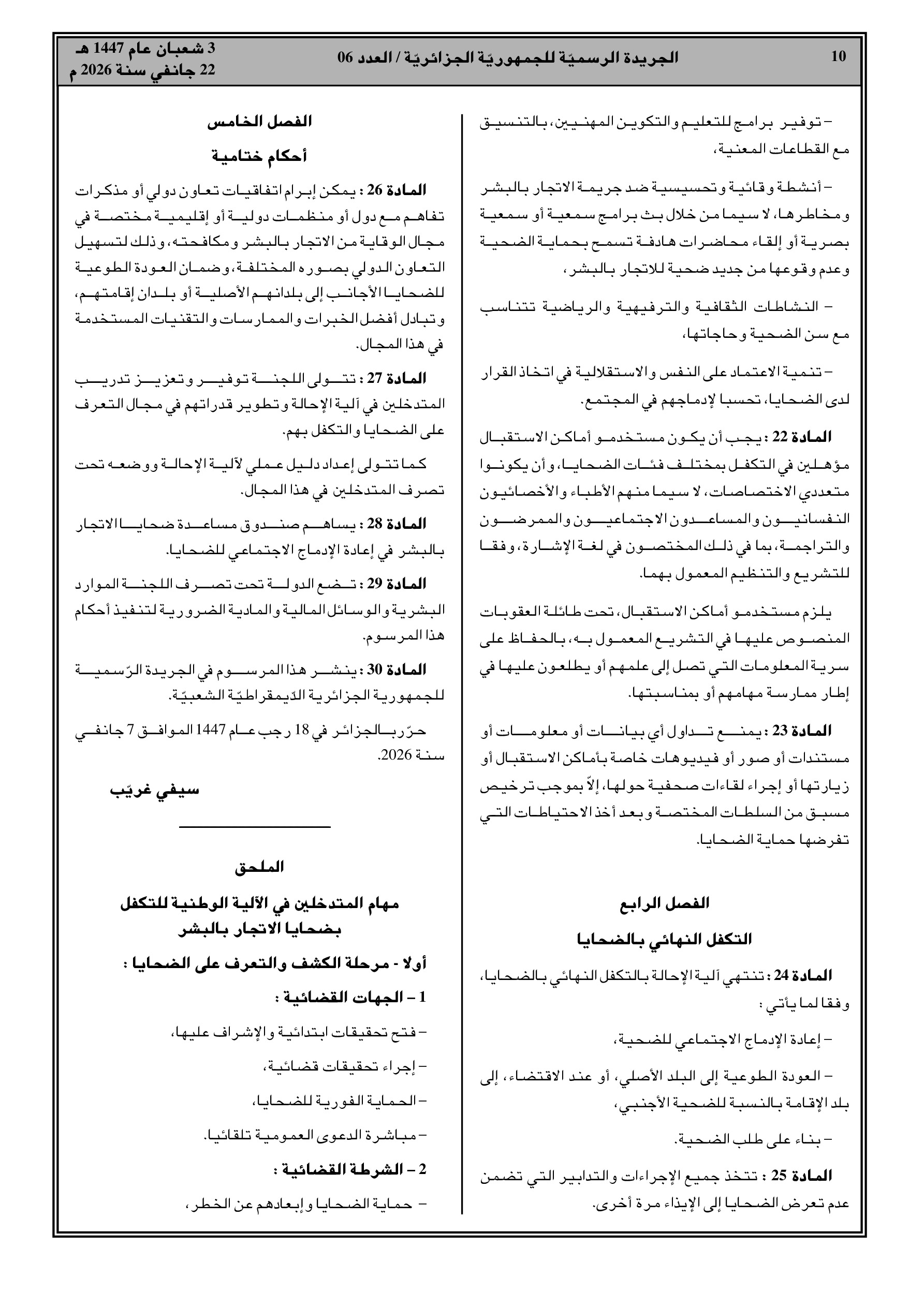 5. آلية وطنية للتكفل بضحايا الاتجار بالبشر