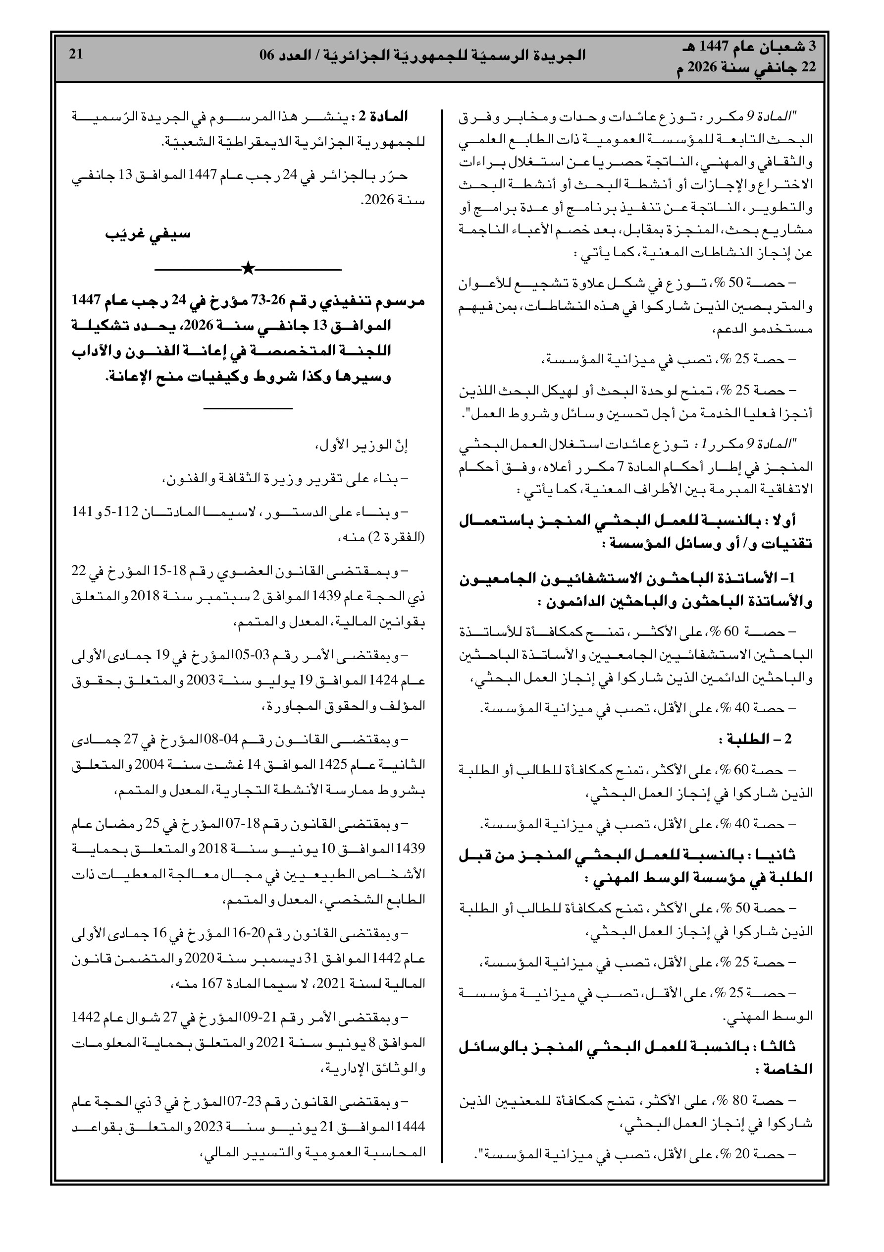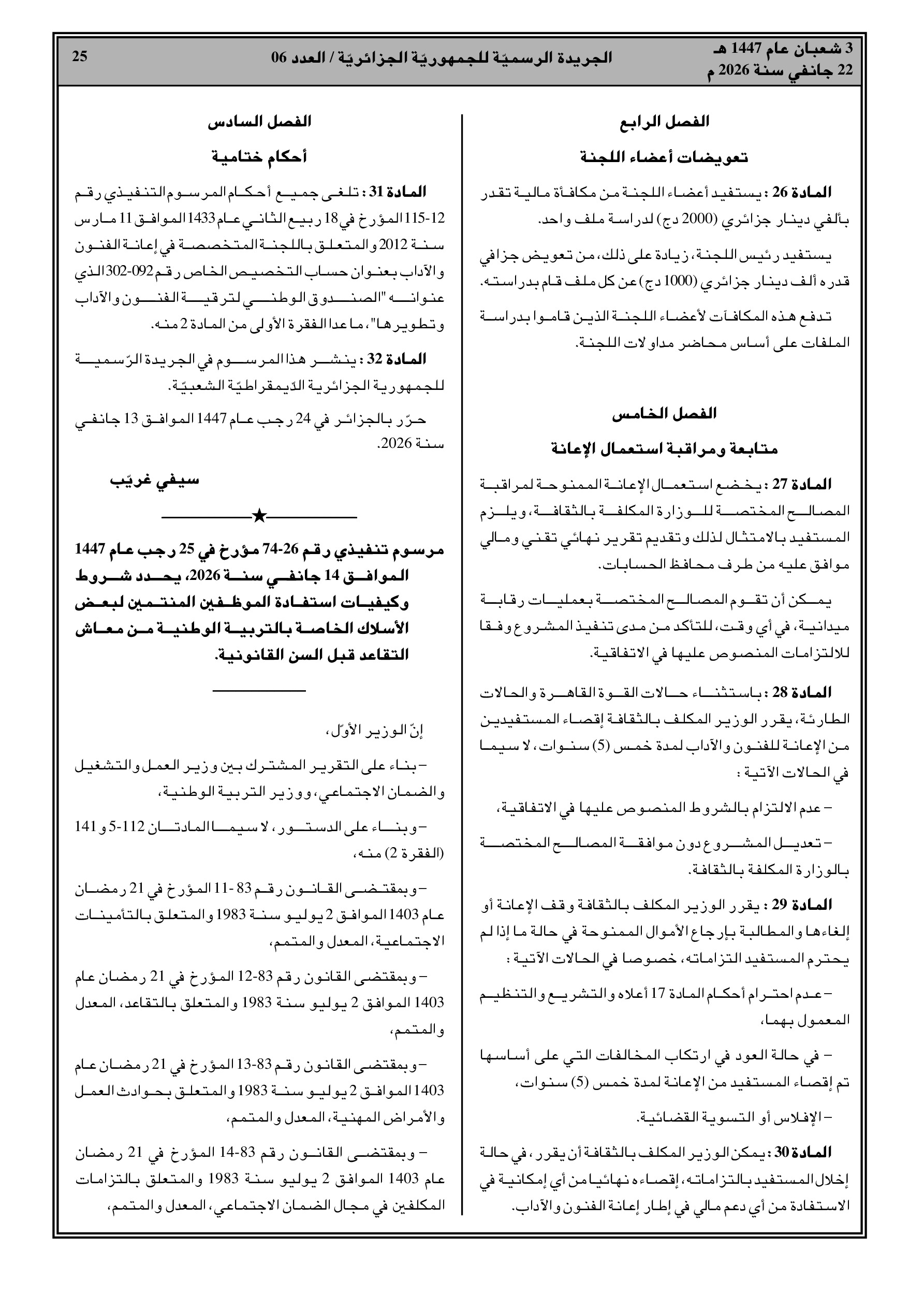 تحديد مبلغ المنحة بـ 18.000 دج واستفادة المعنيين من بطاقة الشفاء.
