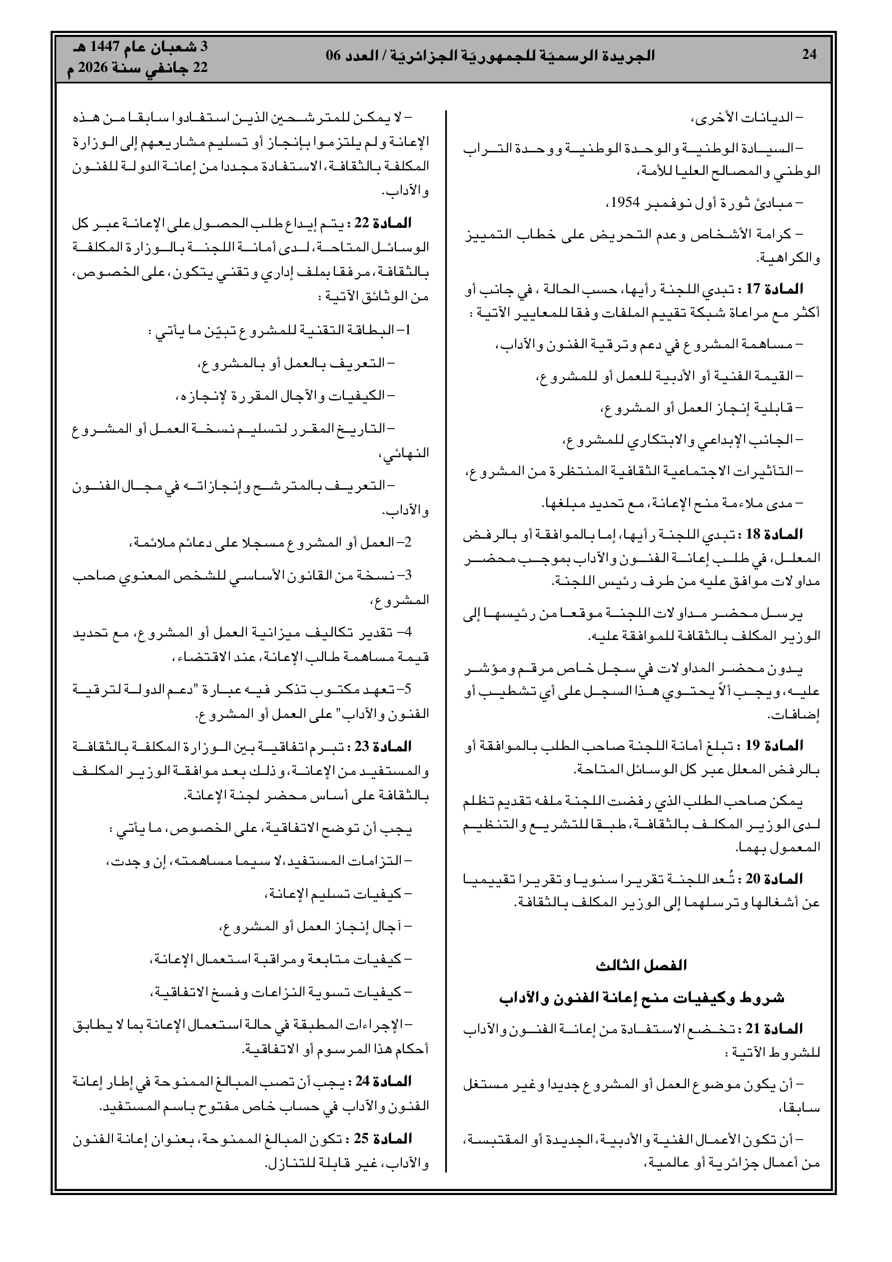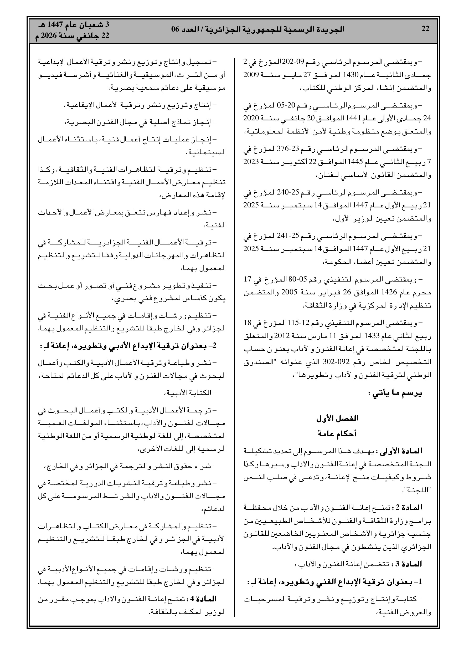 تنظيم وشروط منح الدعم العمومي للإبداع الفني والأدبي.