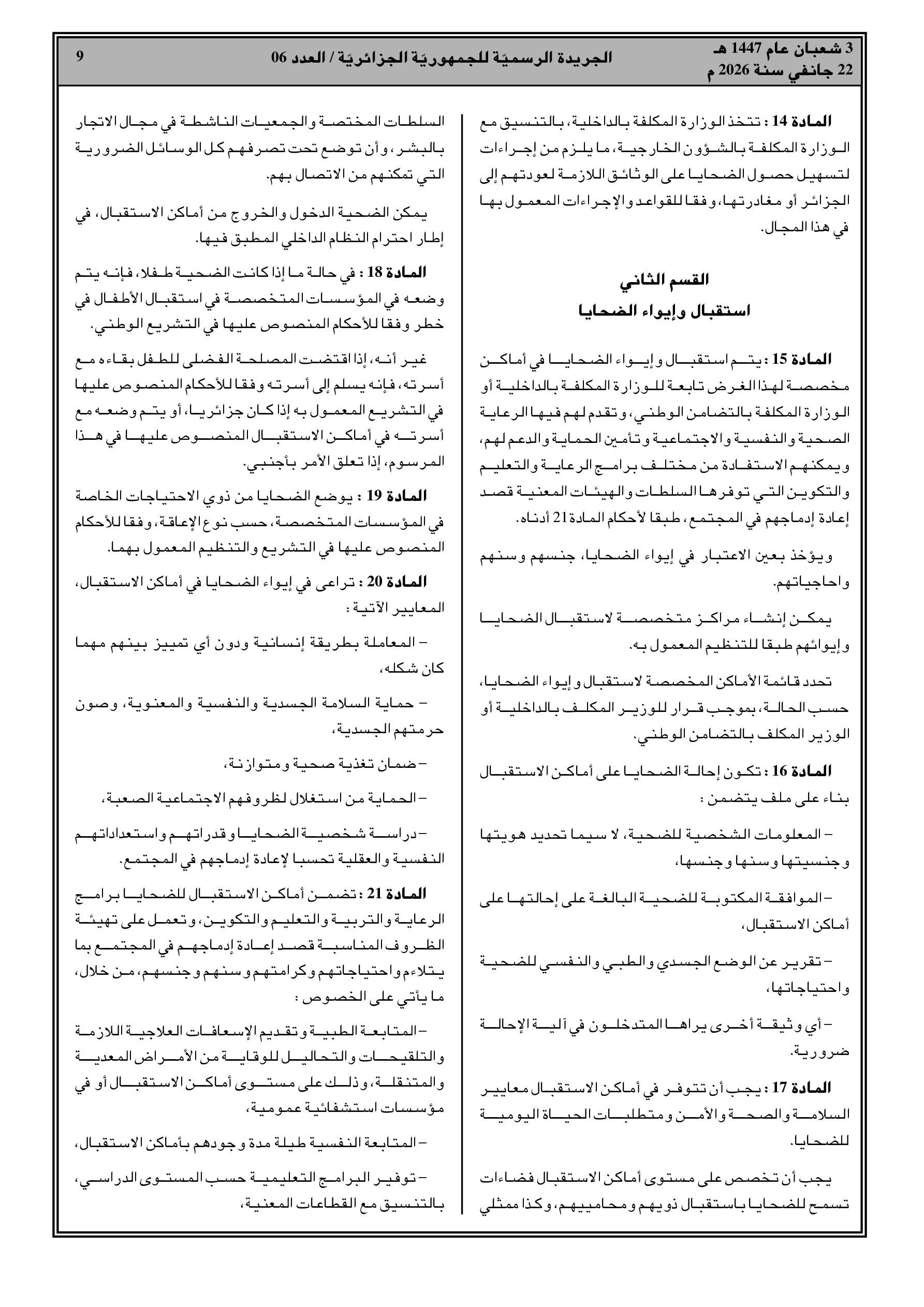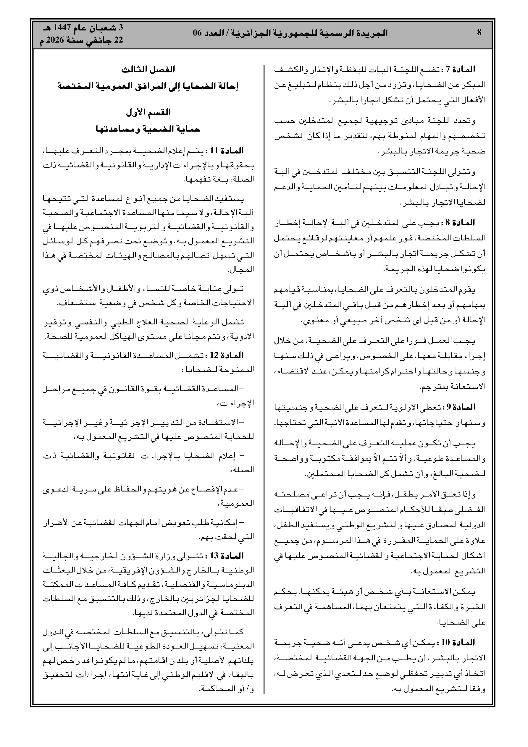 إجراءات جديدة لحماية ومساعدة ضحايا الاتجار بالبشر وإعادة إدماجهم.