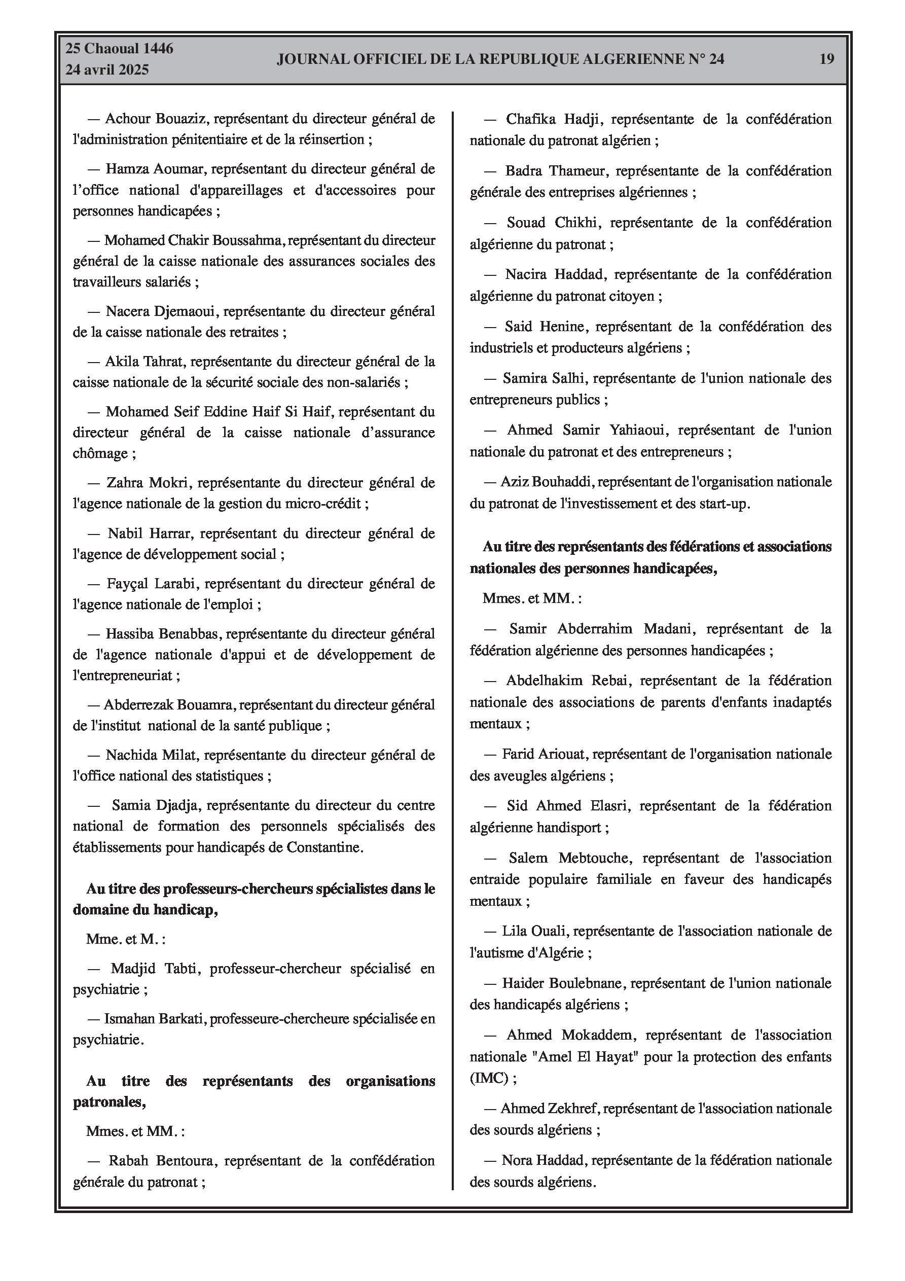 12. Nomination des Membres du Conseil National des Personnes ayant des Besoins Spécifiques