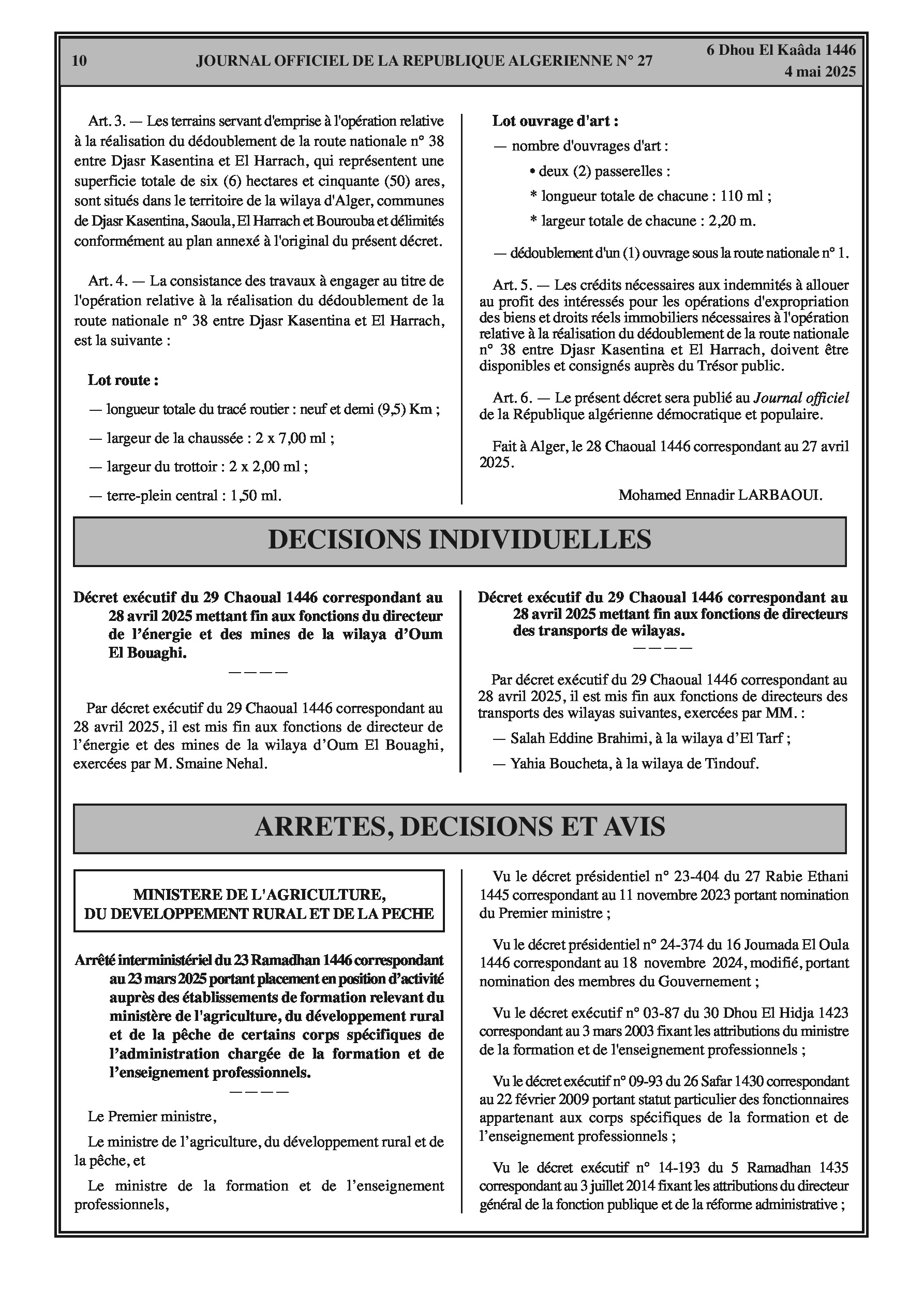 4. Fin de Fonctions du Directeur de l'Énergie et des Mines d'Oum El Bouaghi