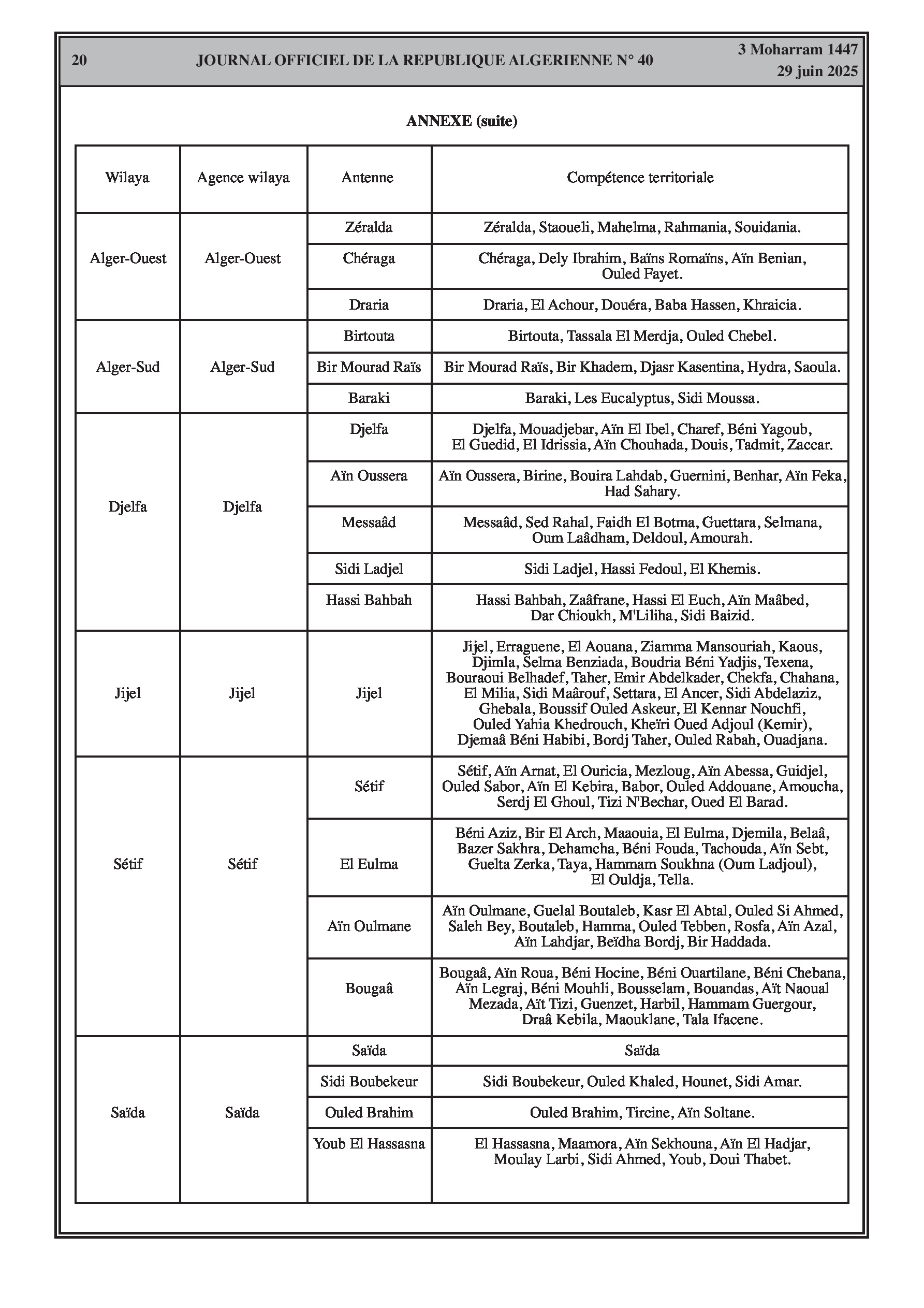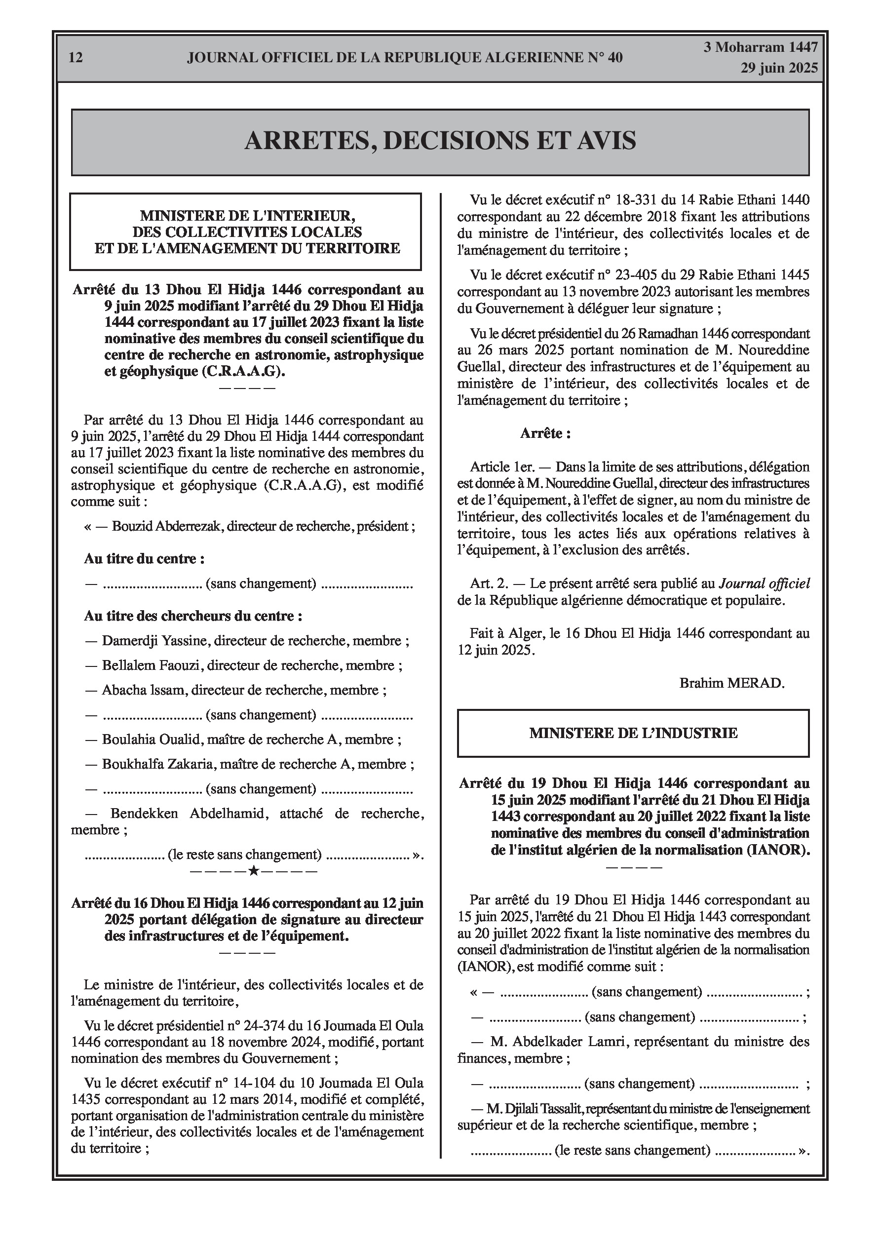 L'arrêté définit l'organisation interne de l'Agence nationale d'appui et de développement de l'entrepreneuriat, détaillant ses structures centrales et locales ainsi que ses missions. Les listes des membres des conseils d'administration de l'Institut algérien de la normalisation (IANOR) et de l'Office national de l'irrigation et du drainage ont été modifiées, ainsi que le conseil scientifique du Centre de recherche en astronomie, astrophysique et géophysique (CRAAG).
