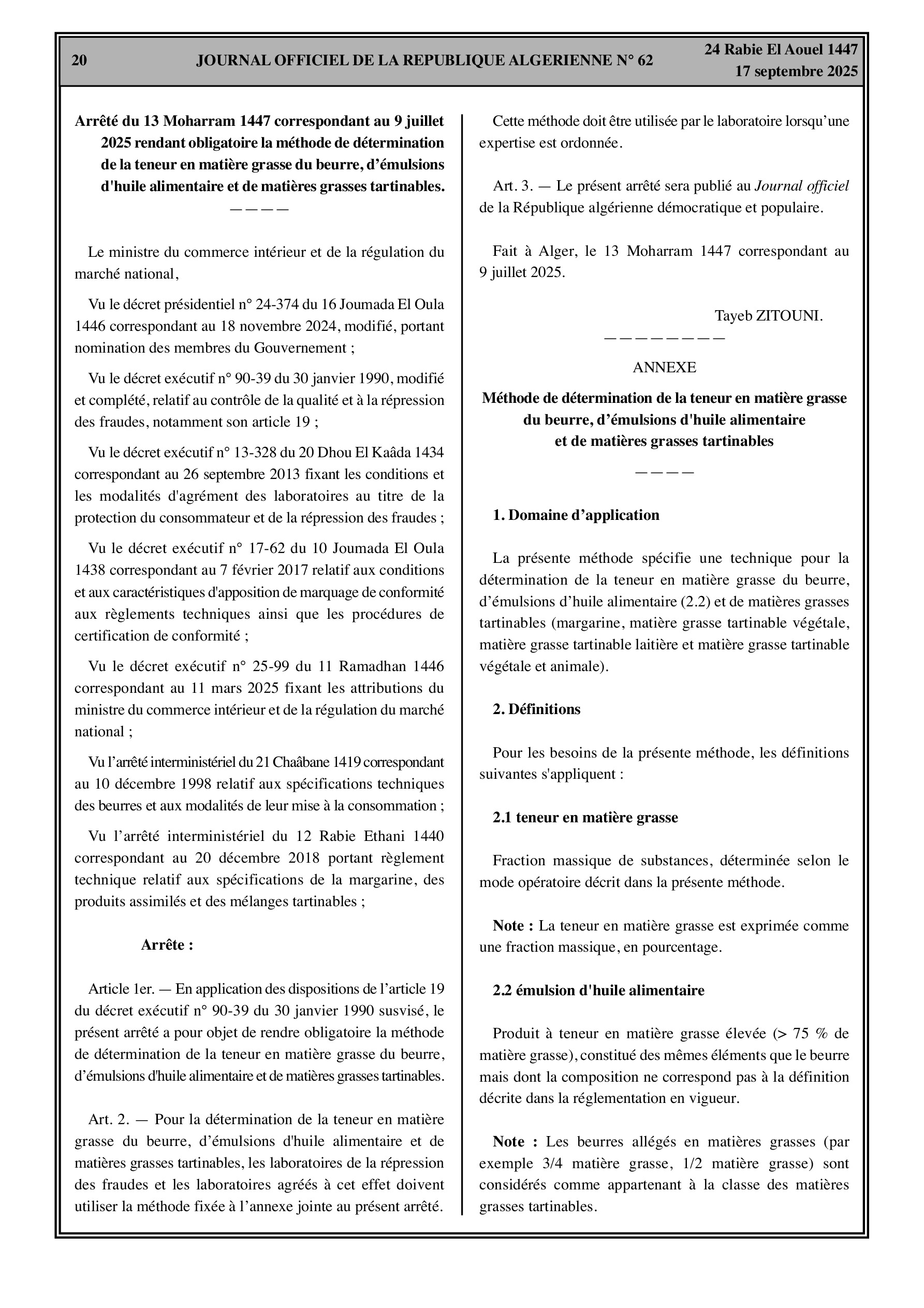 Le ministère du Commerce publie plusieurs arrêtés rendant obligatoires des méthodes d'analyse spécifiques pour garantir la qualité des produits alimentaires sur le marché. Ces mesures visent à unifier les normes de contrôle et à protéger la santé des consommateurs.