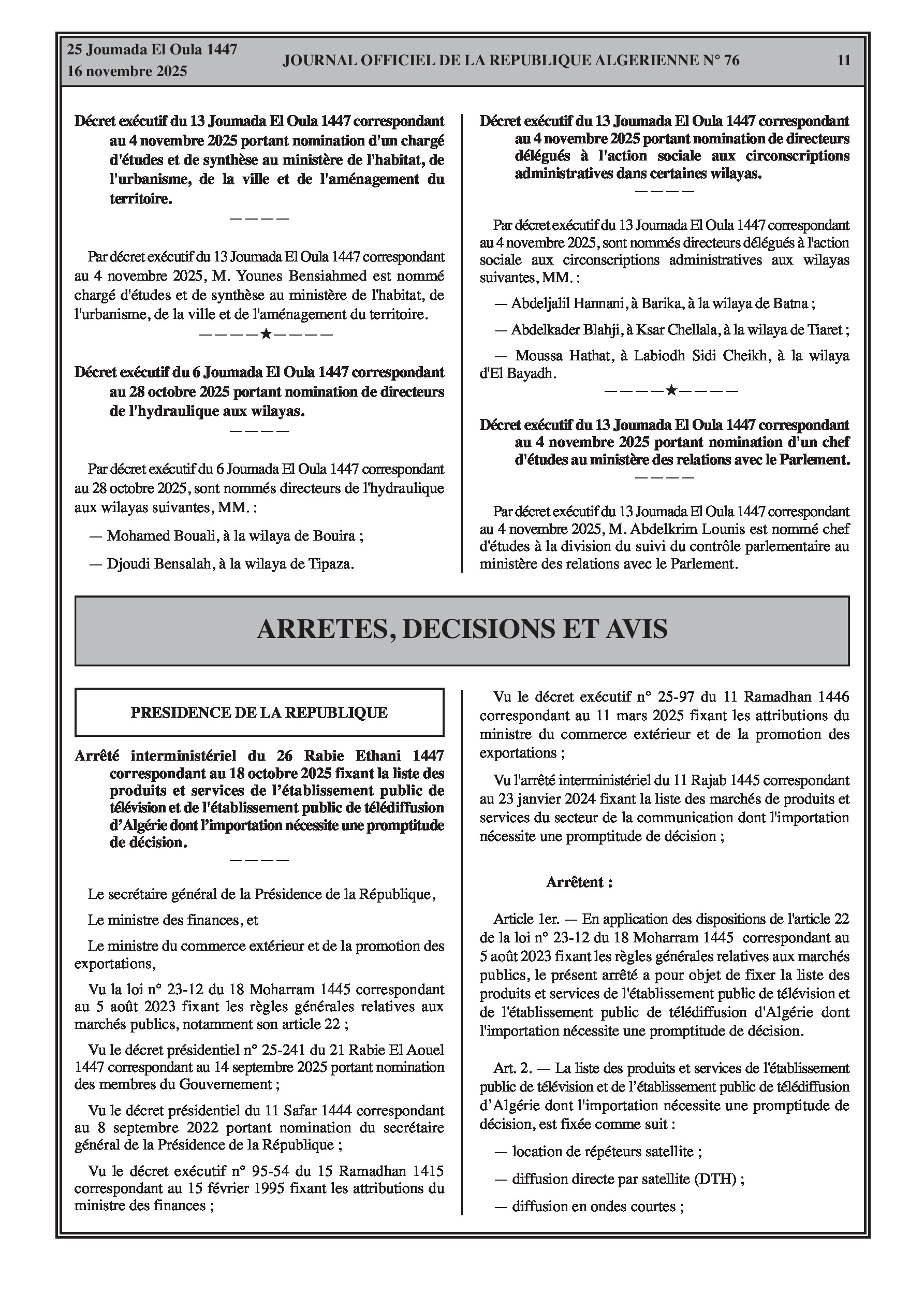 Recevez les dernières actualités du Journal Officiel Algérien dès sa parution