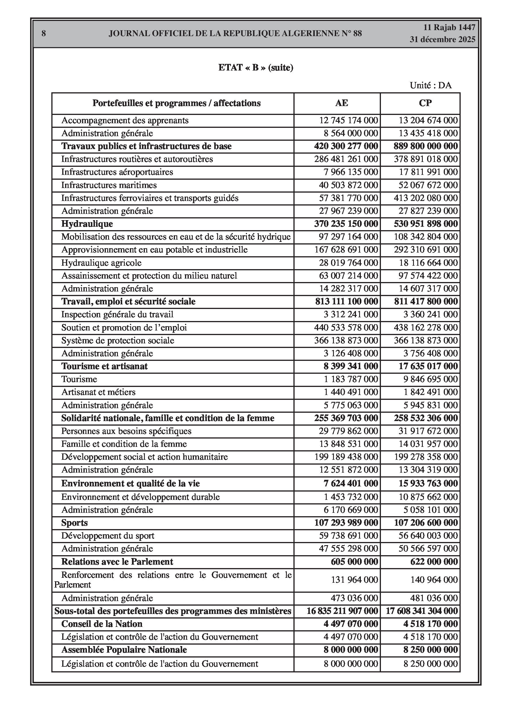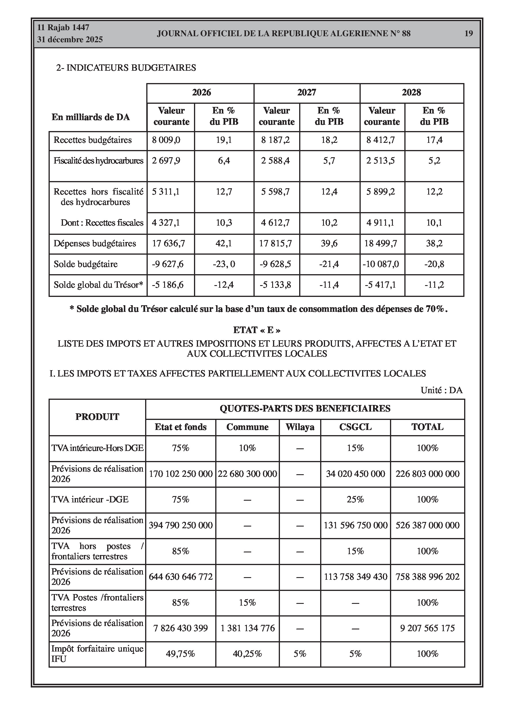 Dépenses budgétaires : 17636 milliards DA.