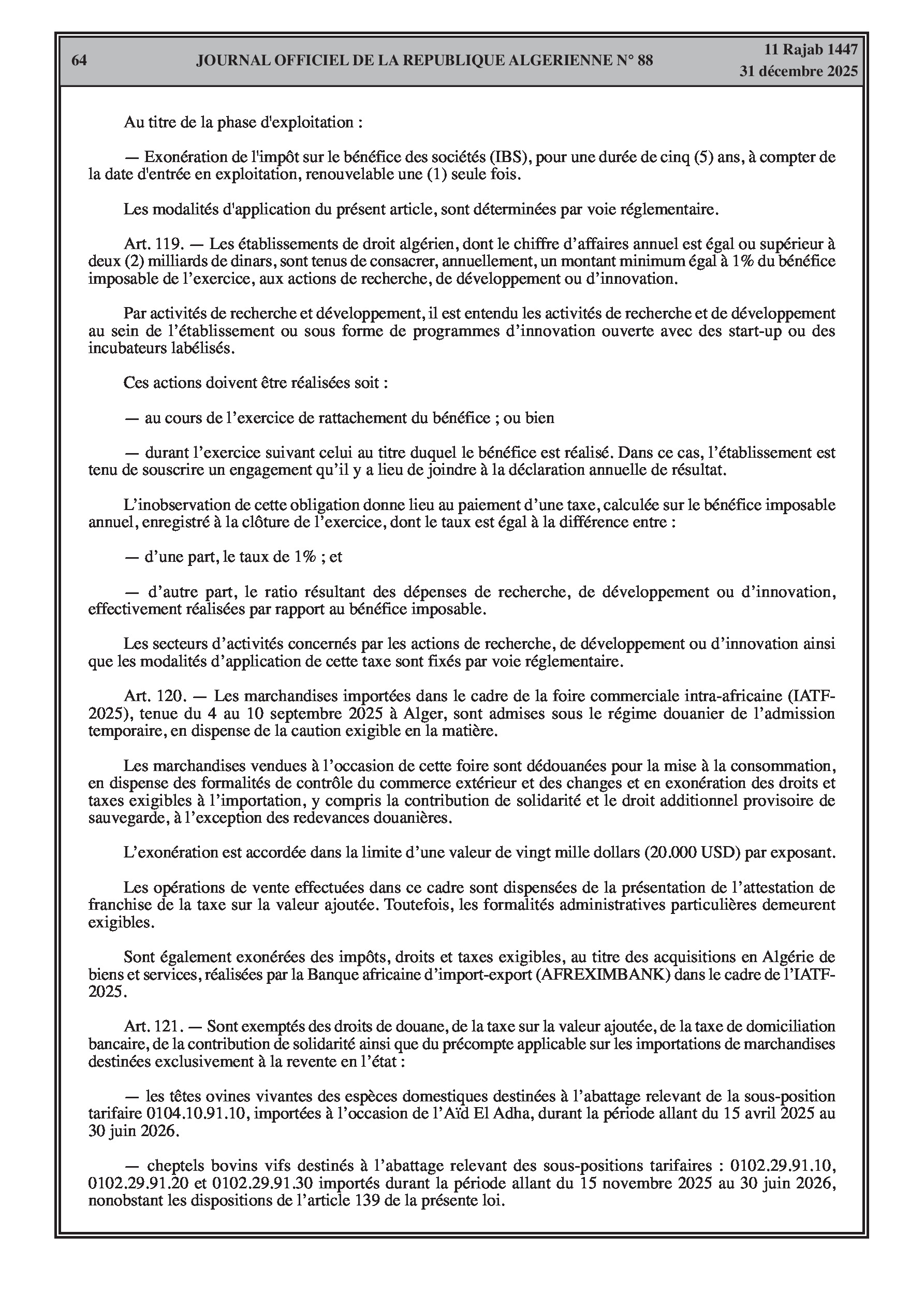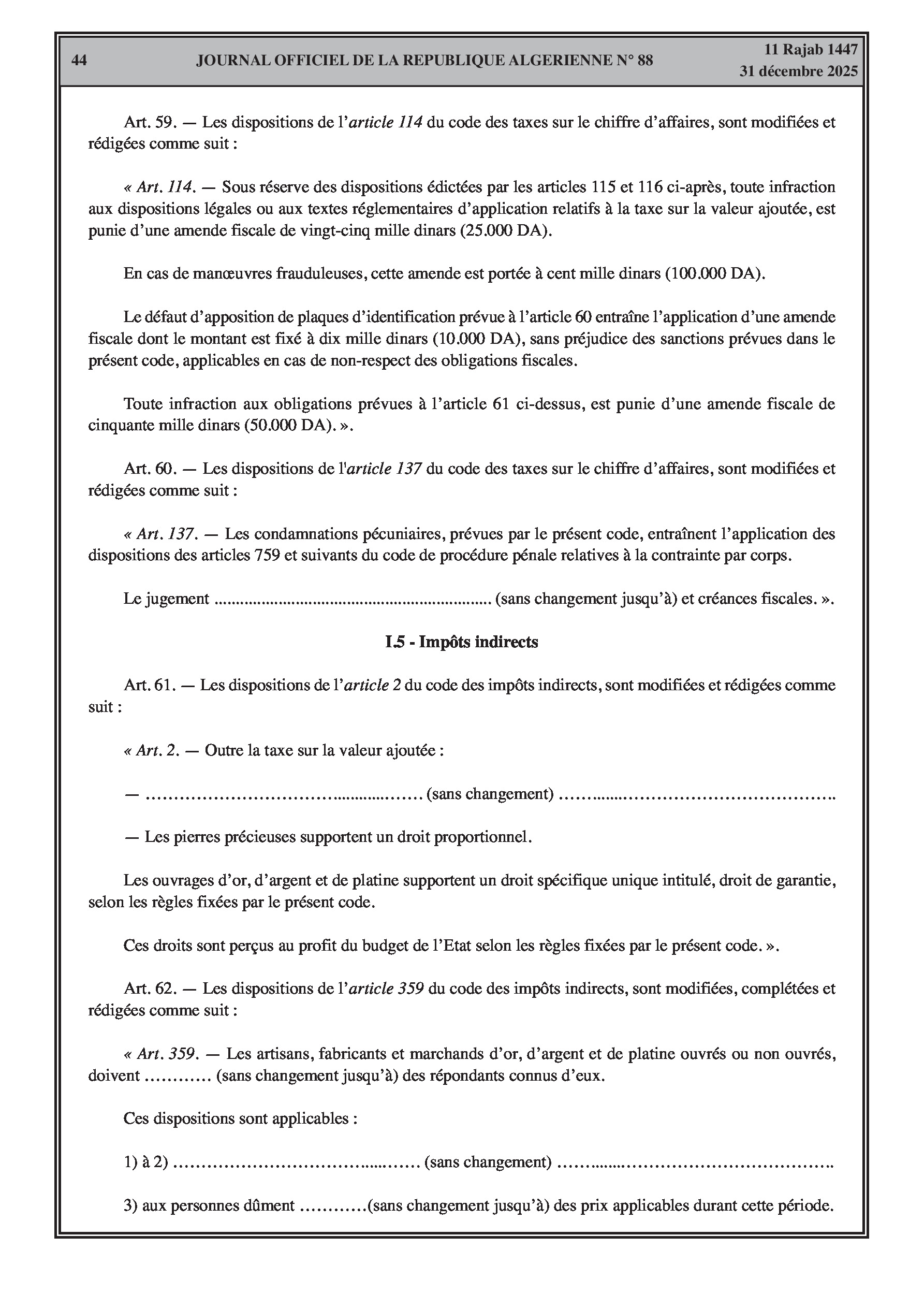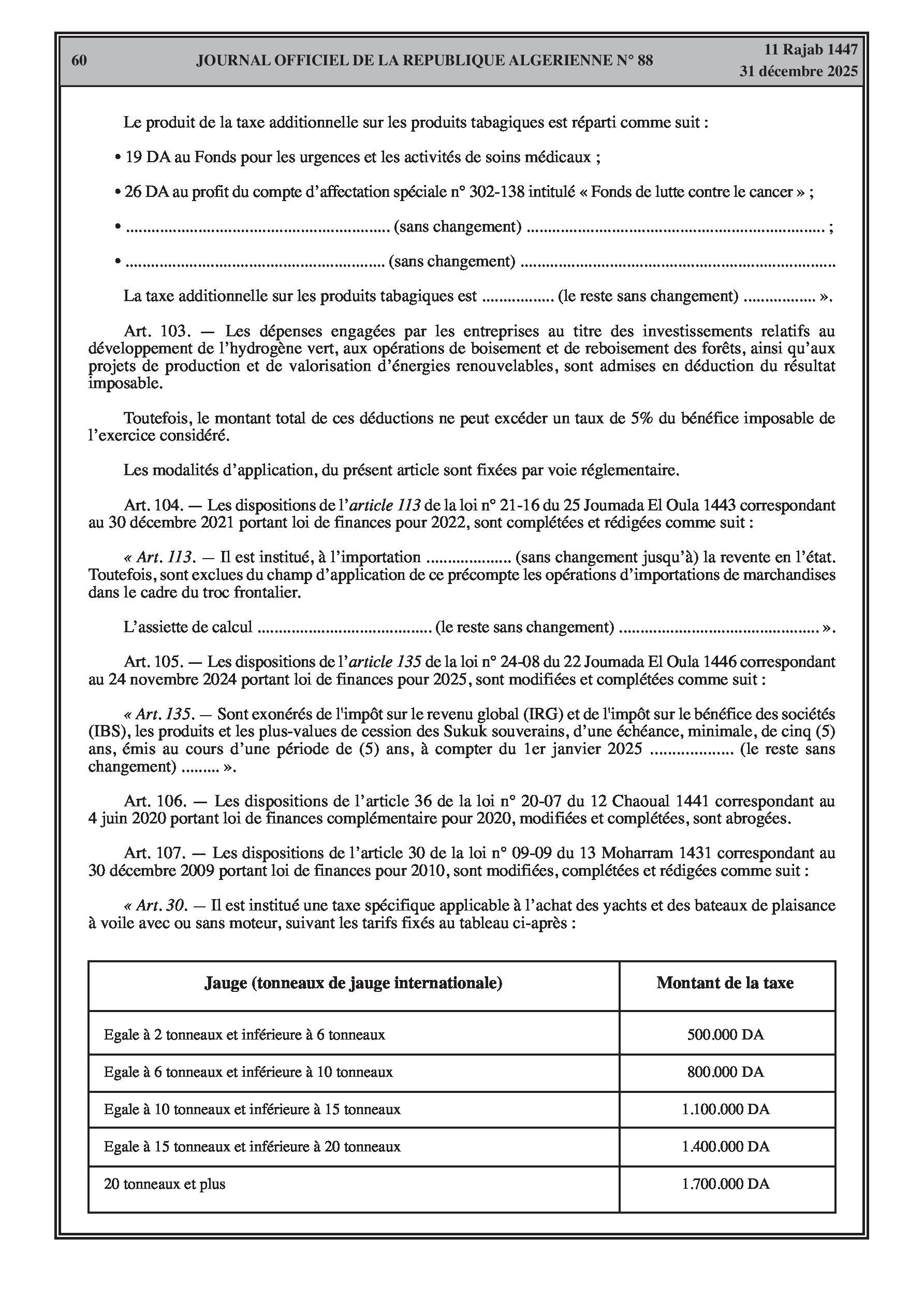 Institution d'une taxe sur le carburant à la sortie des frontières terrestres (1000 à 25000 DA selon le type et la fréquence).