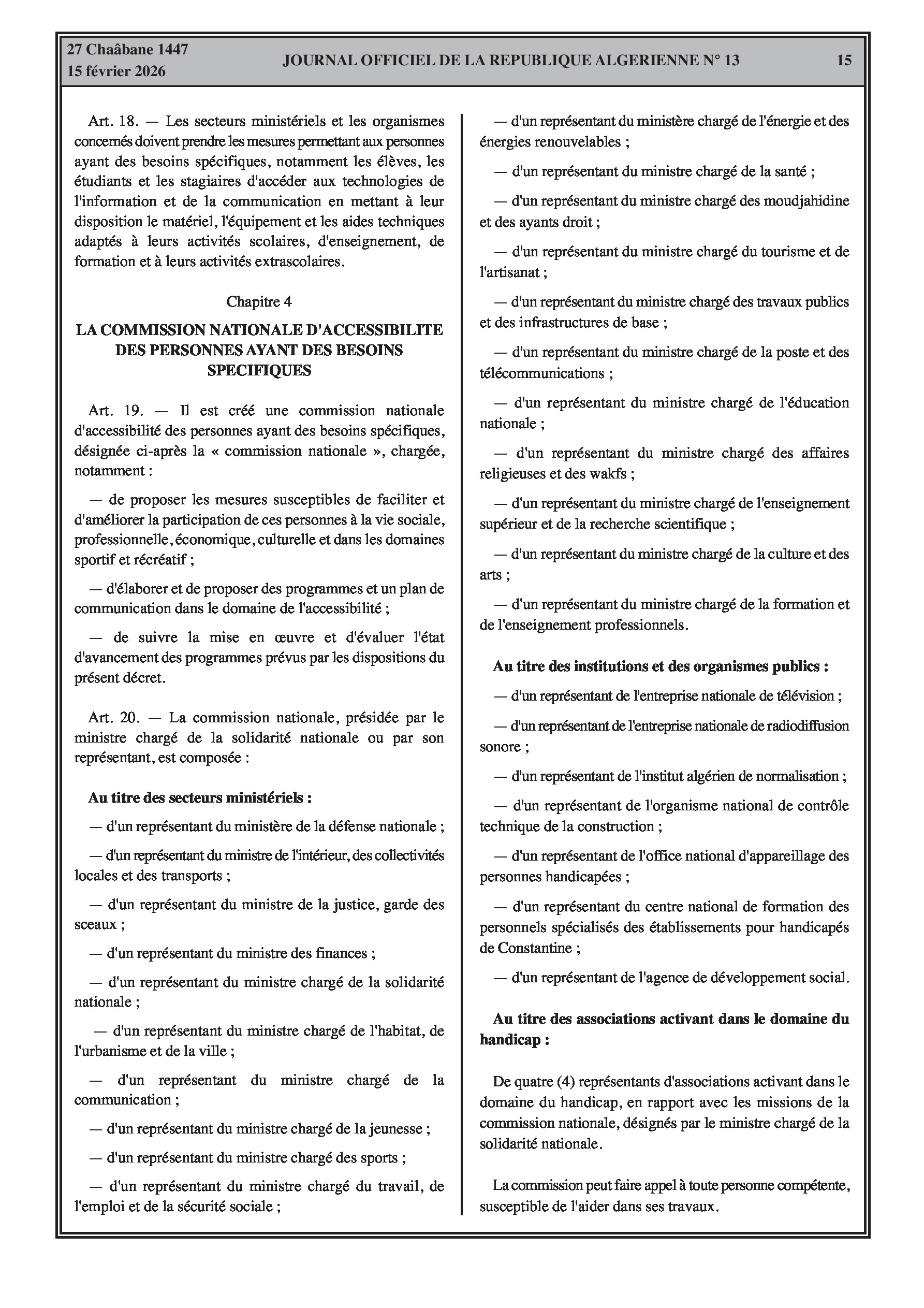 Obligation d'aménager le cadre bâti, les transports et les moyens de communication pour les rendre accessibles aux personnes handicapées.