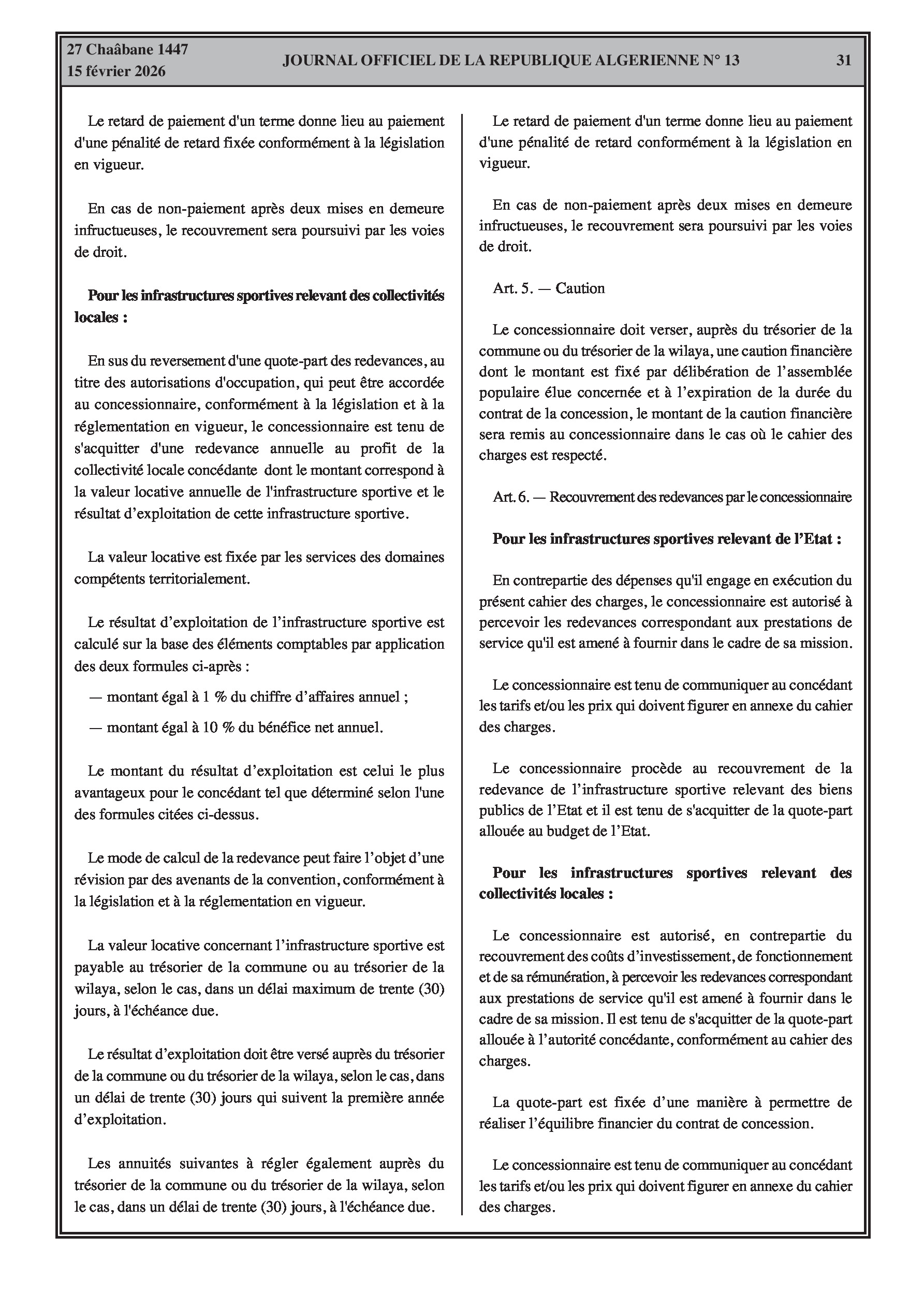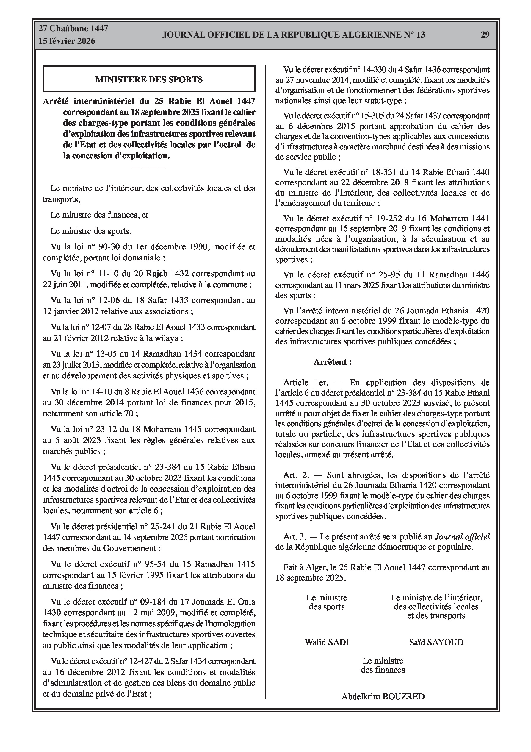Nouveau cahier des charges fixant les modalités de concession de la gestion des infrastructures sportives publiques au privé ou associations.