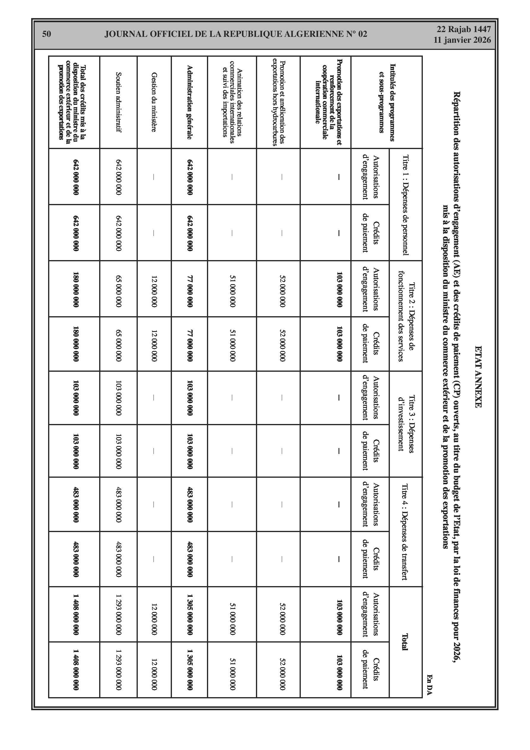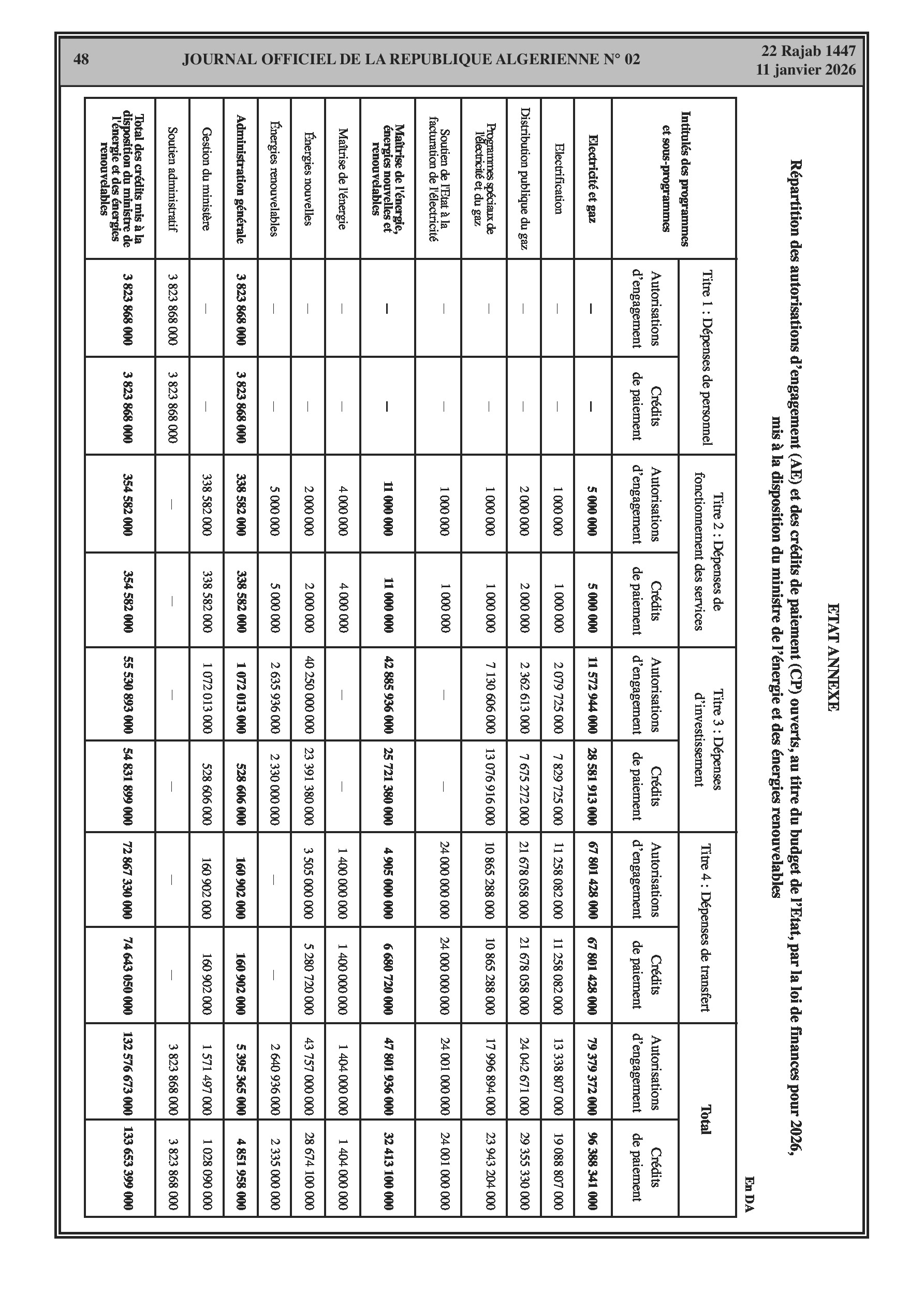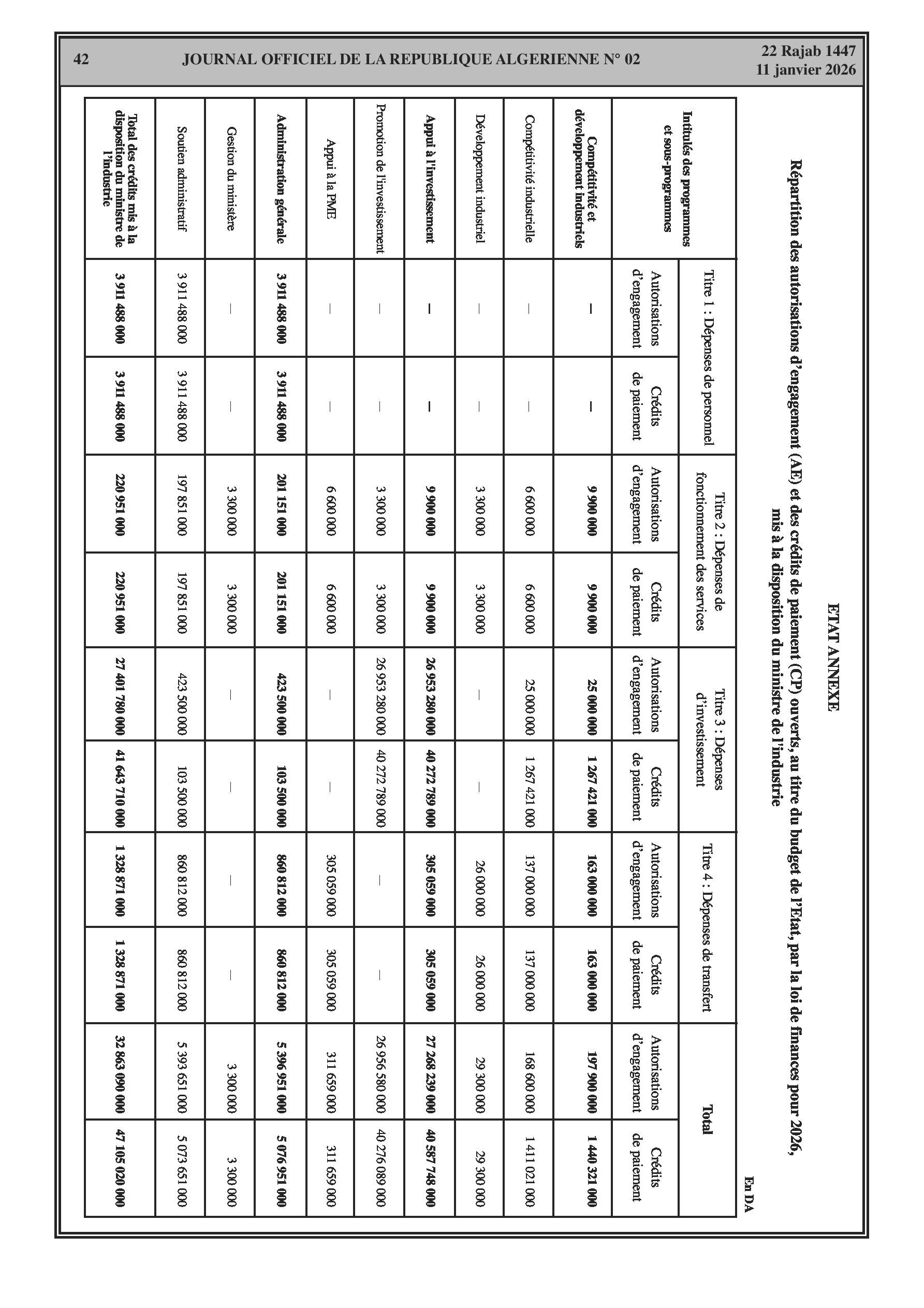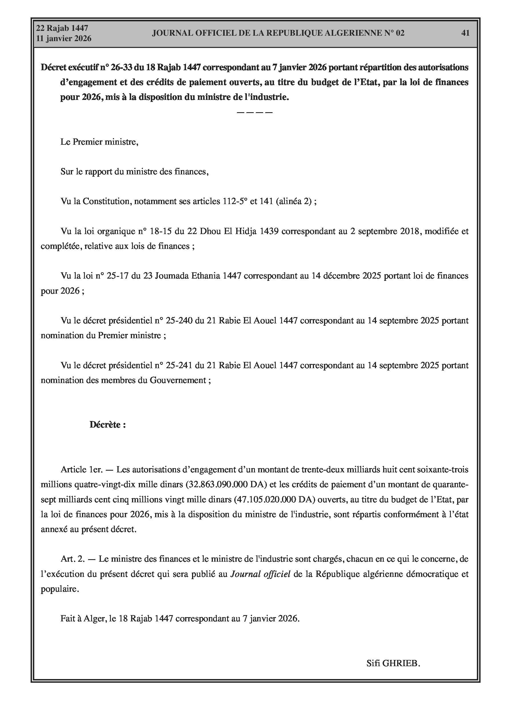 Budgets alloués aux Moudjahidine, à l'Industrie, l'Agriculture, l'Énergie et au Commerce.