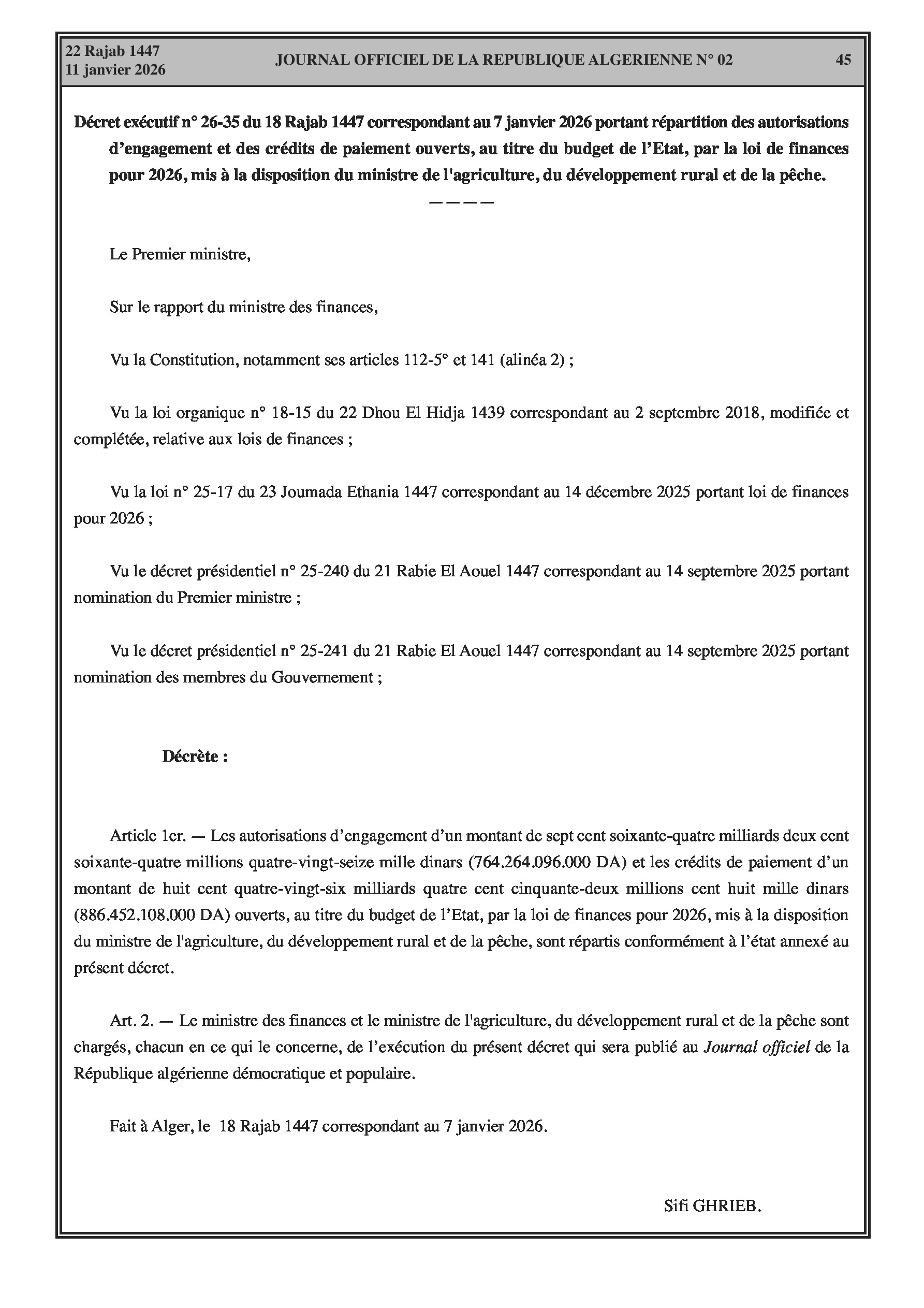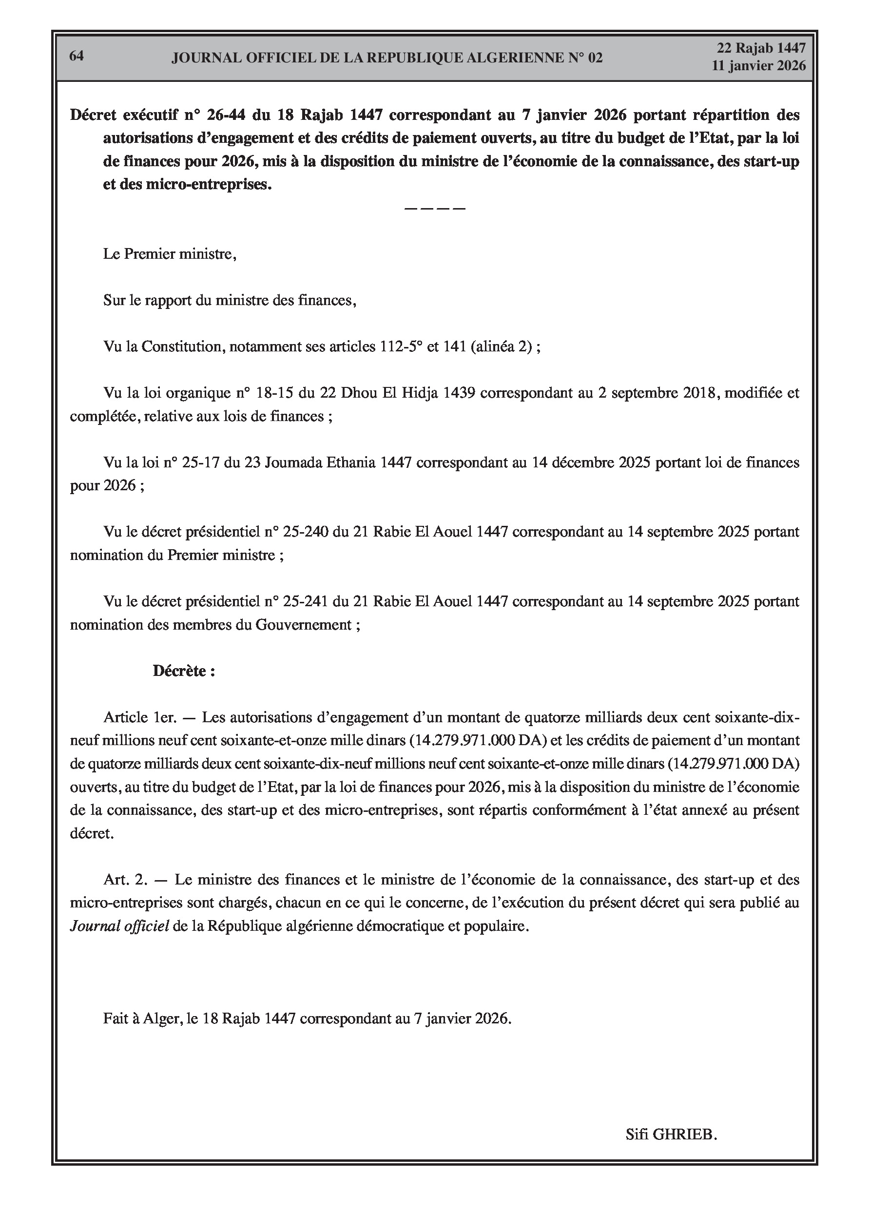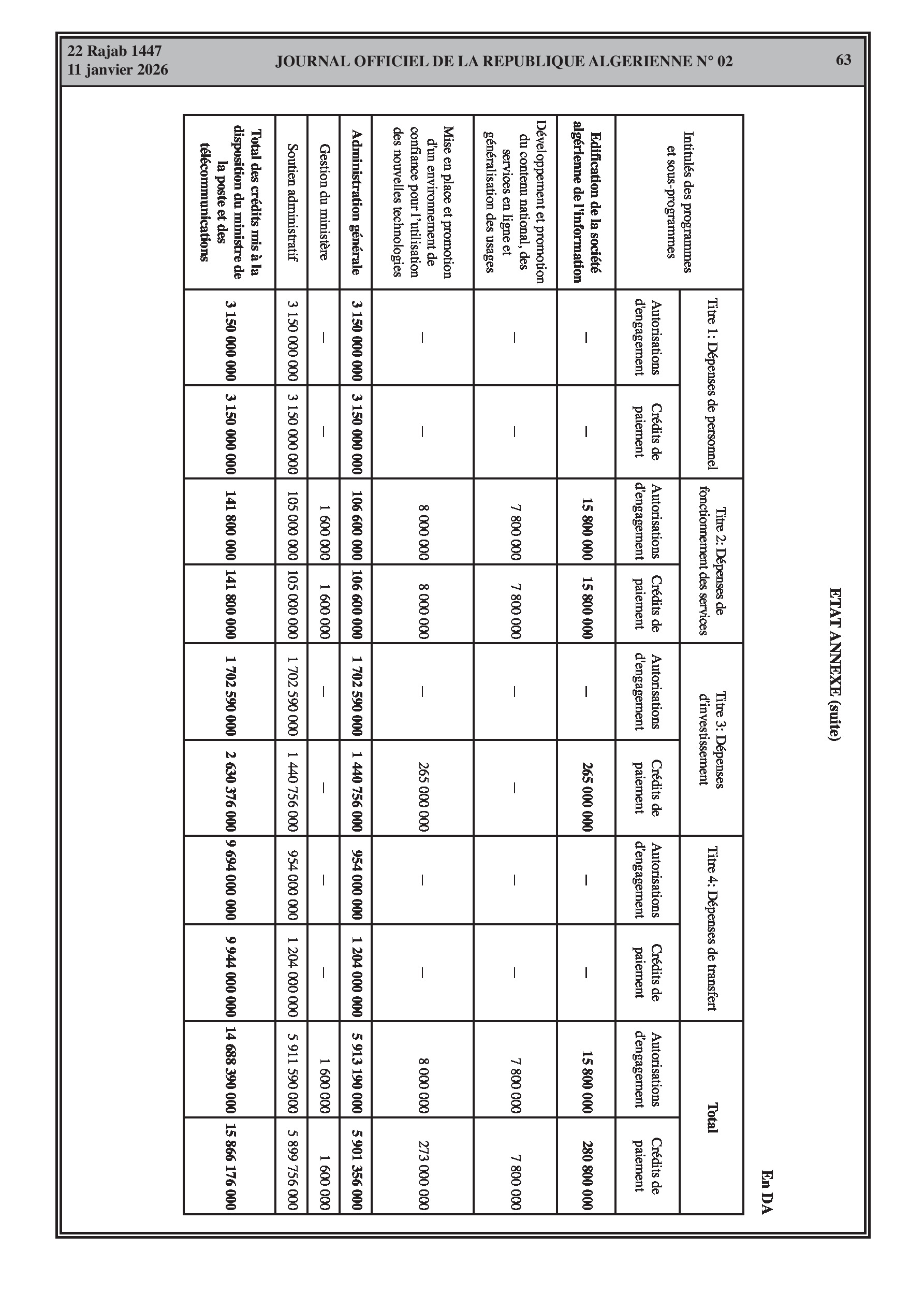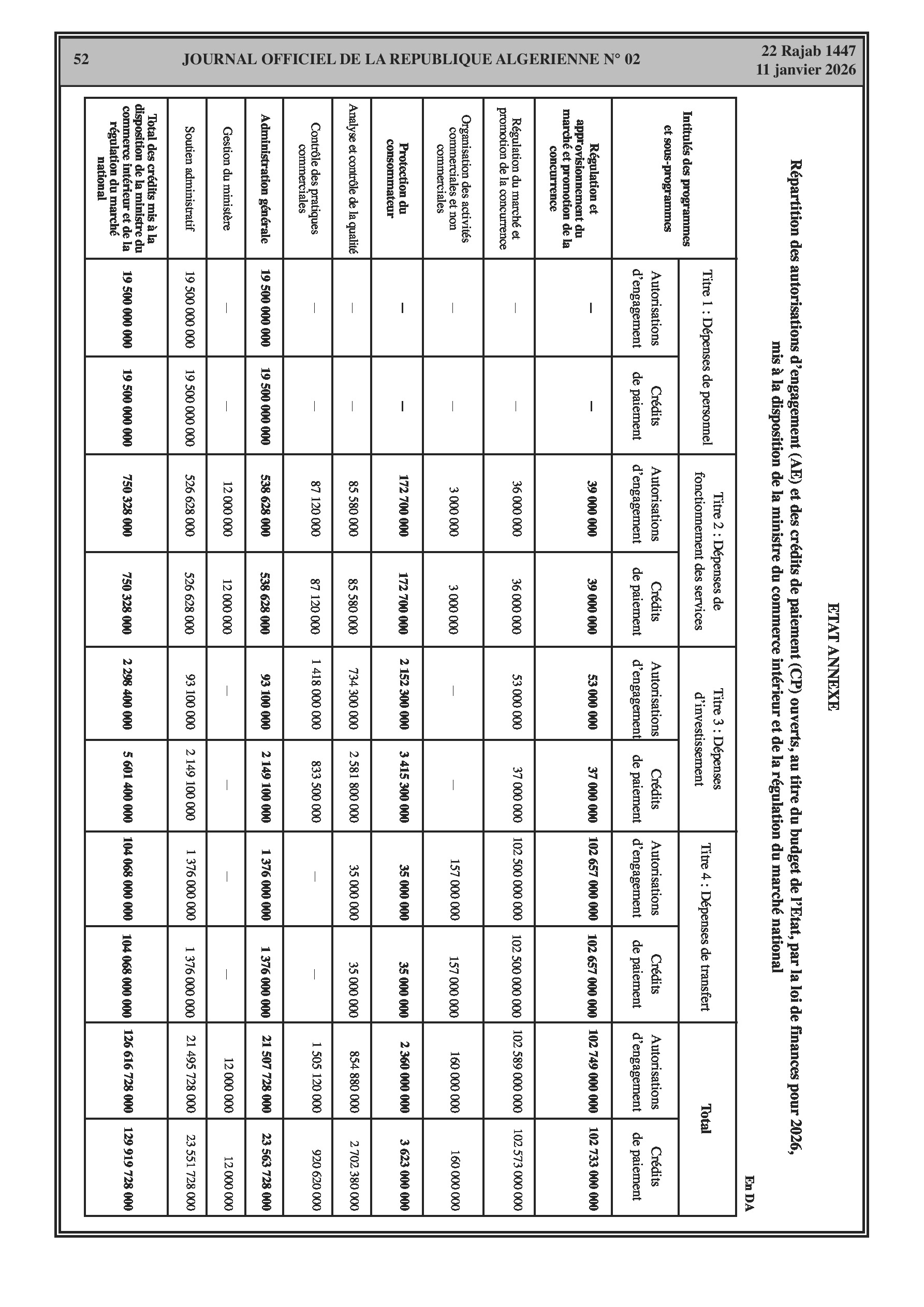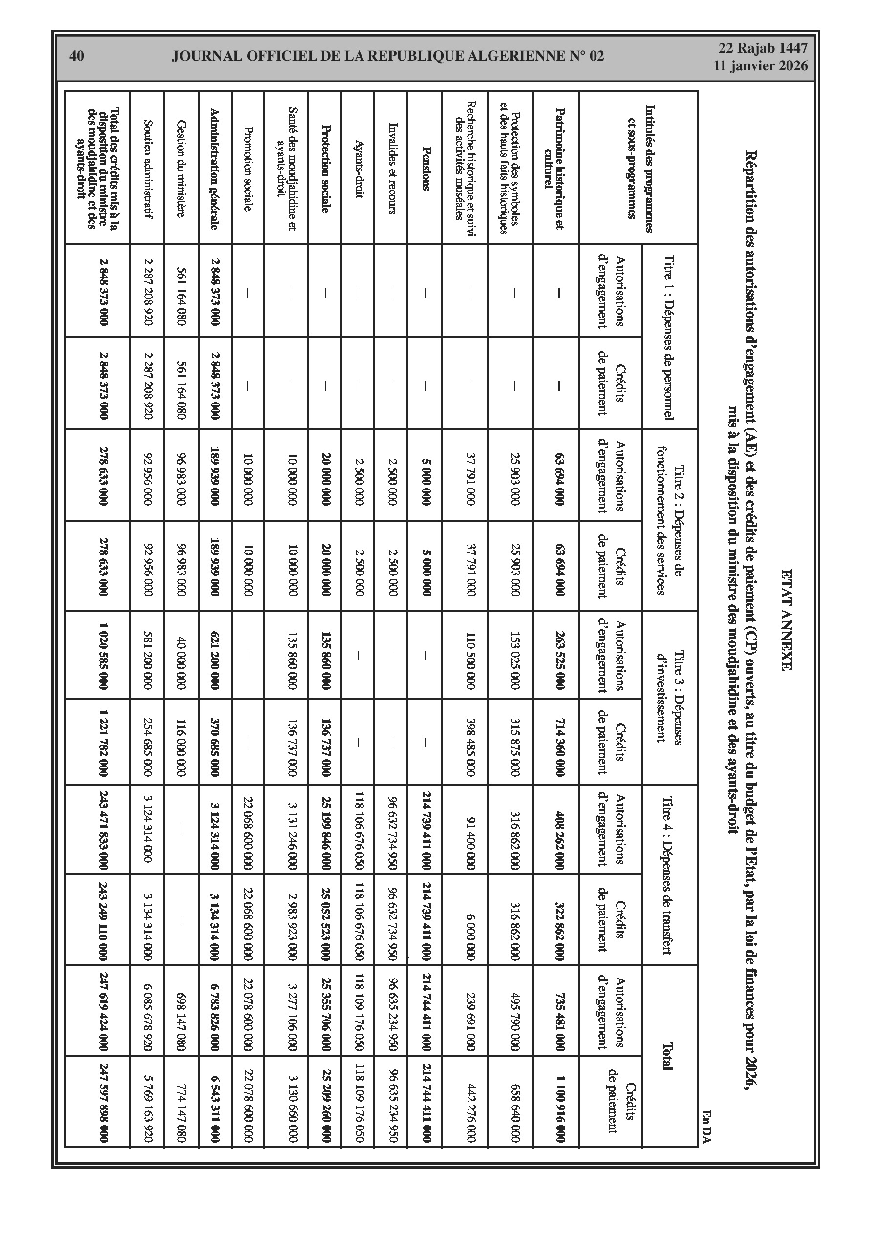 Budgets alloués aux Moudjahidine, à l'Industrie, l'Agriculture, l'Énergie et au Commerce.